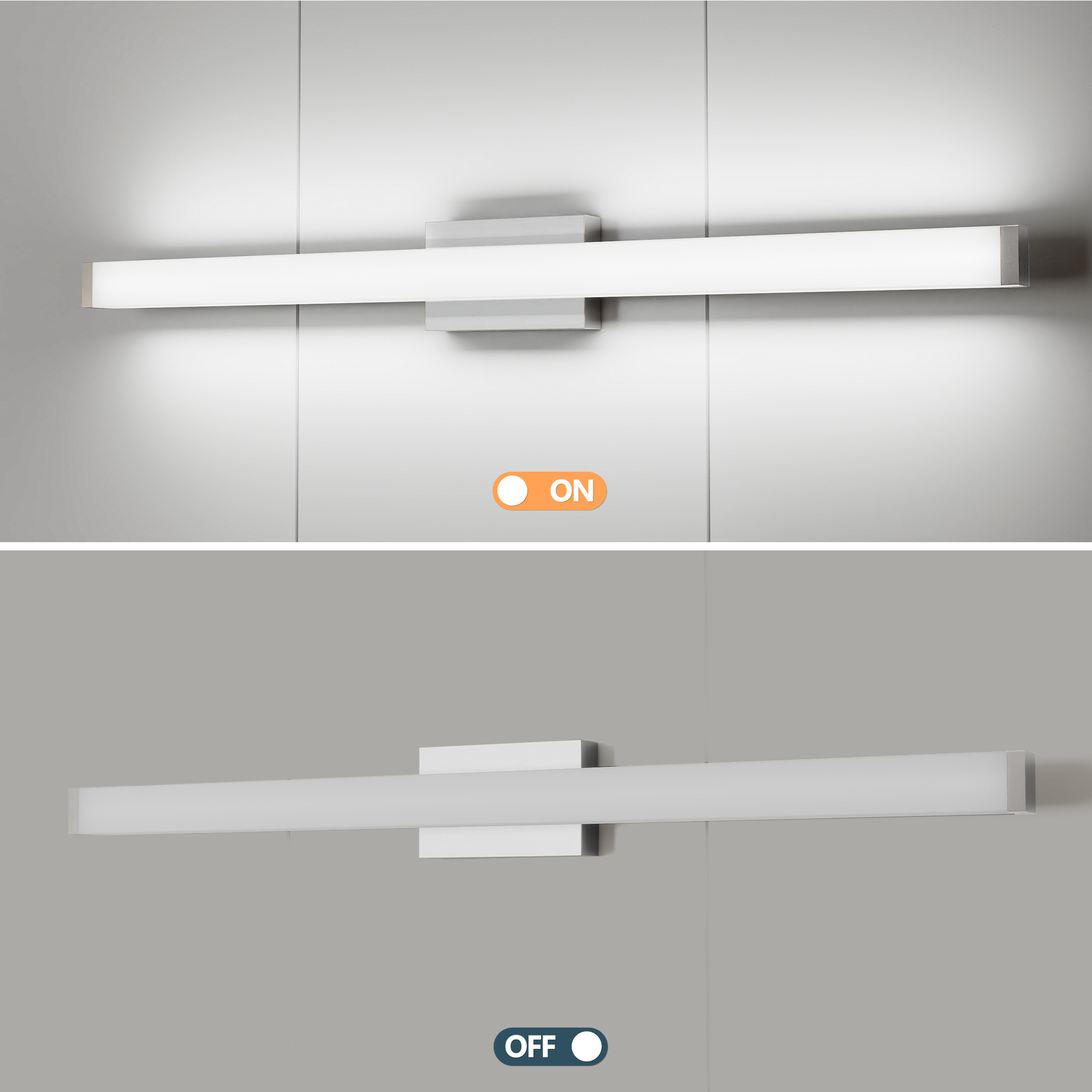 Bathroom Vanity Light Brushed Nickel Square LED 41 inch 24W 6000K Cool White Light Wall Bar Lighting Fixtures Over Mirror (Brushed Nickel, 41in)