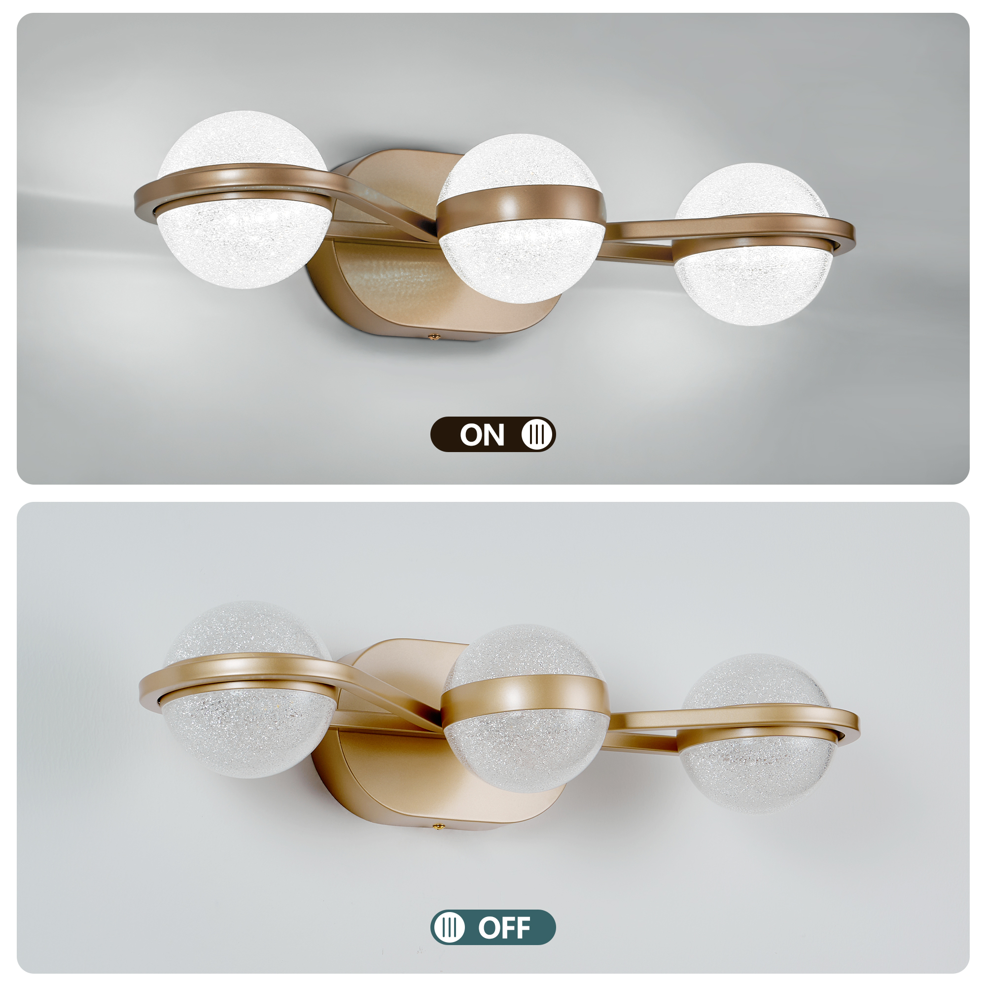 Bathroom Vanity Light, LED 3 Bulb Crystal Sand Acrylic Shades, Wall Mounted Decorative Lighting Fixture, Suitable for Bathroom Vanity Mirror (Champagne Gold)