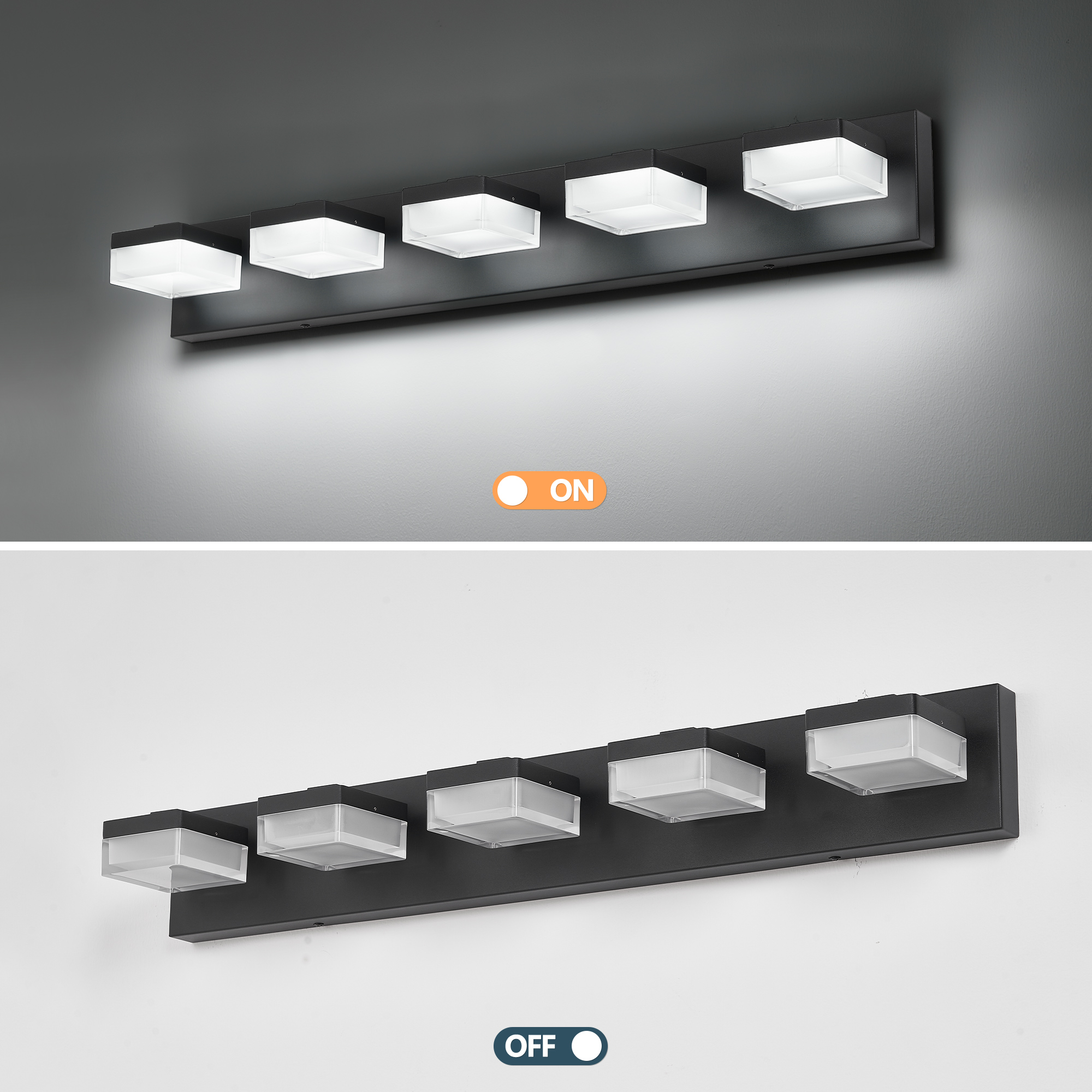 NEOSGO Bathroom Vanity Lights Over Mirror for Mirror Led Light Fixture 5 Lights Modern Black Vanity Light is designed to improve daily bathroom routines with a clearer mirror area and more useful lighting around the vanity space. The product presentation suggests a modern wall-mounted mirror intended for grooming, makeup, skincare, shaving, and other tasks that benefit from more even front-facing light. It works especially well in bathrooms, powder rooms, and remodeled vanity areas where customers want the mirror to provide both practical function and a cleaner visual upgrade. This type of mirror is a strong fit for shoppers looking to make the room feel brighter, more modern, and easier to use every day. Overall size is approximately 33.46 x 6.69 x 6.3 inches with a listed weight of 17.8. The current listing includes 8 product images, which help clarify the product shape, proportions, and visual placement in a real room setting.