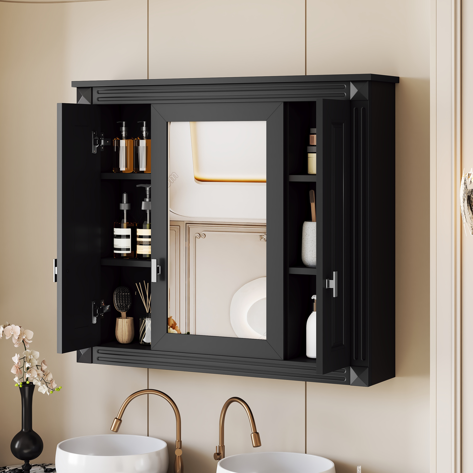 MRS Bathroom Wall Cabinet with Mirror, Wall Mounted Medicine Cabinet with 4 Shelves, Mirrored Door Over Toilet Storage Cabinet. Designed to provide practical task lighting around a vanity or bathroom mirror while supporting everyday grooming routines. Material: Solid Wood+MDF. Product dimensions and weight: length 38.5, width 19.5, height 8.2, weight 47.4.