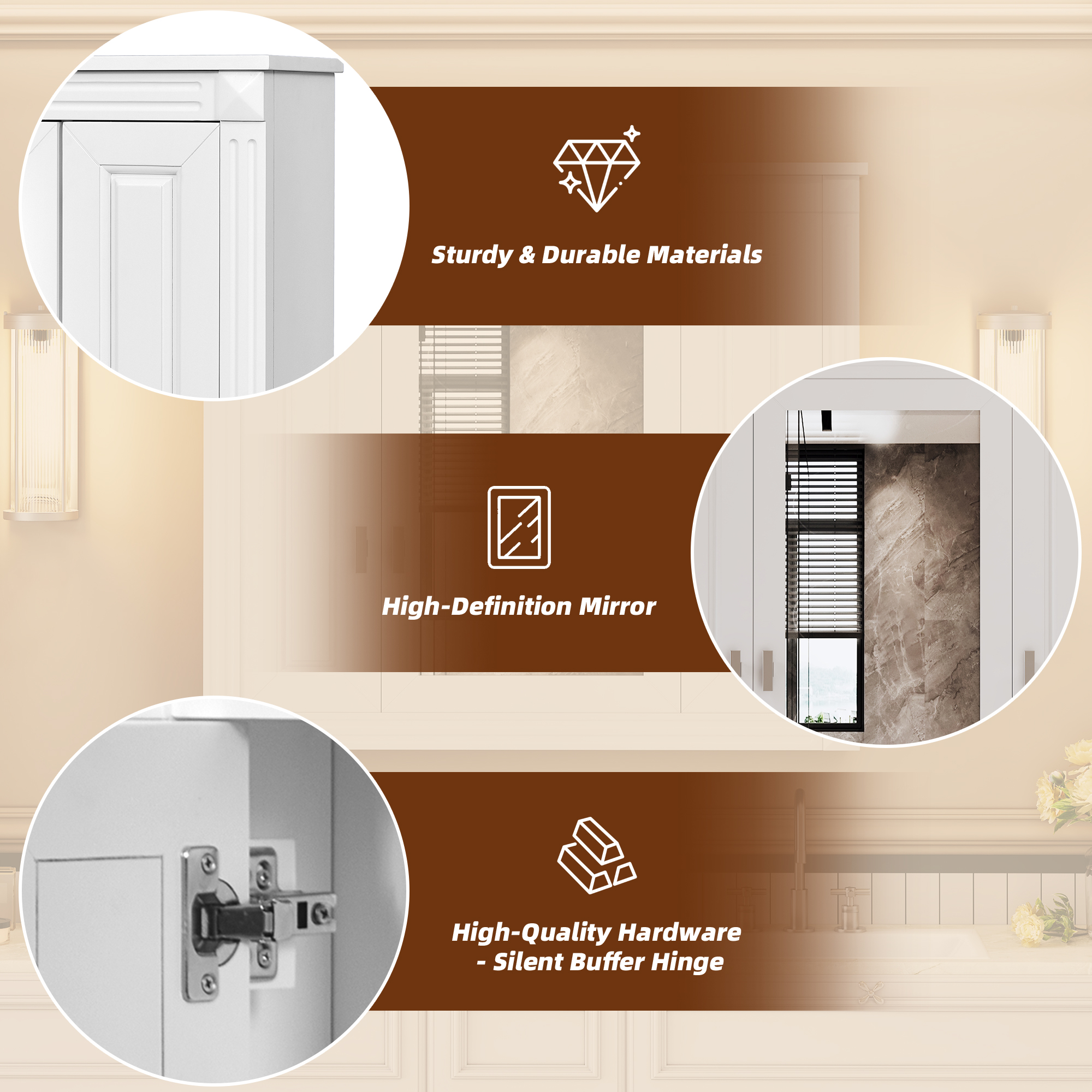 MRS Bathroom Wall Cabinet with Mirror, Wall Mounted Medicine Cabinet with 4 Shelves, Mirrored Door Over Toilet Storage Cabinet, White. Designed to provide practical task lighting around a vanity or bathroom mirror while supporting everyday grooming routines. Material: Solid Wood+MDF. Product dimensions and weight: length 38.5, width 19.5, height 8.2, weight 47.4.