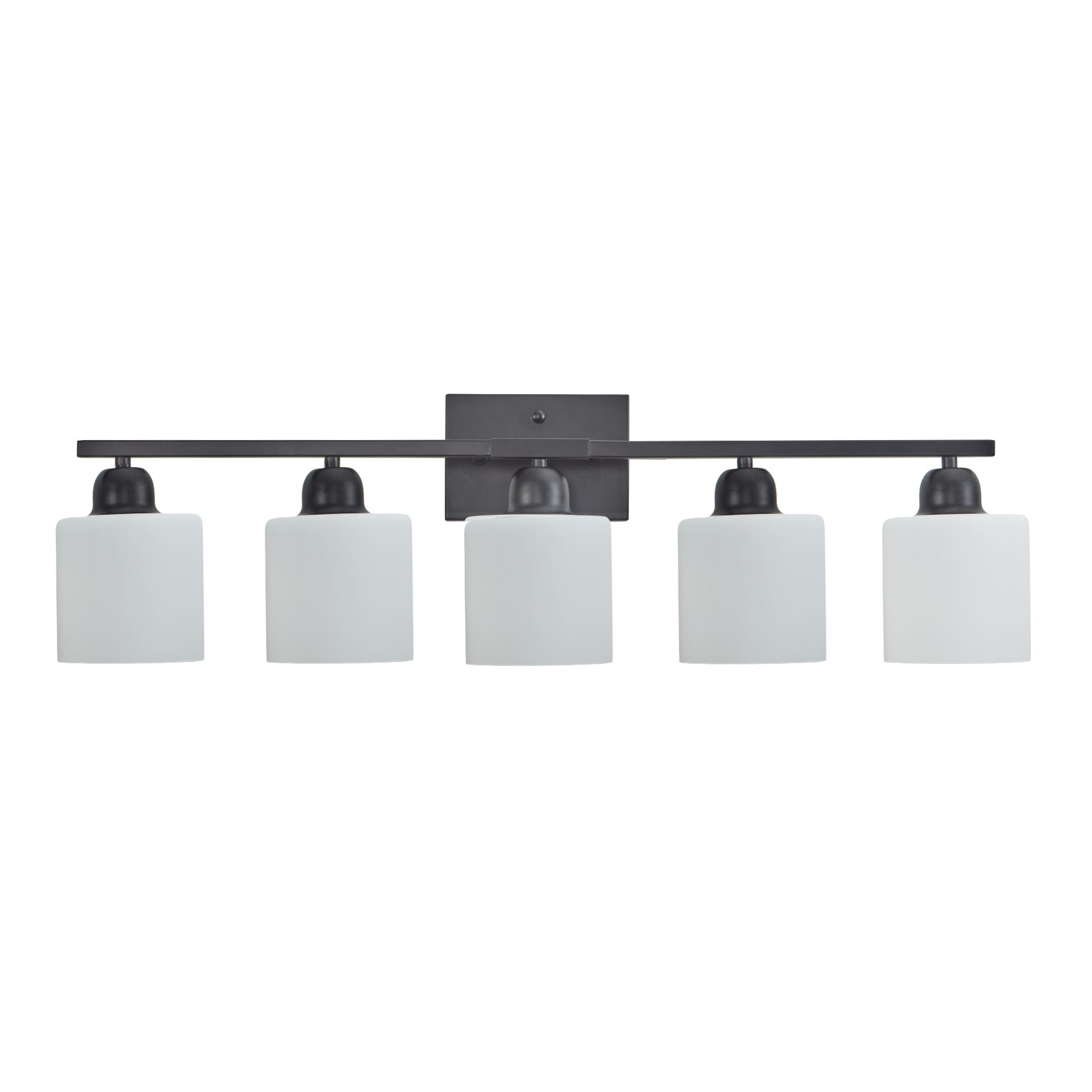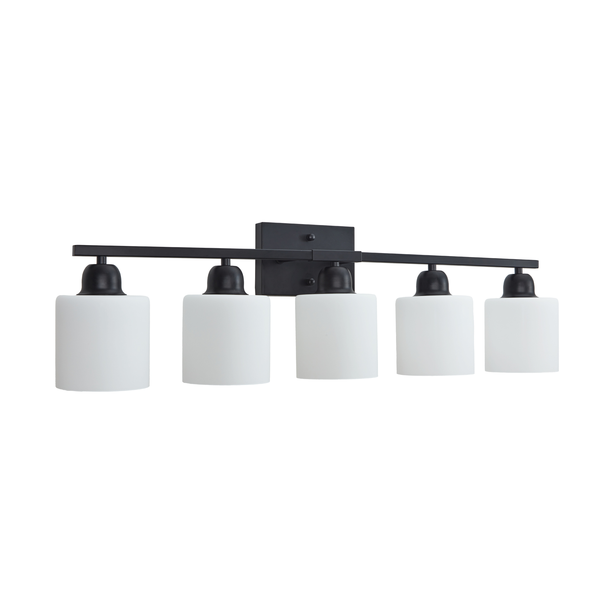 Black Bathroom Light Fixtures, 5-Light Modern Vanity Light Over Mirror, Wall Sconces with Milky White Frosted Glass Shades, E26 Socket (Bulbs Not Included)