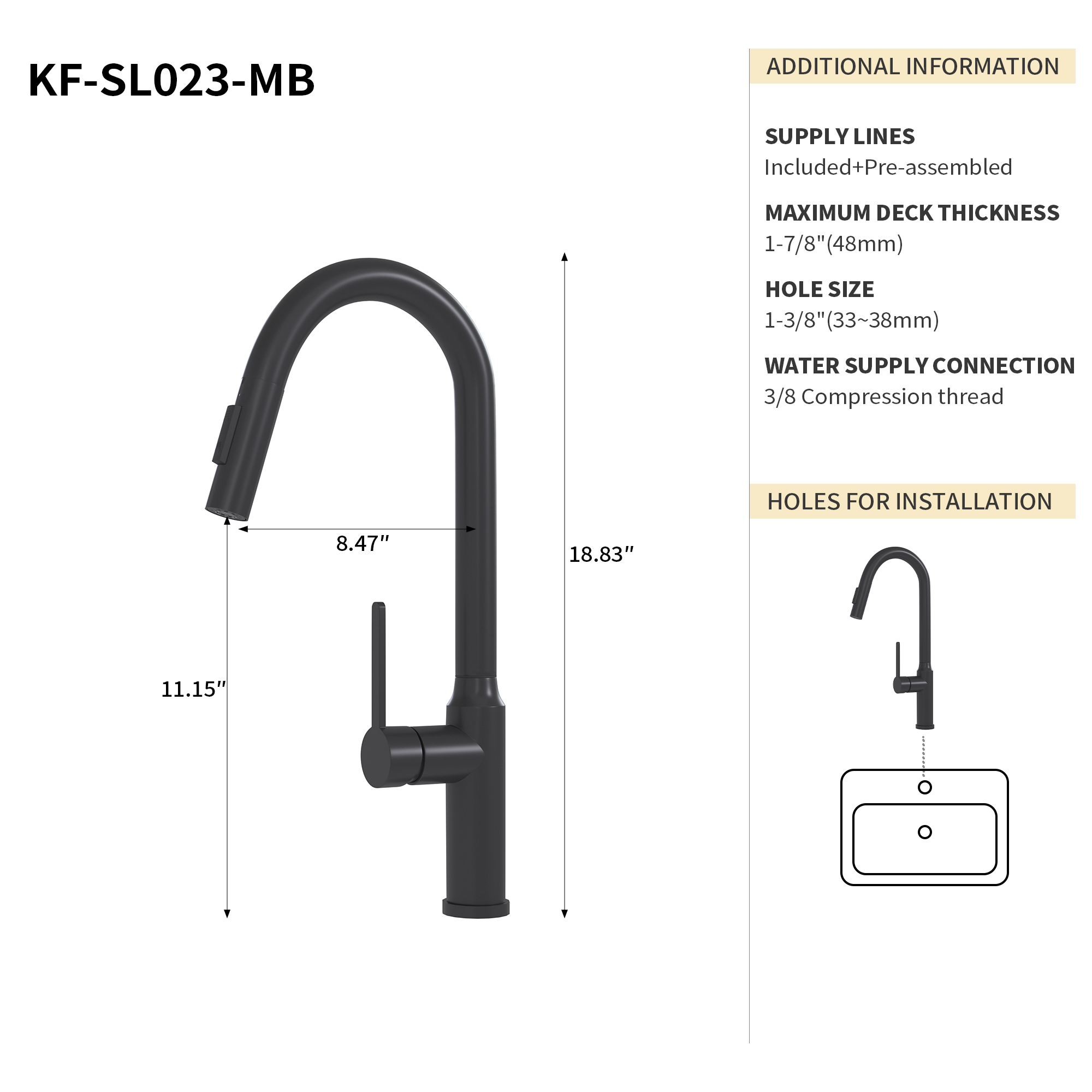 Bothwa Home 18.83" CUPC Certified Pull-down Kitchen Faucet (Matt Black Finish)