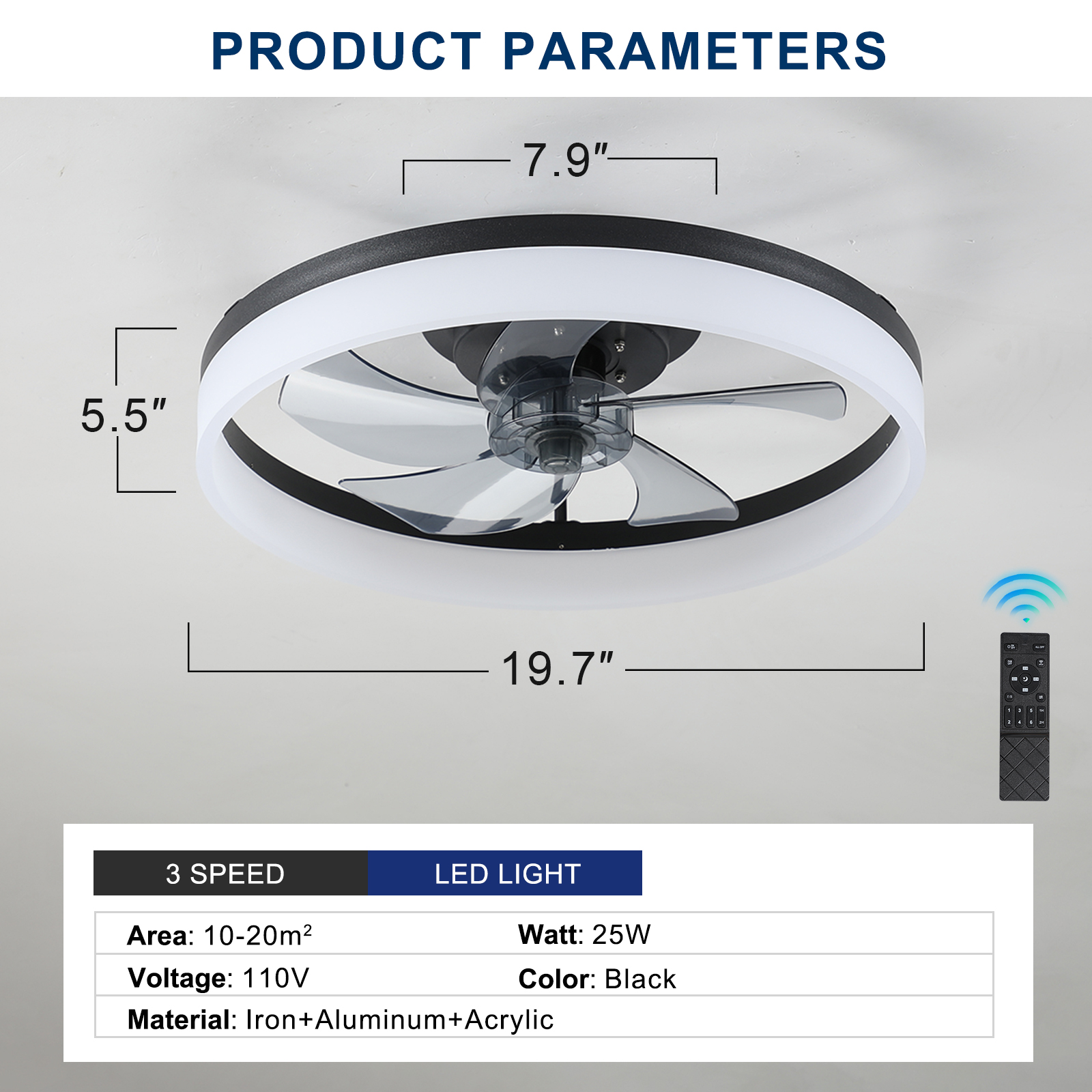 NEOSGO Ceiling Fan with Lights Dimmable LED combines ceiling lighting and airflow in one fixture, making it useful for rooms that need everyday comfort as well as a more finished overhead look. The caged or close-to-ceiling style shown in the product presentation helps it work well in spaces where customers want decorative character without the visual bulk of a larger hanging fixture. It is well suited for kitchens, dining rooms, bedrooms, living areas, and similar spaces where air movement, ambient light, and a coordinated design all matter. This is a practical choice for customers who want to save ceiling space while improving comfort and keeping the room visually polished. Overall size is approximately 20.9 x 20.9 x 6.9 inches with a listed weight of 8.1. The current listing includes 10 product images, which help clarify the product shape, proportions, and visual placement in a real room setting.
