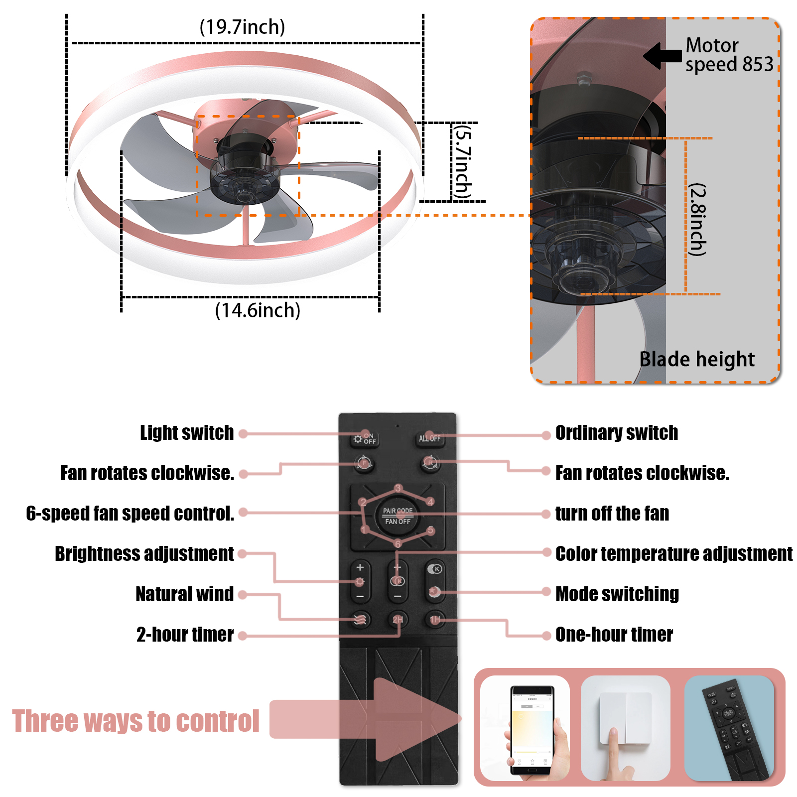 NEOSGO Ceiling Fans with Lights Dimmable LED Embedded installation of thin modern ceiling fans(Pink) combines ceiling lighting and airflow in one fixture, making it useful for rooms that need everyday comfort as well as a more finished overhead look. The caged or close-to-ceiling style shown in the product presentation helps it work well in spaces where customers want decorative character without the visual bulk of a larger hanging fixture. It is well suited for kitchens, dining rooms, bedrooms, living areas, and similar spaces where air movement, ambient light, and a coordinated design all matter. This is a practical choice for customers who want to save ceiling space while improving comfort and keeping the room visually polished. Overall size is approximately 20.9 x 20.9 x 6.9 inches with a listed weight of 7.4. The current listing includes 9 product images, which help clarify the product shape, proportions, and visual placement in a real room setting.