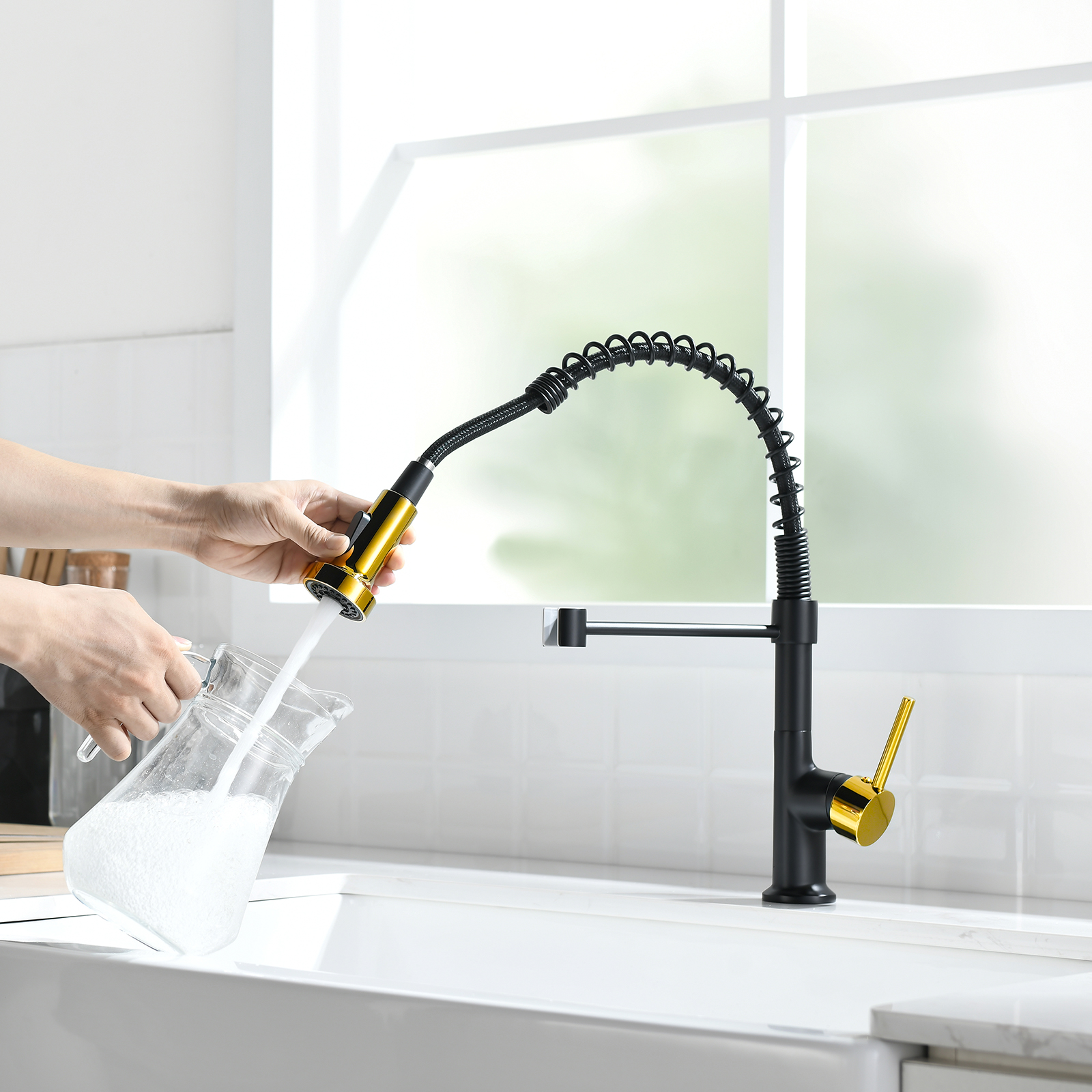 Kitchen Faucets Single Handle Pull Down Sprayer Spring Kitchen Sink Faucet