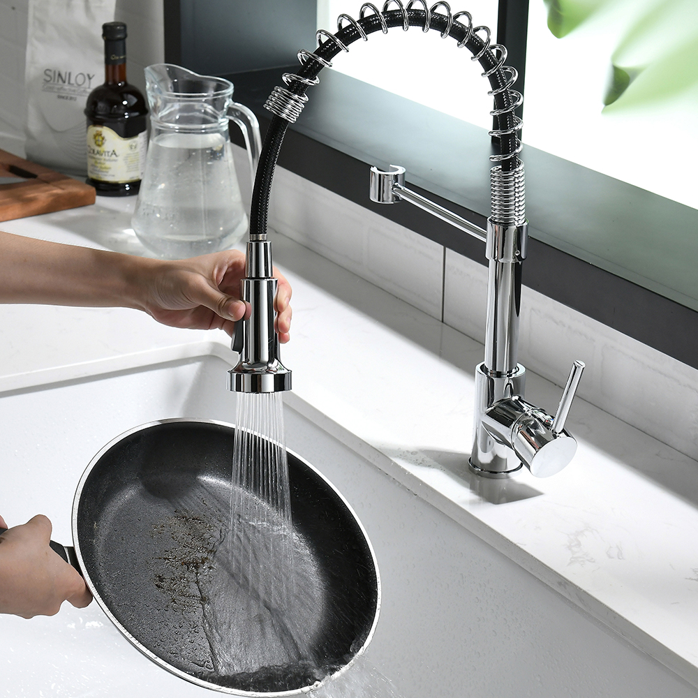 Kitchen Faucets Single Handle Pull Down Sprayer Spring Kitchen Sink Faucet