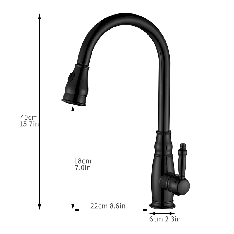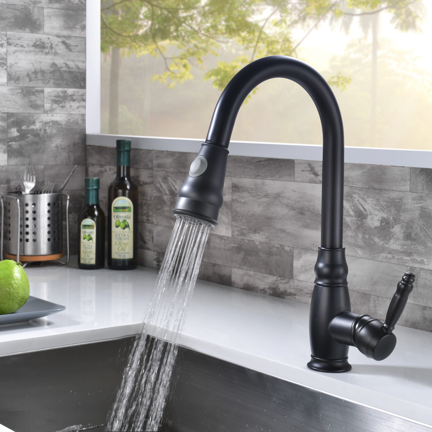 FLG Commercial Black Kitchen Faucet with Pull out Sprayer, Single Handle Single Lever Kitchen Sink Faucet. Designed as a practical decorative lighting piece that supports everyday use while helping complete the look of the space. Material: brass. Product dimensions and weight: length 22, width 10, height 3, weight 11.