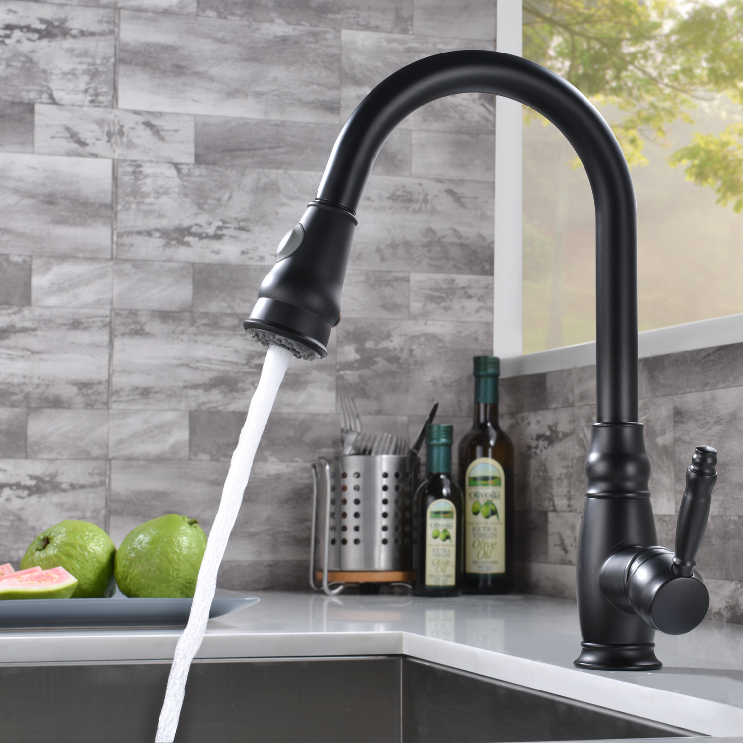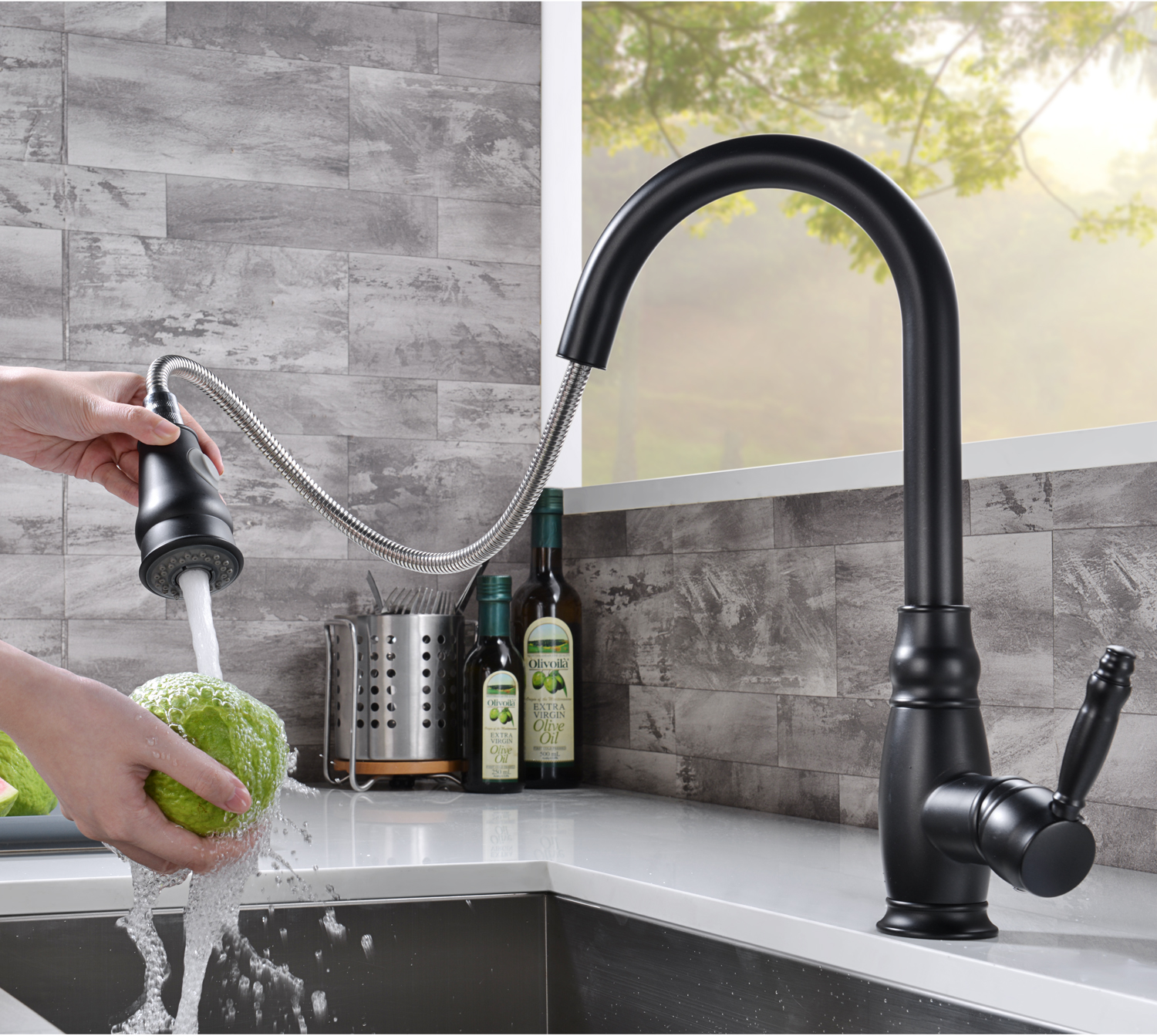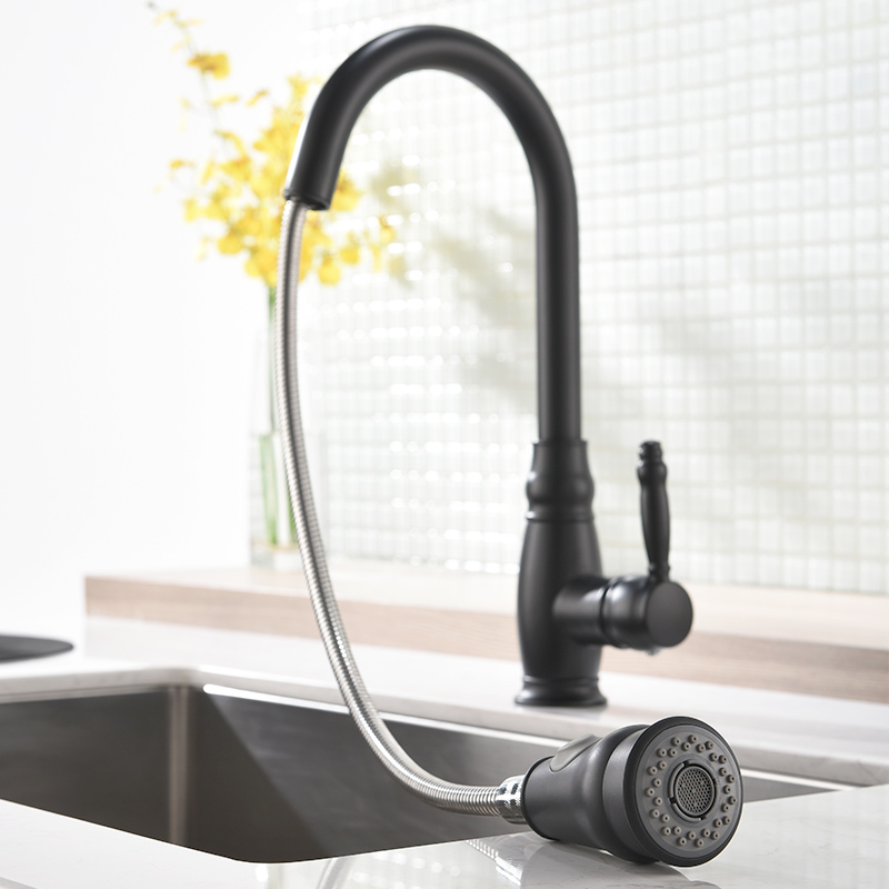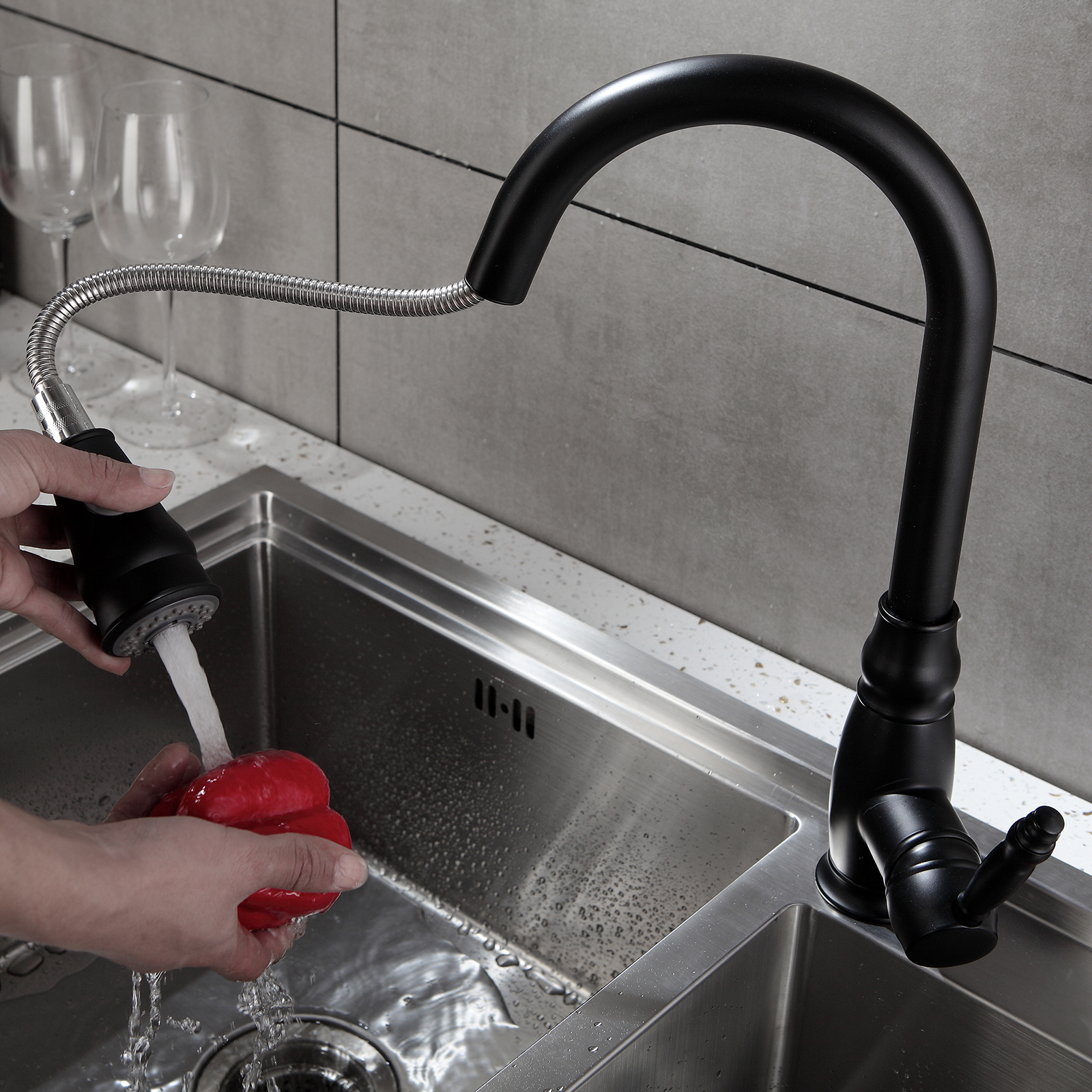Commercial Black Kitchen Faucet with Pull out Sprayer, Single Handle Single Lever Kitchen Sink Faucet
