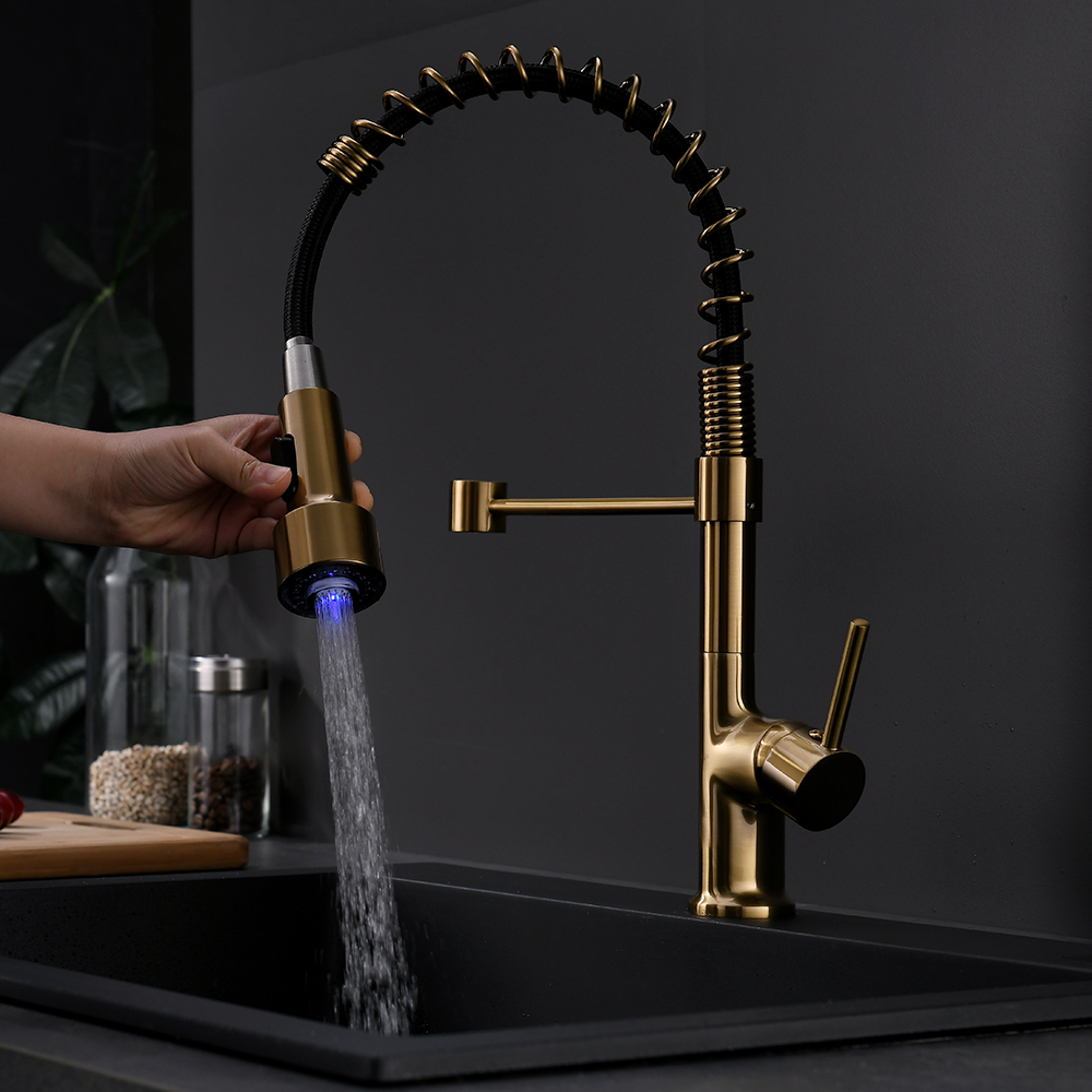 Commercial LED Kitchen Faucet with Pull Down Sprayer, Single Handle Single Lever Kitchen Sink Faucet