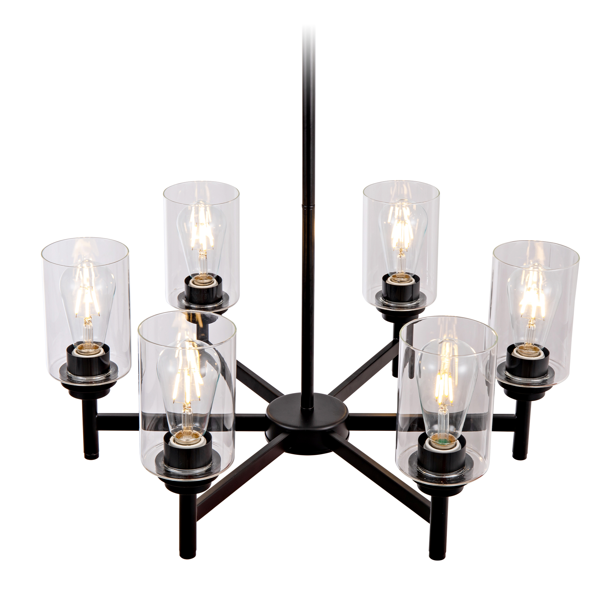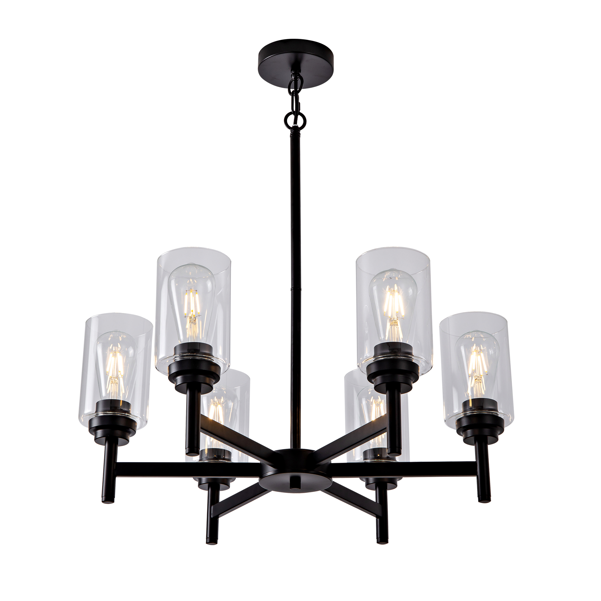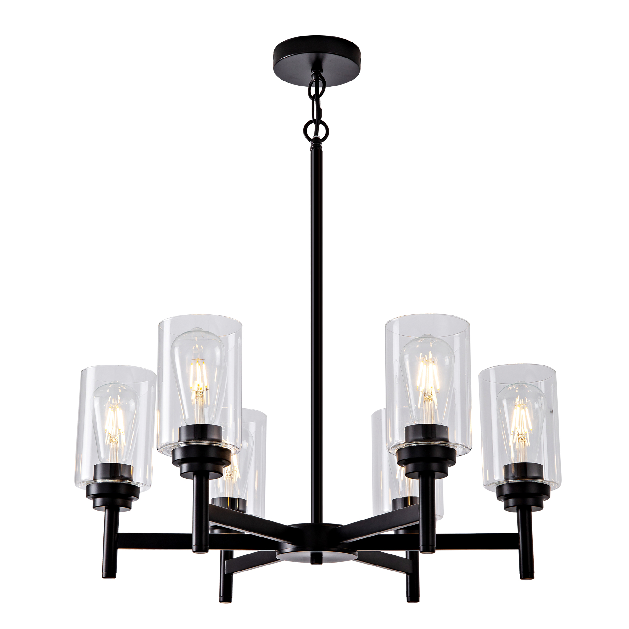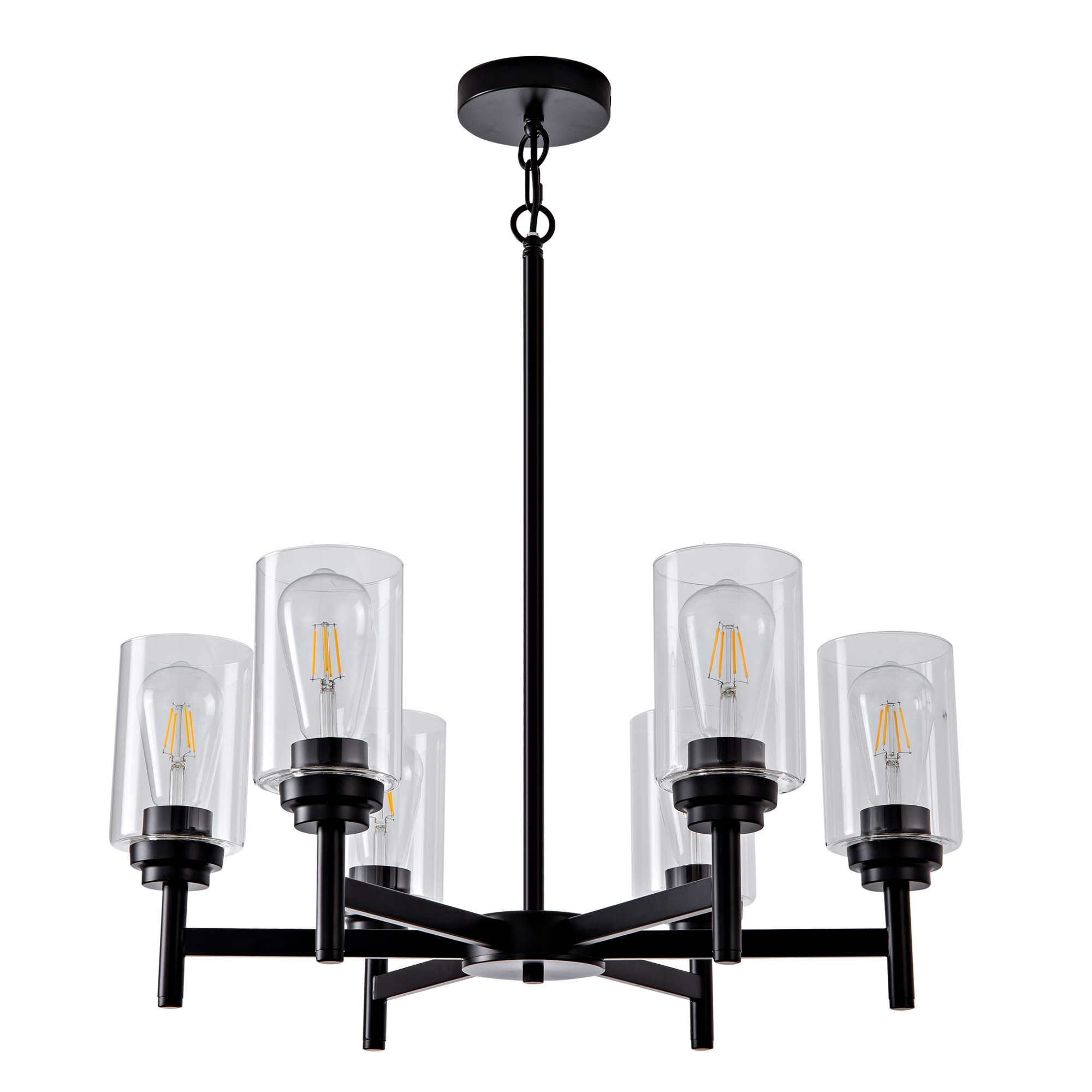 Farmhouse 6-Light Glass Chandelier, Modern Black Light Fixture for Kitchen Dining Room Over Table, Industrial Lighting for Living Room, Foyer, Entryway, E26 Bulb Base
