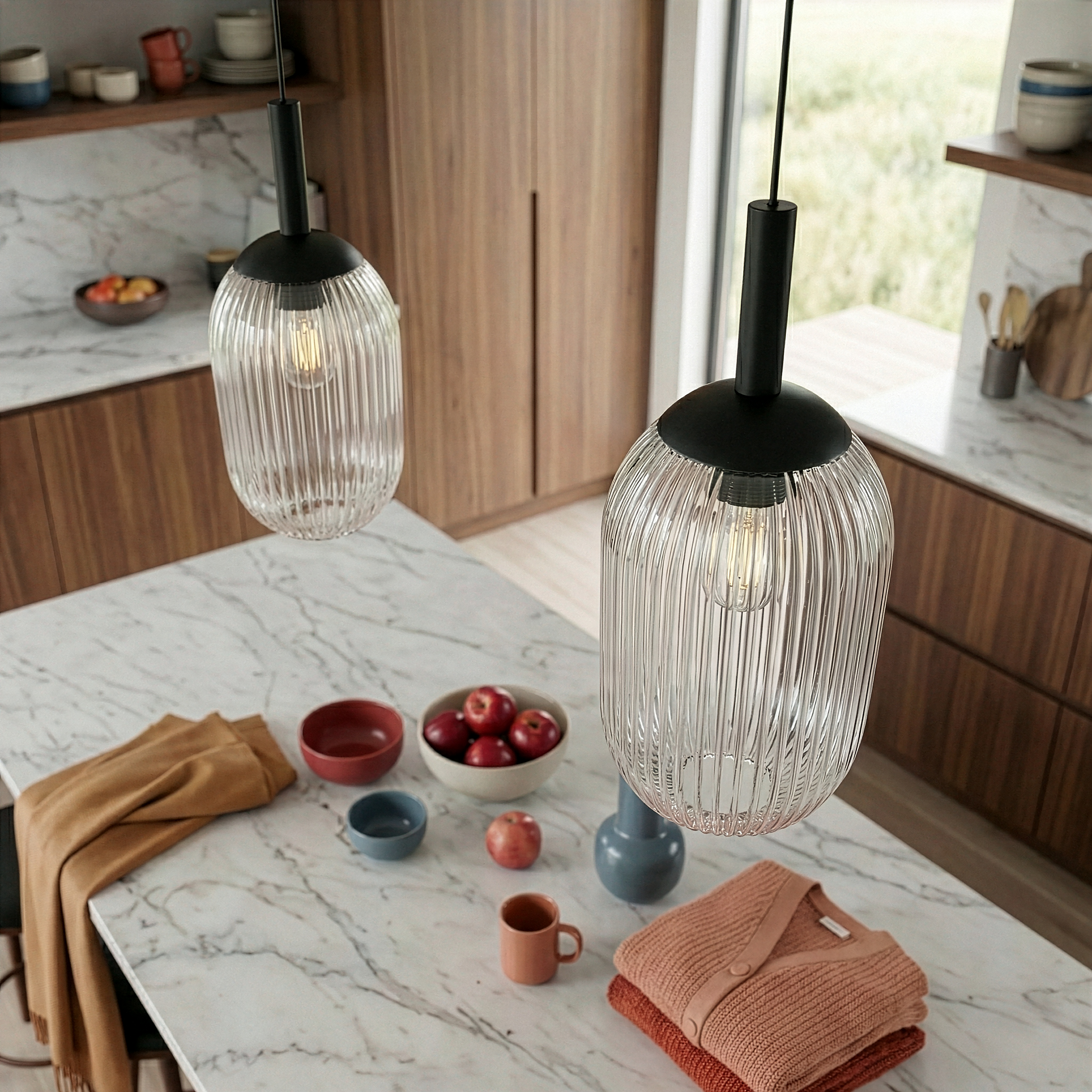 NEOSGO Giza Pendant Lamp - Black and Clear is intended to deliver focused overhead light while also strengthening the decorative identity of the space. Pendant-style fixtures are especially useful over kitchen islands, sinks, breakfast areas, counters, and compact dining spaces where customers want targeted light and a visible design element. Based on the product presentation, it suits interiors that need a more finished overhead feature without overwhelming the rest of the room. It is a good option for shoppers who want everyday function together with a clean decorative upgrade. Overall size is approximately 8.3 x 8.3 x 18.3 inches with a listed weight of 3.3. The current listing includes 8 product images, which help clarify the product shape, proportions, and visual placement in a real room setting.