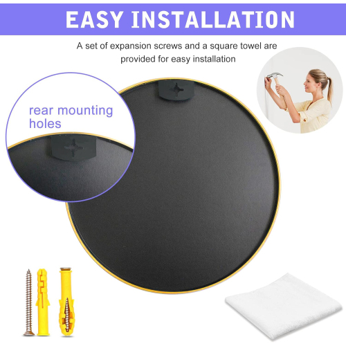 HUOVTR Gold 16 Inch Metal Round Bathroom Mirror. Designed to provide practical task lighting around a vanity or bathroom mirror while supporting everyday grooming routines. Material: Aluminium Alloy. Product dimensions and weight: length 19.3, width 20, height 3.54, weight 4.7.