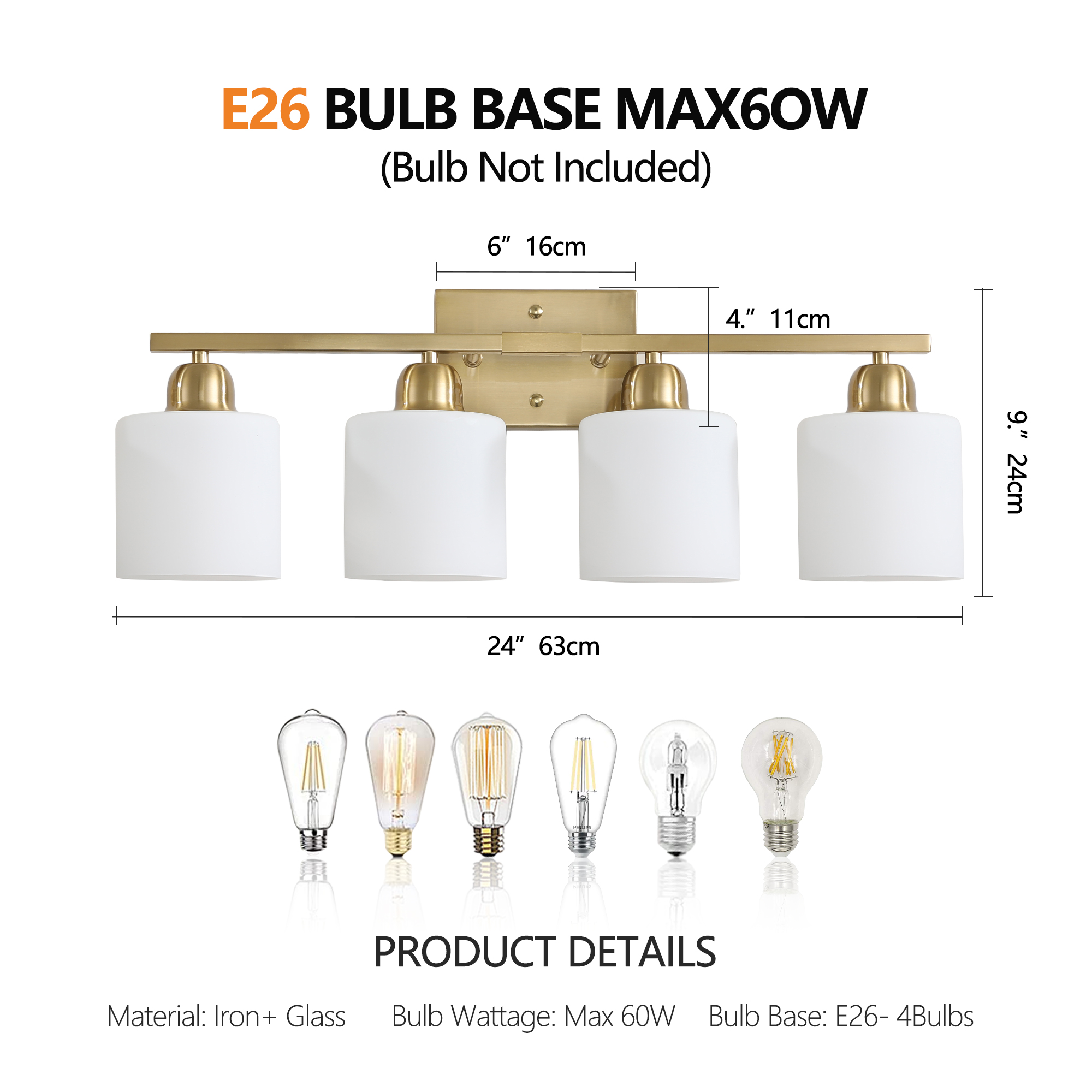 Gold Bathroom Light Fixtures, 4-Light Modern Vanity Light Over Mirror, Wall Sconces with Milky White Frosted Glass Shades, E26 Socket (Bulbs Not Included)