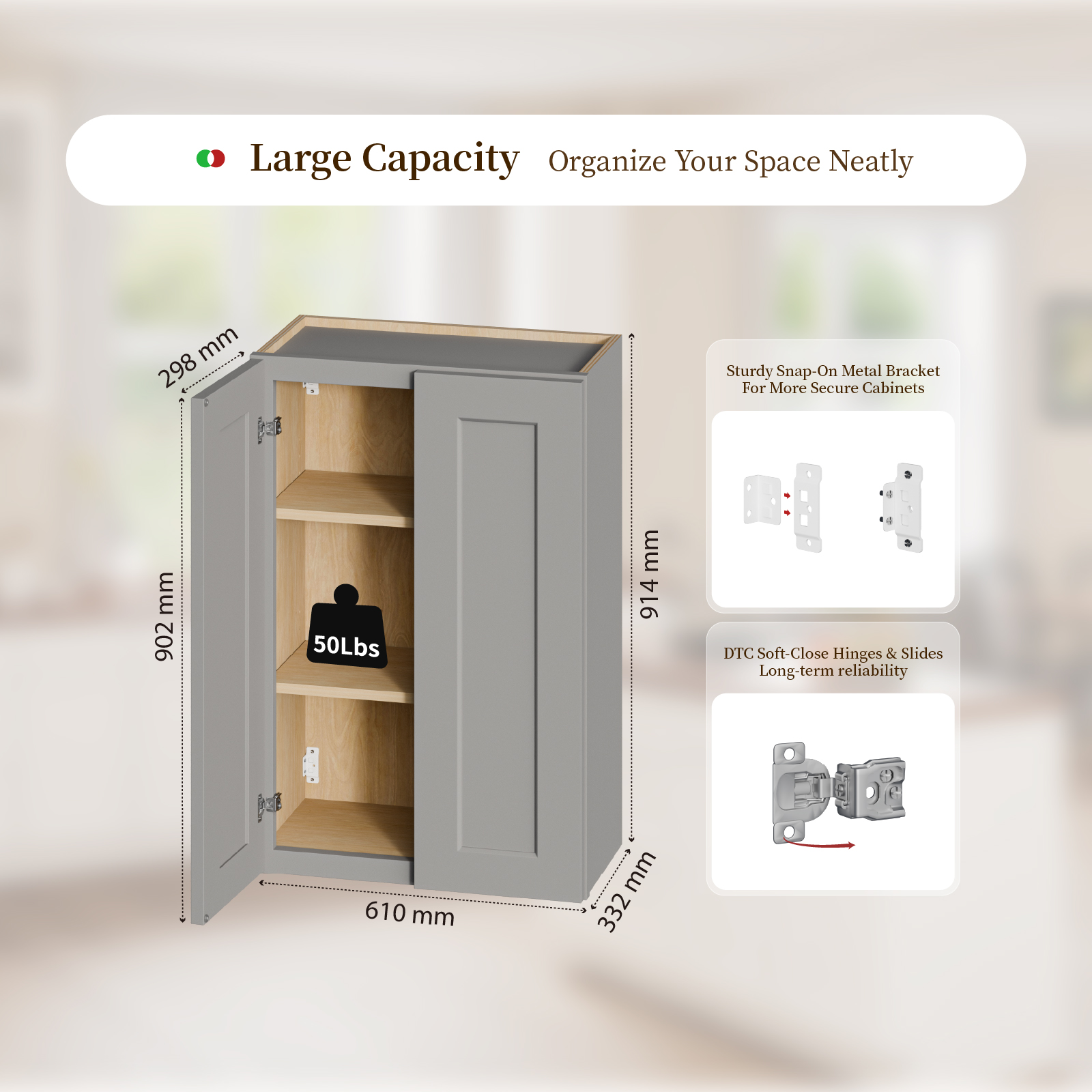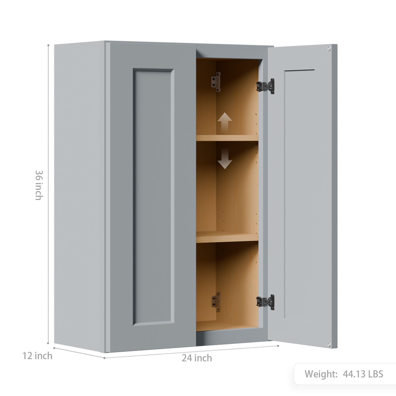 Shaker Made Gray Shaker Solid Wood Wall Cabinet with Soft-Close Doors, Adjustable Shelves - 24" Double Door Storage for Kitchen, Bathroom, Laundry, Garage (Easy Assembly, 24"W x 12"D x 36"H). Works well as accent or supplemental wall lighting for hallways, bedrooms, bathrooms, and other interior spaces. Material: Wood + Synthetic Wood. Product dimensions and weight: length 37.83, width 25.39, height 4.92, weight 44.13.