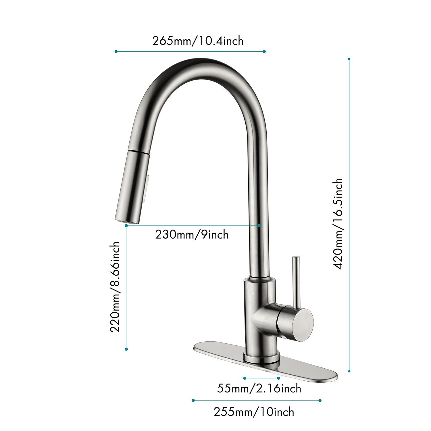 W2287 Kitchen Faucet with Pull Down Sprayer. Designed as a practical decorative lighting piece that supports everyday use while helping complete the look of the space. Material: Stainless Steel. Product dimensions and weight: length 25, width 10.5, height 2.6, weight 5.1.