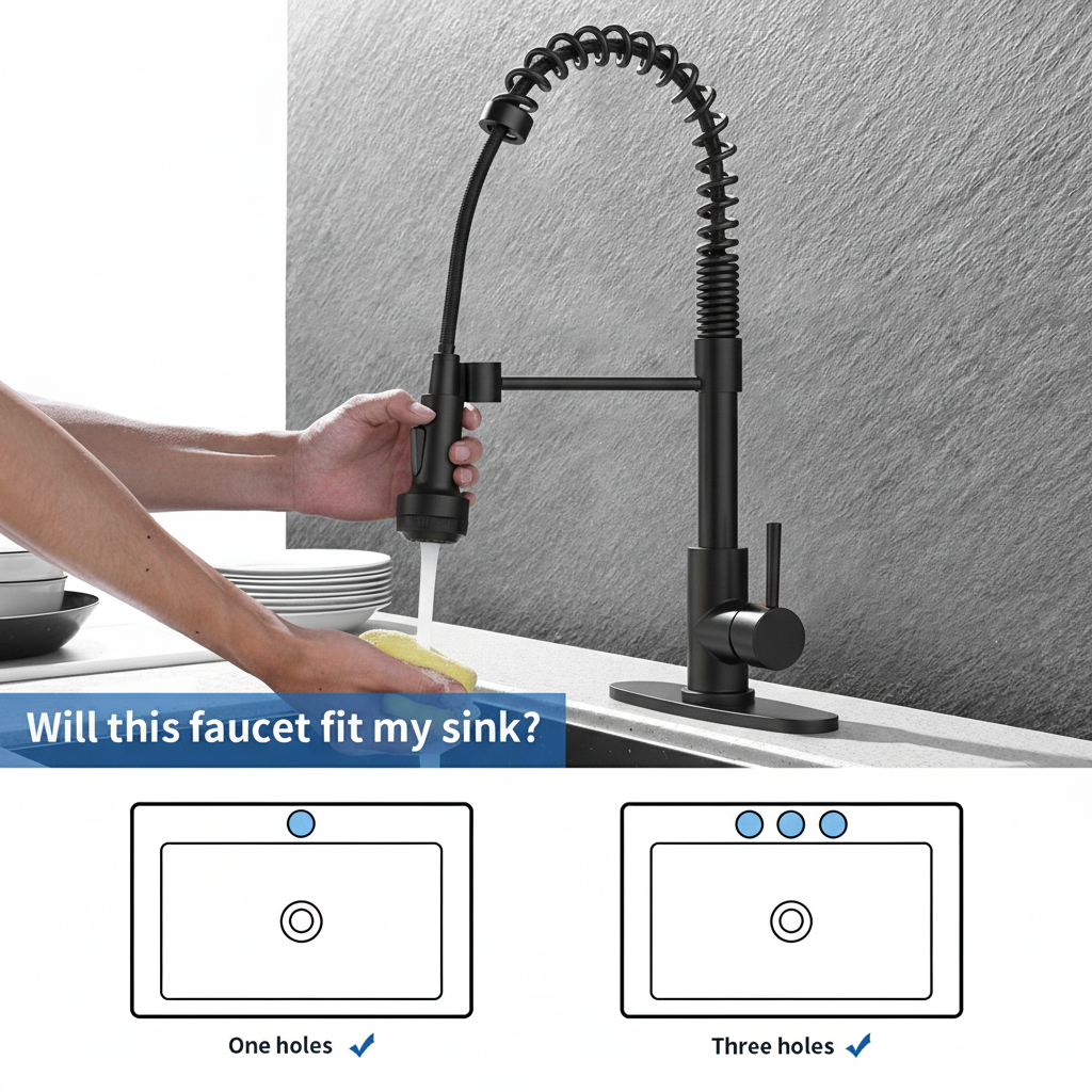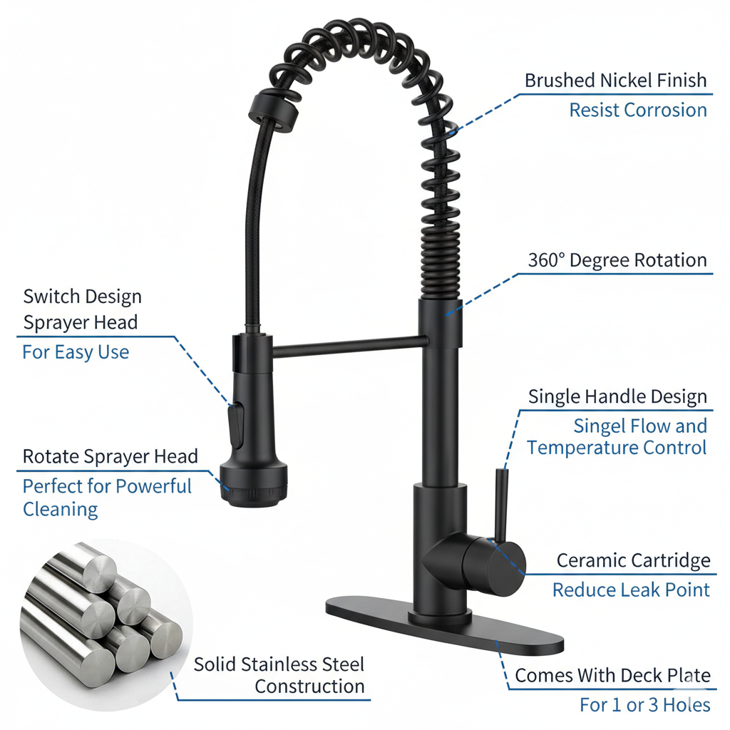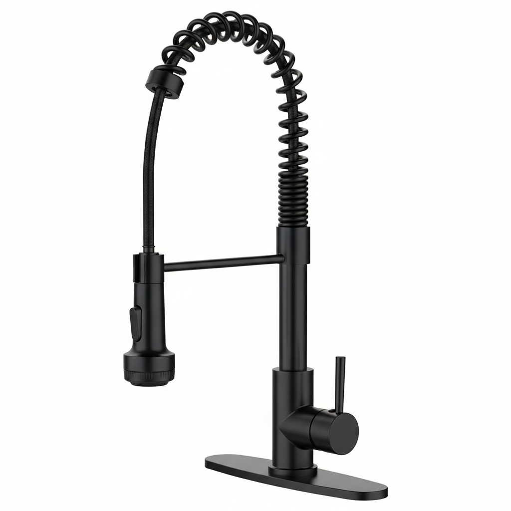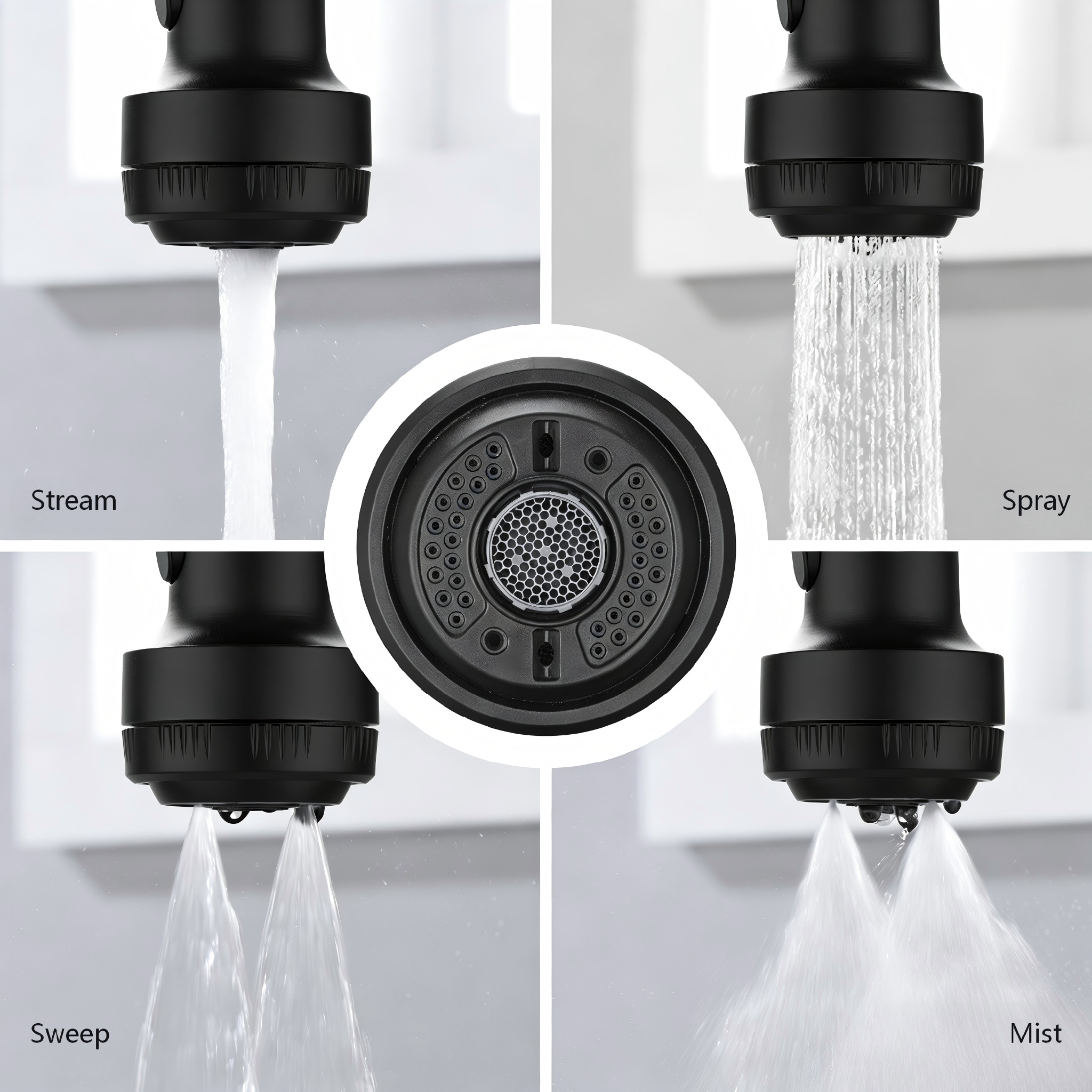 Kitchen Faucet with Pull Down Sprayer and 4 Spraying Modes Single Handle Commercial Spring Kitchen Sink Faucet Matte Black 1 or 3 Hole