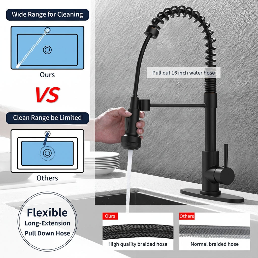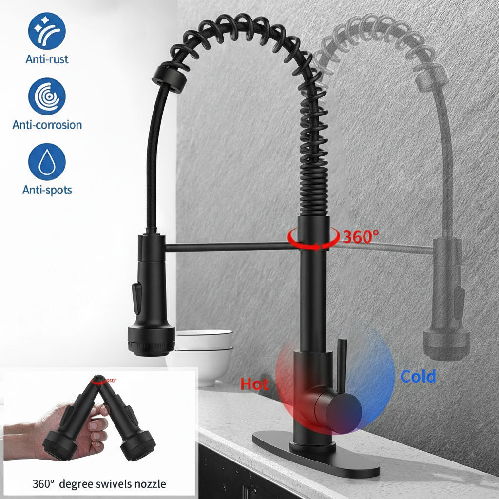 Kitchen Faucets Single Handle Pull Down Sprayer Spring Kitchen Sink Faucet