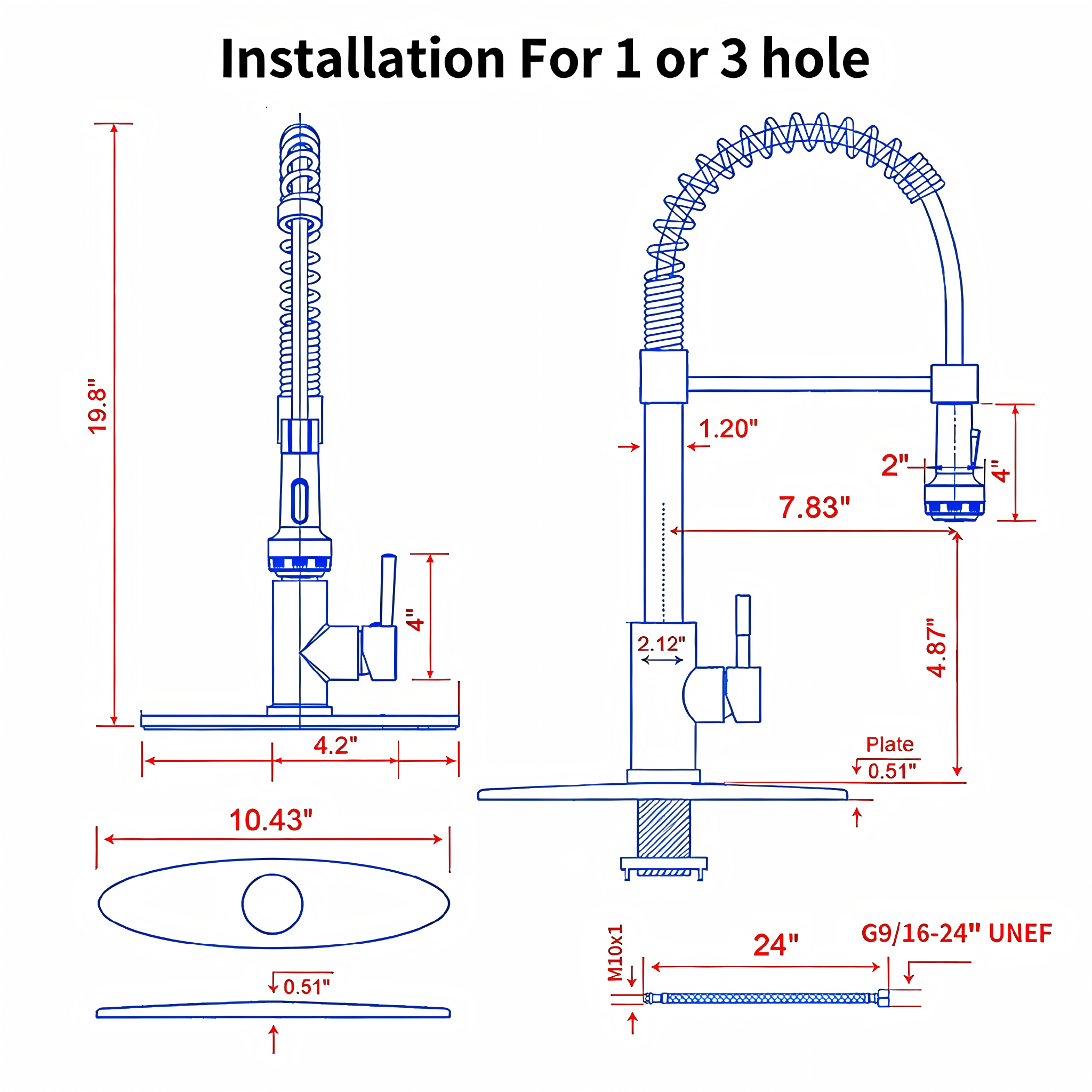 T3177 Kitchen Faucet with Pull Down Sprayer and 4 Spraying Modes Single Handle Commercial Spring Kitchen Sink Faucet Matte Black 1 or 3 Hole. Designed as a practical decorative lighting piece that supports everyday use while helping complete the look of the space. Material: Metal. Product dimensions and weight: length 28.54, width 11.02, height 7, weight 7.14.