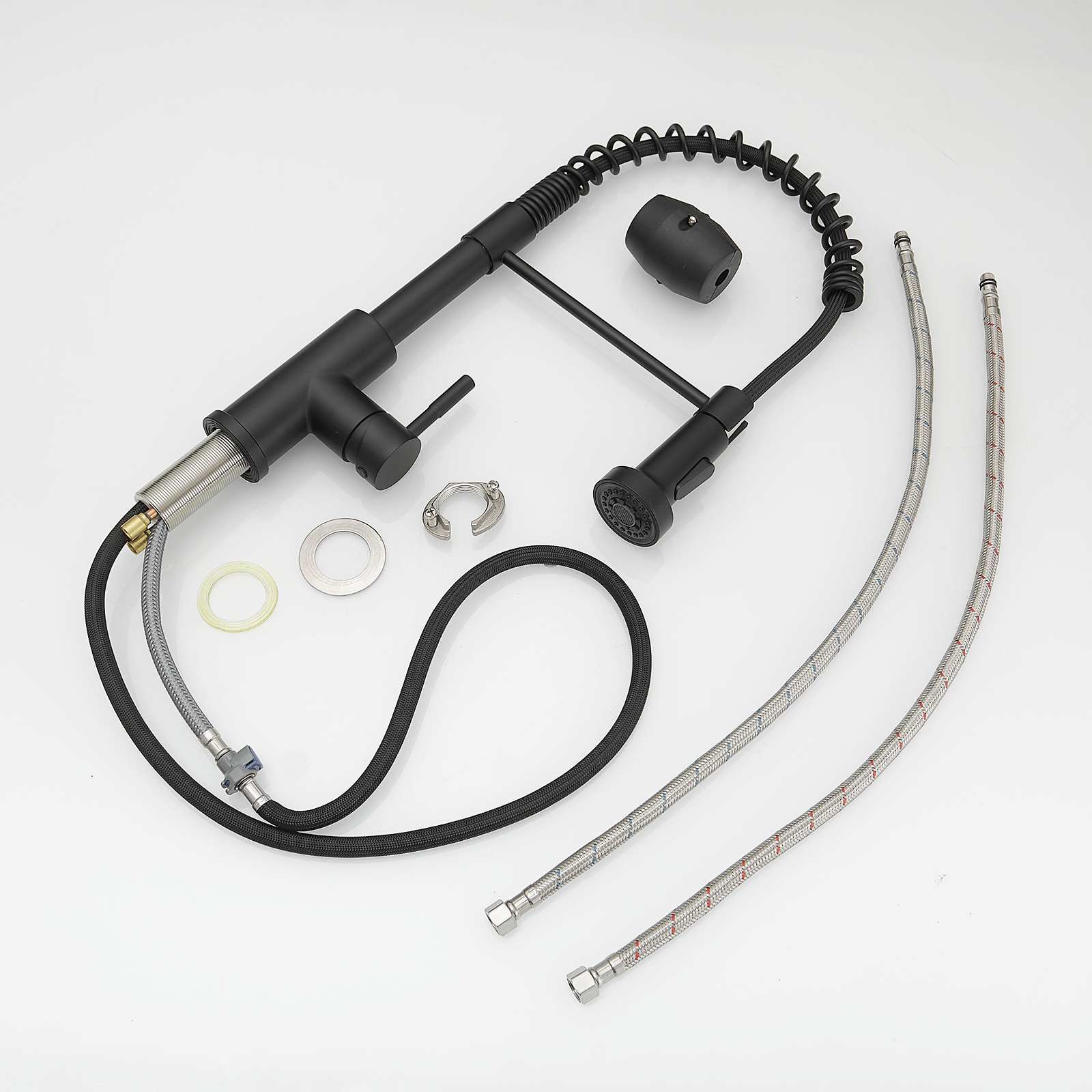 Kitchen Faucet with Pull Down Sprayer Black Stainless Steel Single Handle Pull Out Spring Sink Faucets