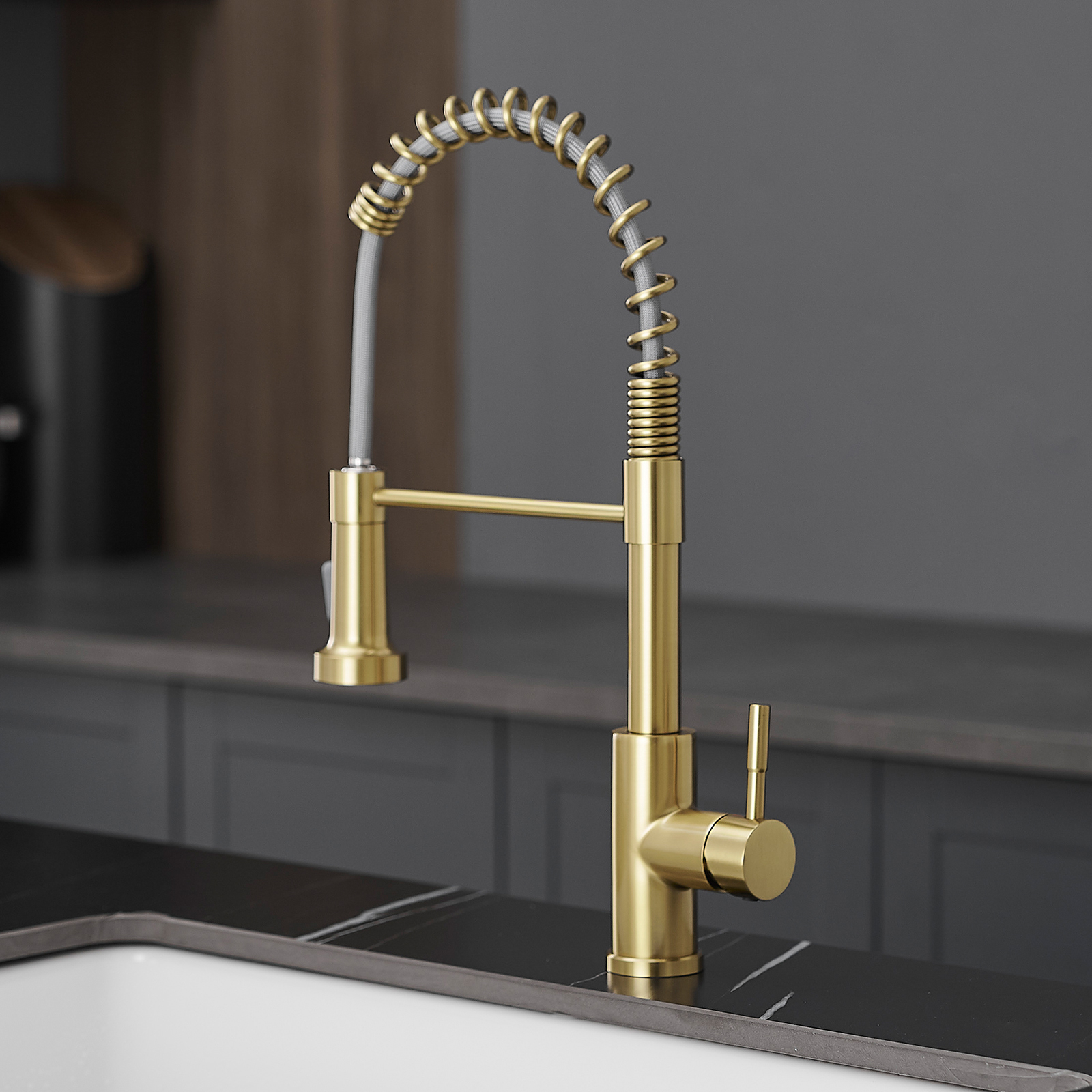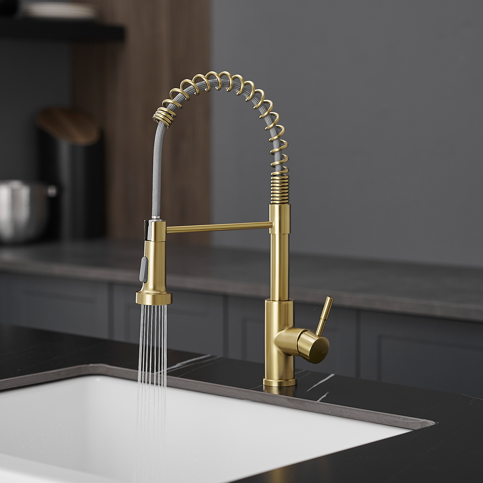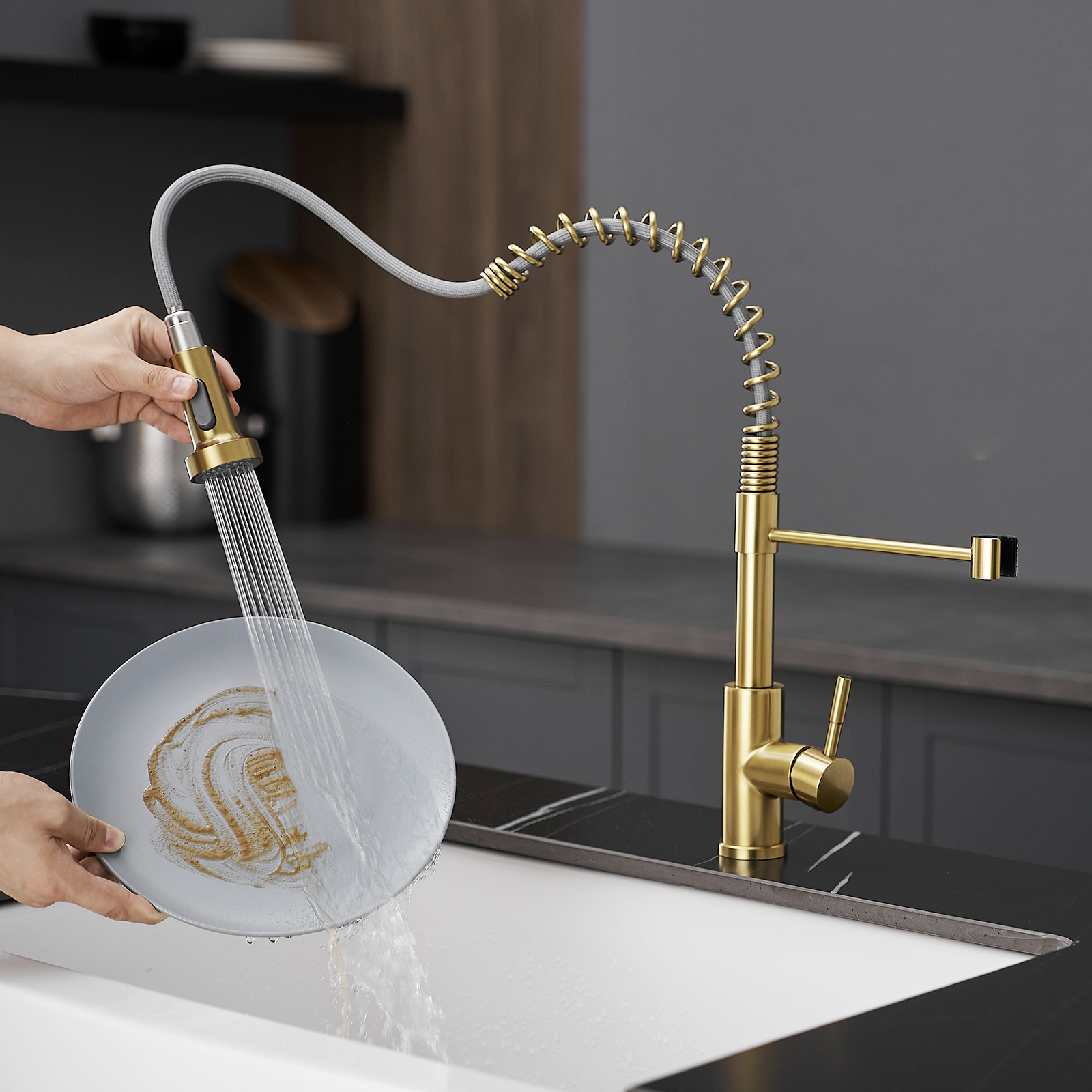 Kitchen Faucet with Pull Down Sprayer Brushed Gold Stainless Steel Single Handle Pull Out Spring Sink Faucets