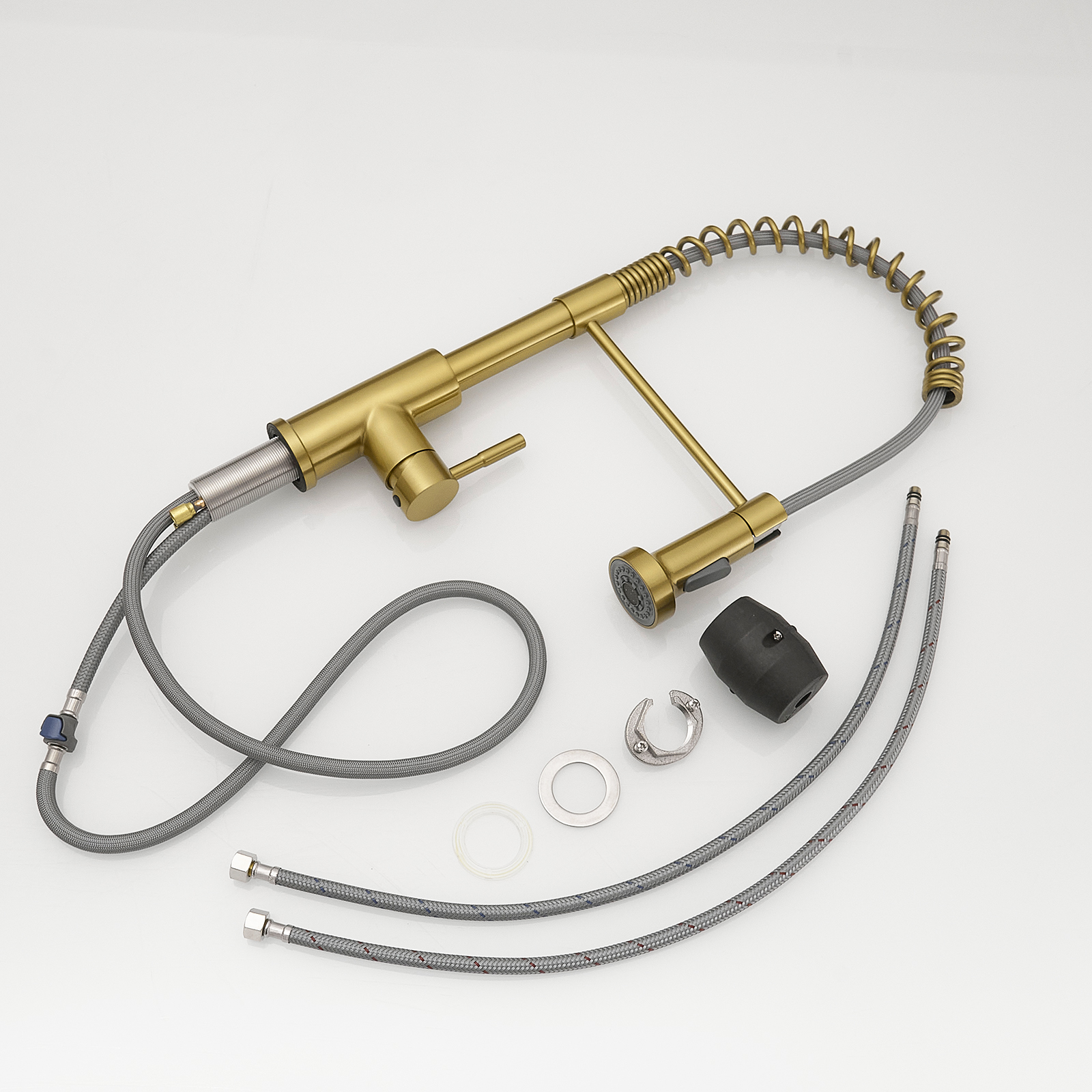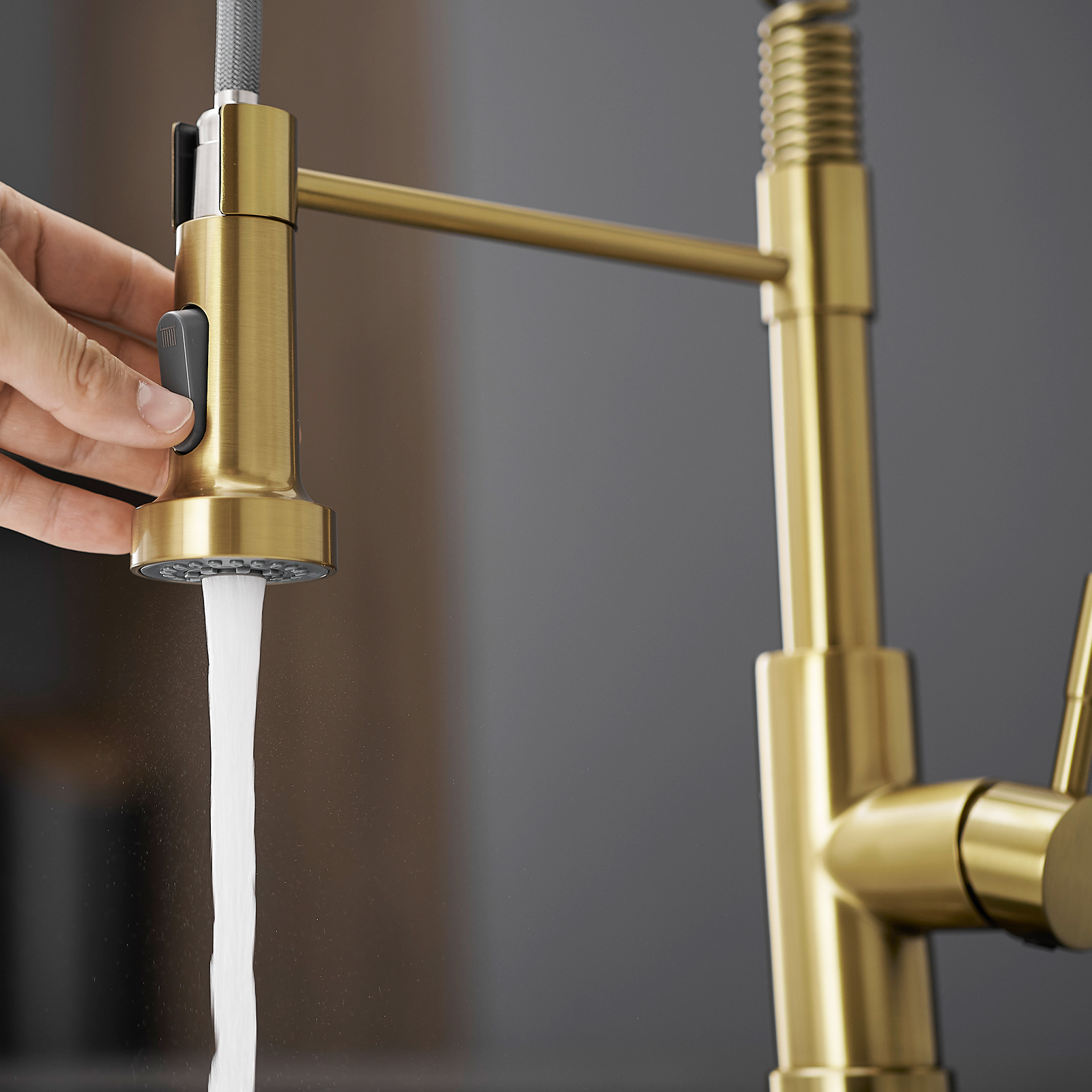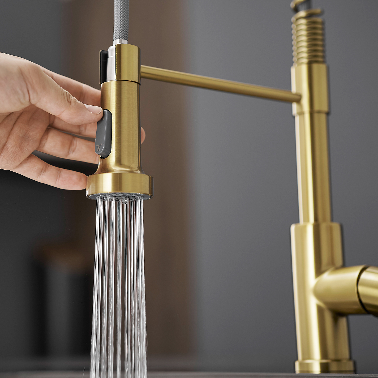 Kitchen Faucet with Pull Down Sprayer Brushed Gold Stainless Steel Single Handle Pull Out Spring Sink Faucets