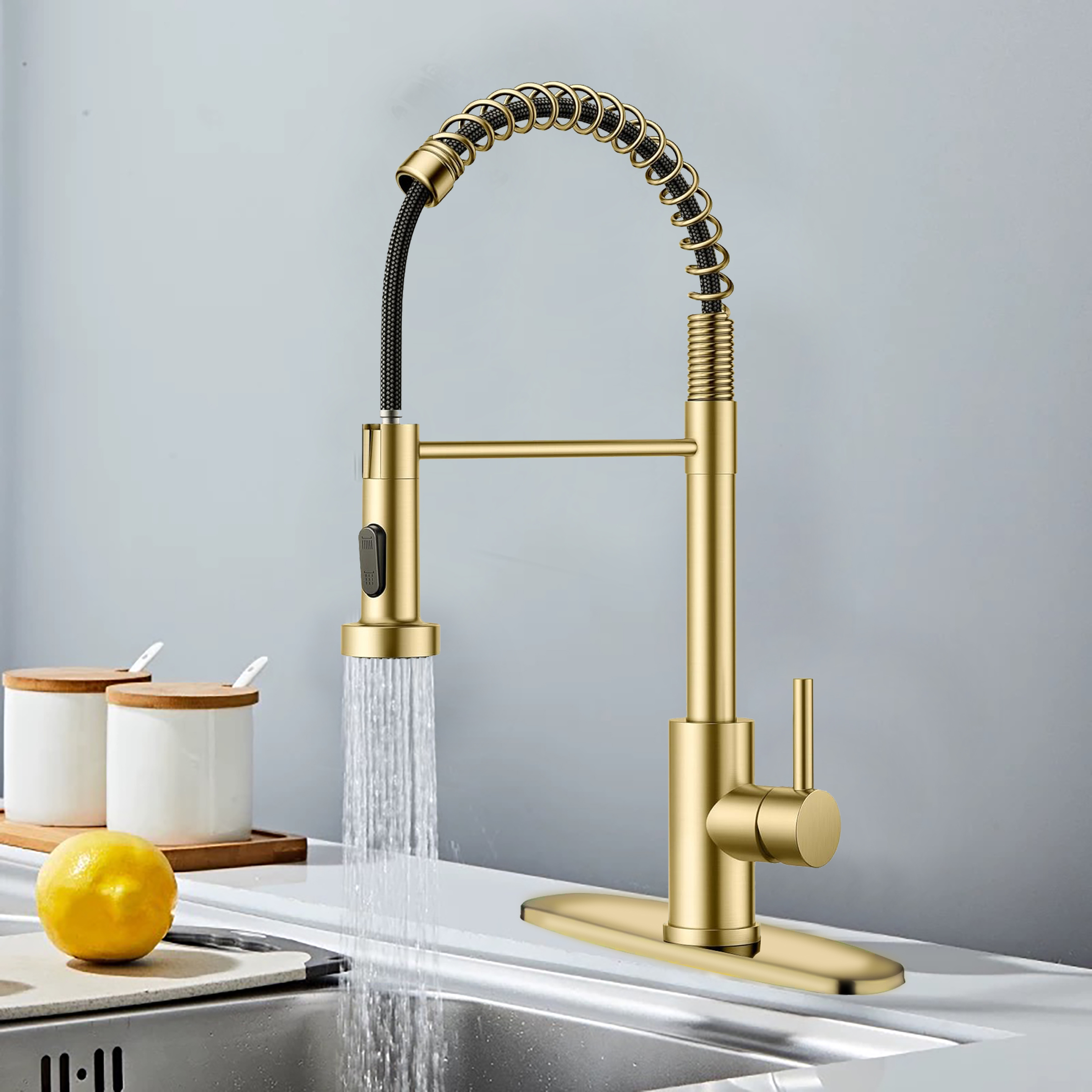 Kitchen Faucets Single Handle Pull Down Sprayer Spring Kitchen Sink Faucet