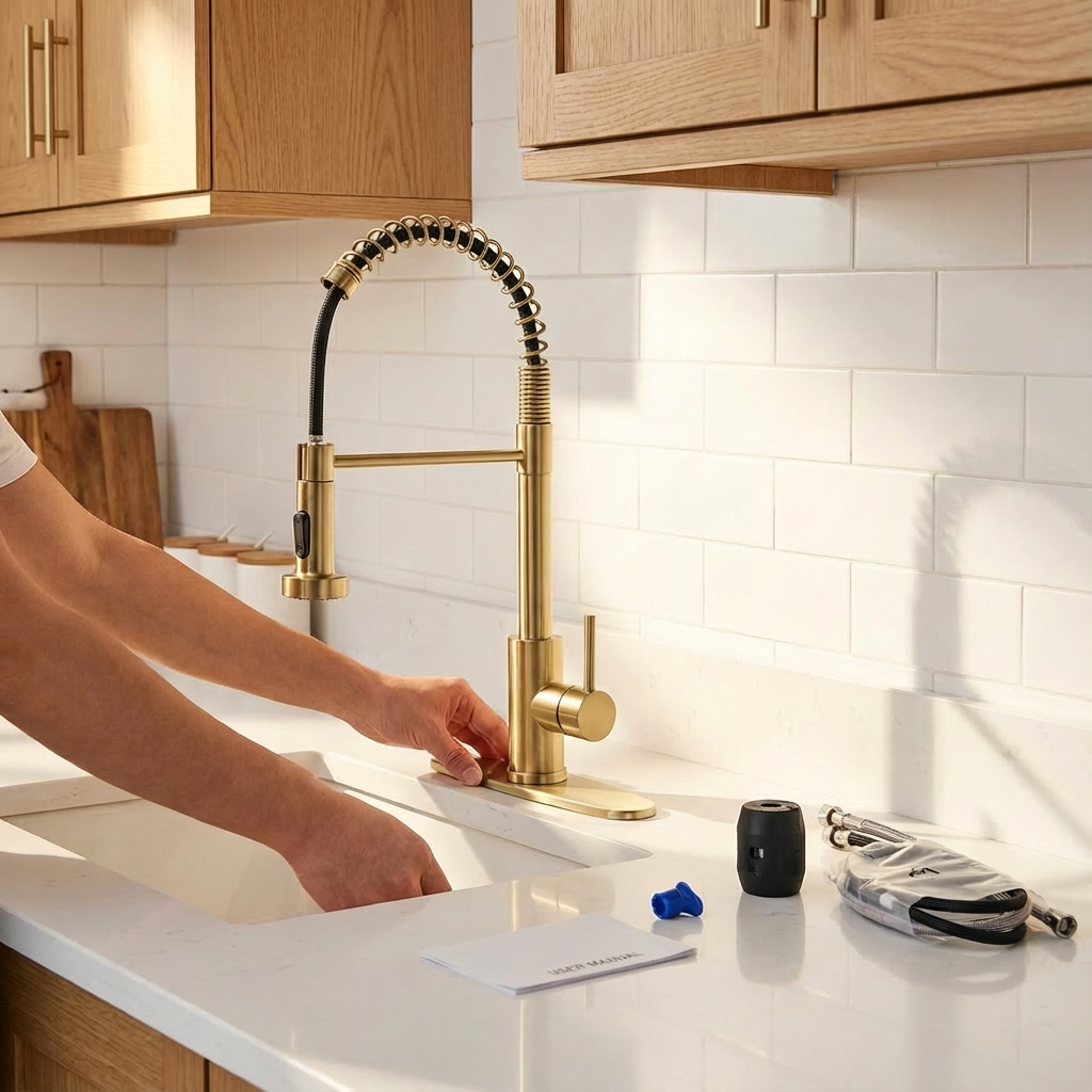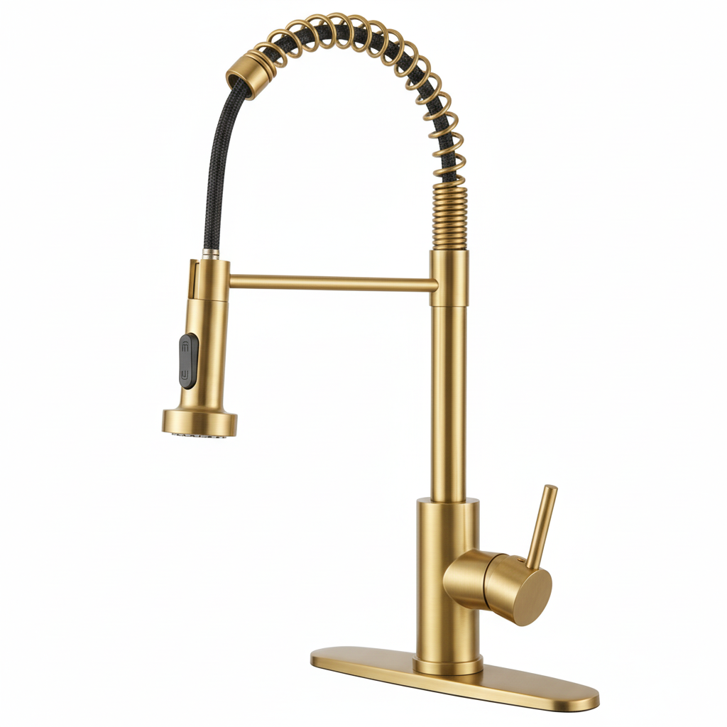 T3177 Kitchen Faucet with Pull Down Sprayer Industrial 1 Handle 1 Hole Or 3 Hole Faucet for Farmhouse Camper Laundry Utility Rv Wet Bar Sinks, Stainless Steel, Brushed Gold. Designed as a practical decorative lighting piece that supports everyday use while helping complete the look of the space. Material: Stainless Steel. Product dimensions and weight: length 17.4, width 13.39, height 2.36, weight 4.03.