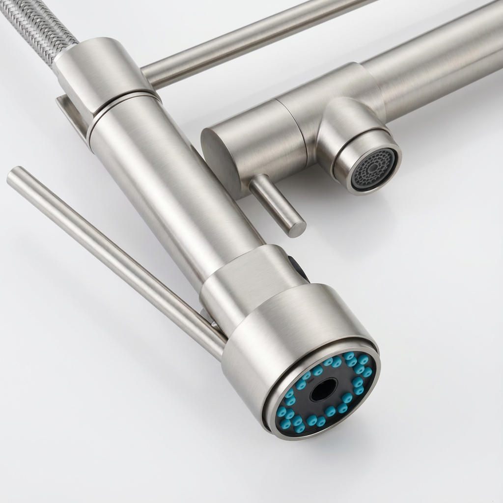 Wall mounted Pot Filler Faucet, Modern Brass Pot Filler Two-Attachment Wall Mount Folding Kitchen Pot Filler Swing Arm