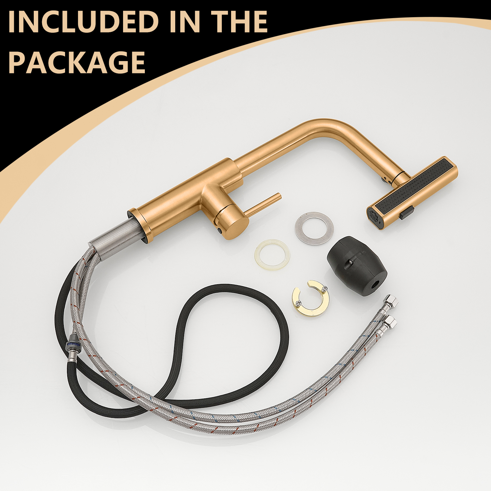 Kitchen Sink Faucet, Nickel Gold Kitchen Faucets with Pull out Sprayer, Bar Faucet Single Hole Faucet