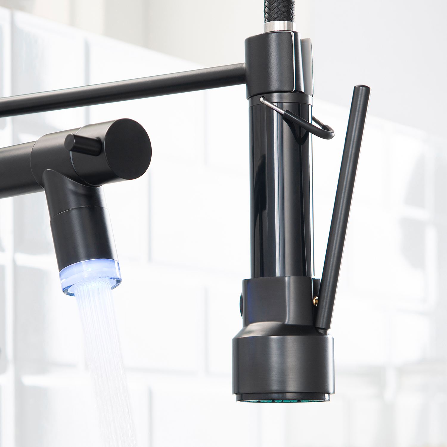 FLG LED Commercial Kitchen Faucet with Pull Down Sprayer, Single Handle Single Lever Kitchen Sink Faucet. Designed as a practical decorative lighting piece that supports everyday use while helping complete the look of the space. Material: brass. Product dimensions and weight: length 17.2, width 13, height 2.6, weight 5.9.