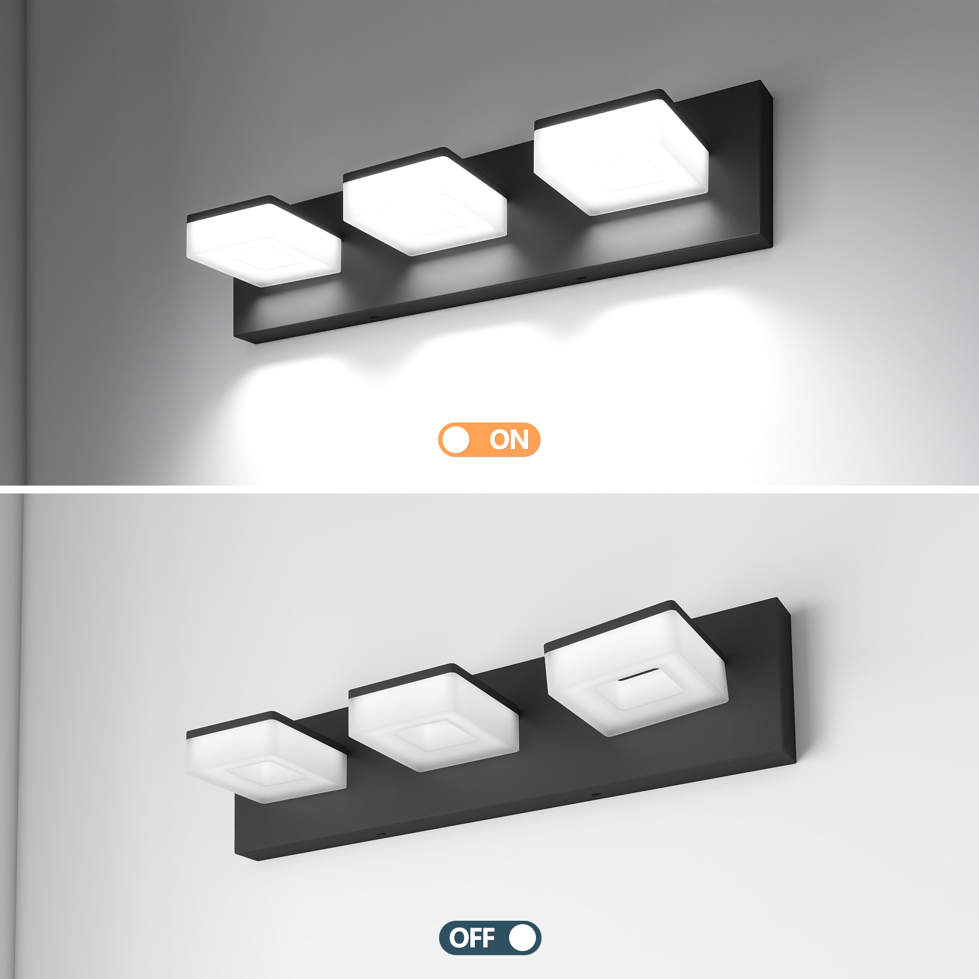 LED Modern Bathroom Vanity Light Fixtures (3-Light, 20-Inch), Matte Black Modern Acrylic Bathroom Wall Lighting Fixtures Over Mirror (Cool White 6000K)