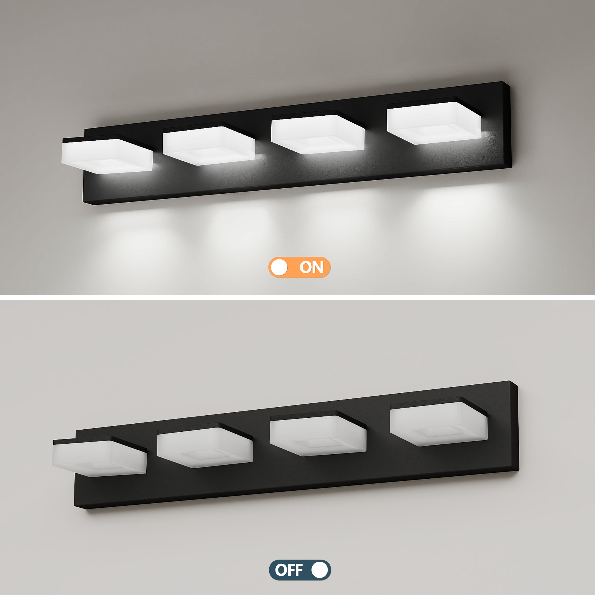 LED Modern Bathroom Vanity Light Fixtures (4-Light, 25-Inch), Matte Black Modern Acrylic Bathroom Wall Lighting Fixtures Over Mirror (Cool White 6000K)