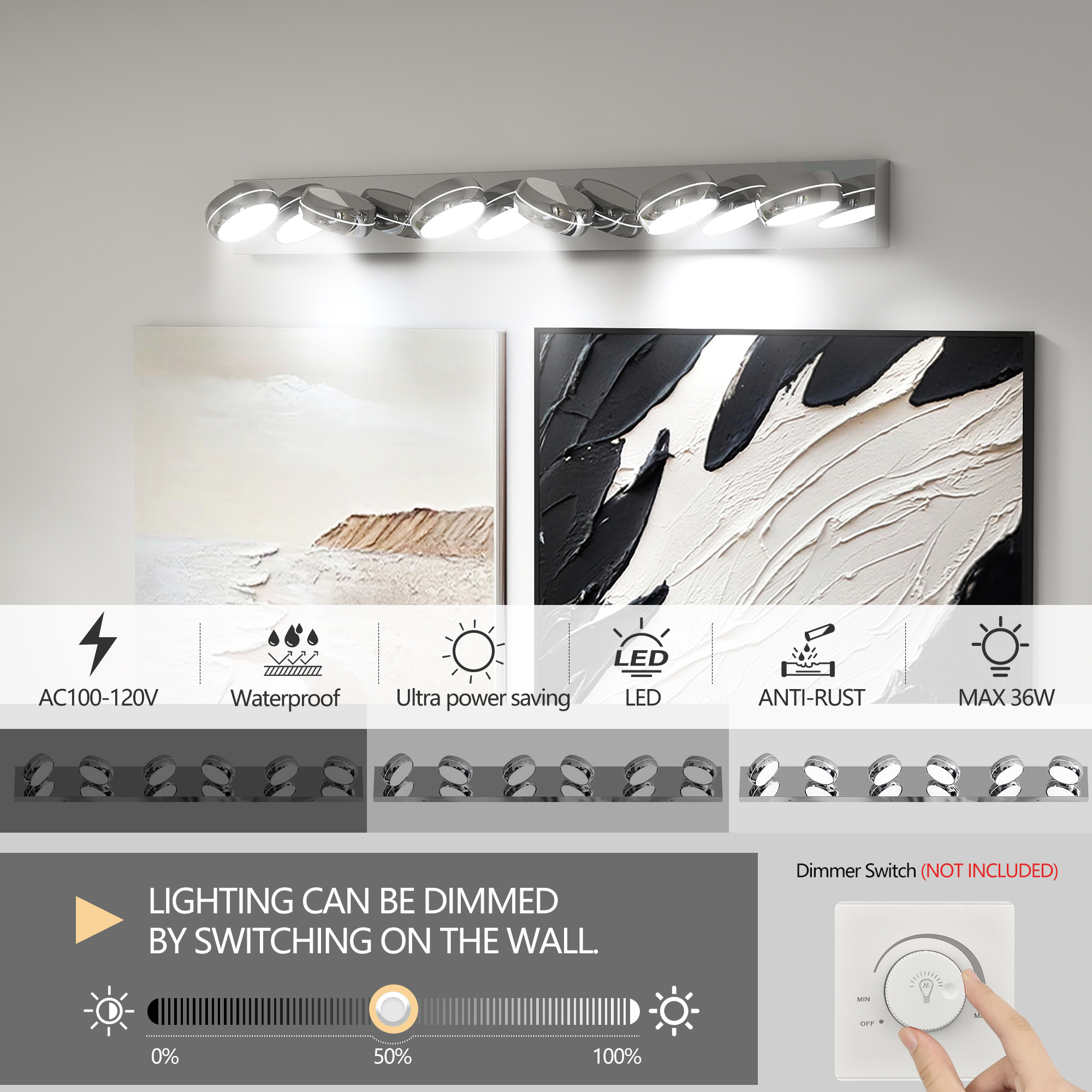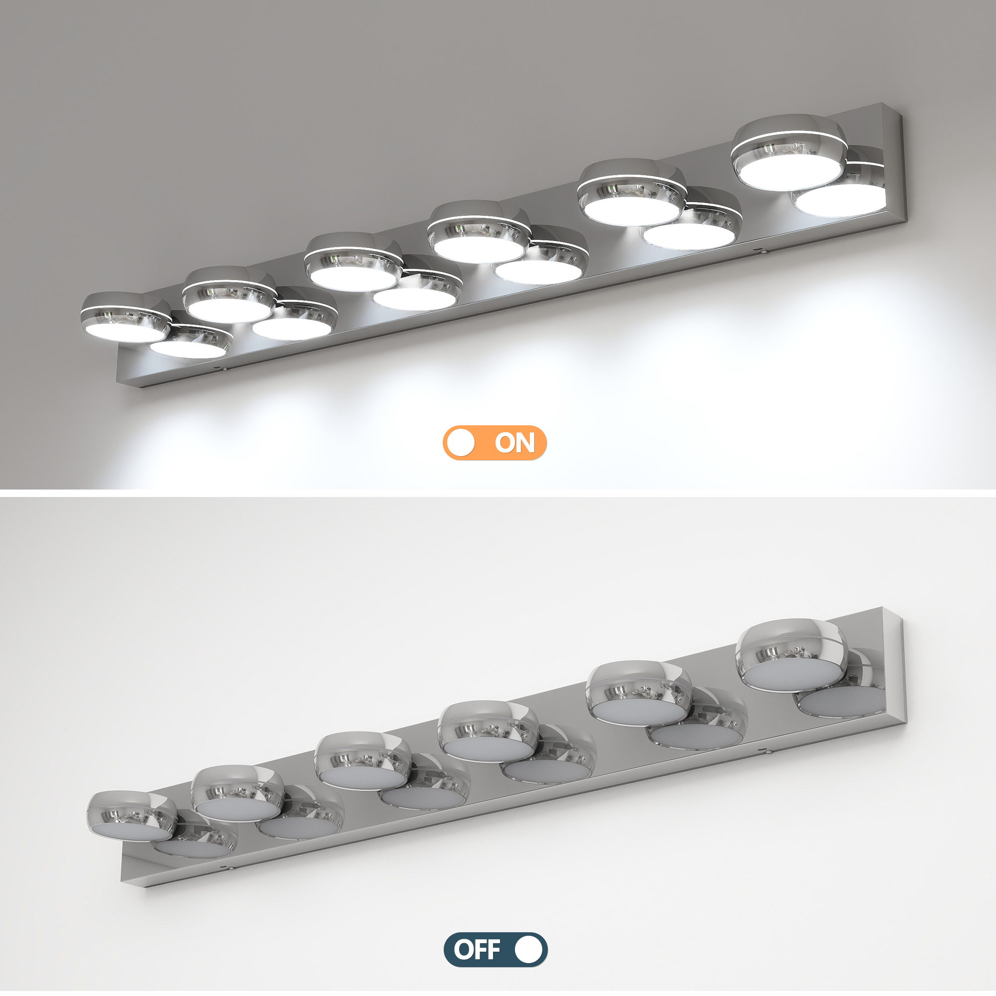 NEOSGO LED Vanity Lights 43in Bathroom Lights Fixtures over Mirror 6 Light LED Lighting Fixture for Bathroom 18W Mirror Lighting Fixture Modern Bath Light Bar Chrome Bath is designed to improve daily bathroom routines with a clearer mirror area and more useful lighting around the vanity space. The product presentation suggests a modern wall-mounted mirror intended for grooming, makeup, skincare, shaving, and other tasks that benefit from more even front-facing light. It works especially well in bathrooms, powder rooms, and remodeled vanity areas where customers want the mirror to provide both practical function and a cleaner visual upgrade. This type of mirror is a strong fit for shoppers looking to make the room feel brighter, more modern, and easier to use every day. Overall size is approximately 44.88 x 6.3 x 7.87 inches with a listed weight of 8.8. The current listing includes 9 product images, which help clarify the product shape, proportions, and visual placement in a real room setting.