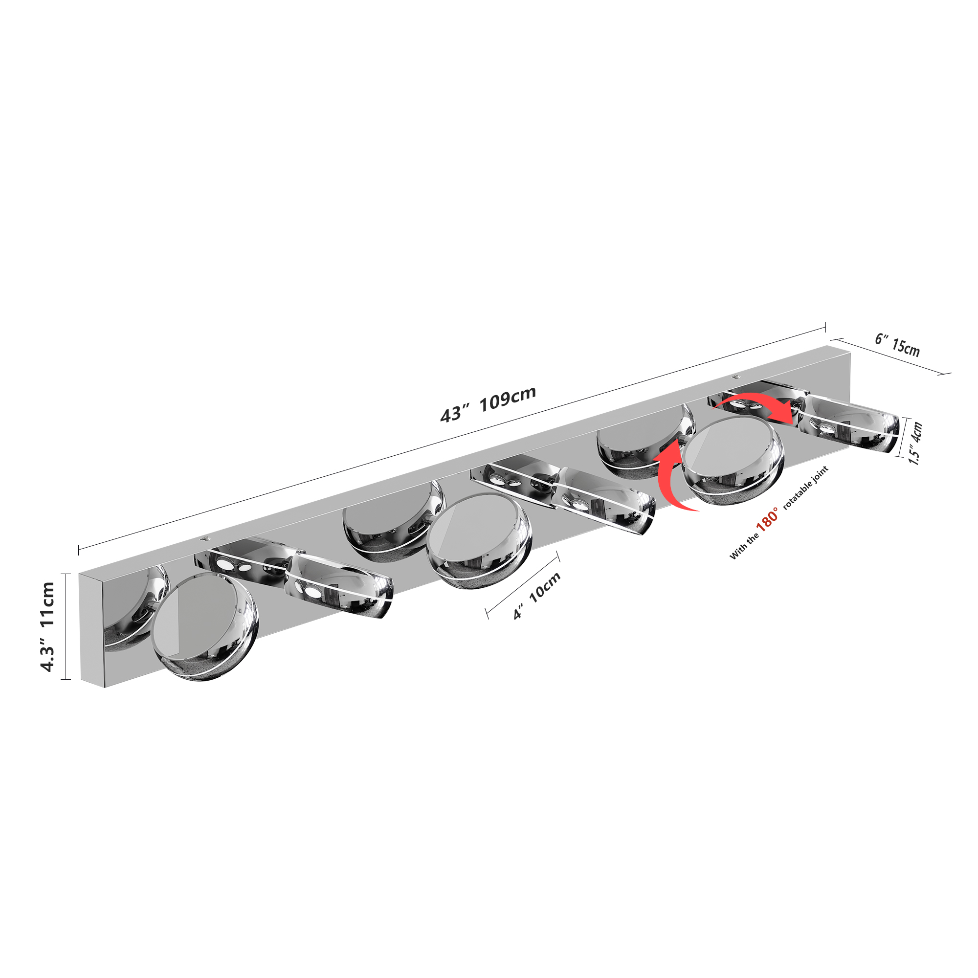 LED Vanity Lights 43in Bathroom Lights Fixtures over Mirror 6 Light LED Lighting Fixture for Bathroom 18W Mirror Lighting Fixture Modern Bath Light Bar Chrome Bath