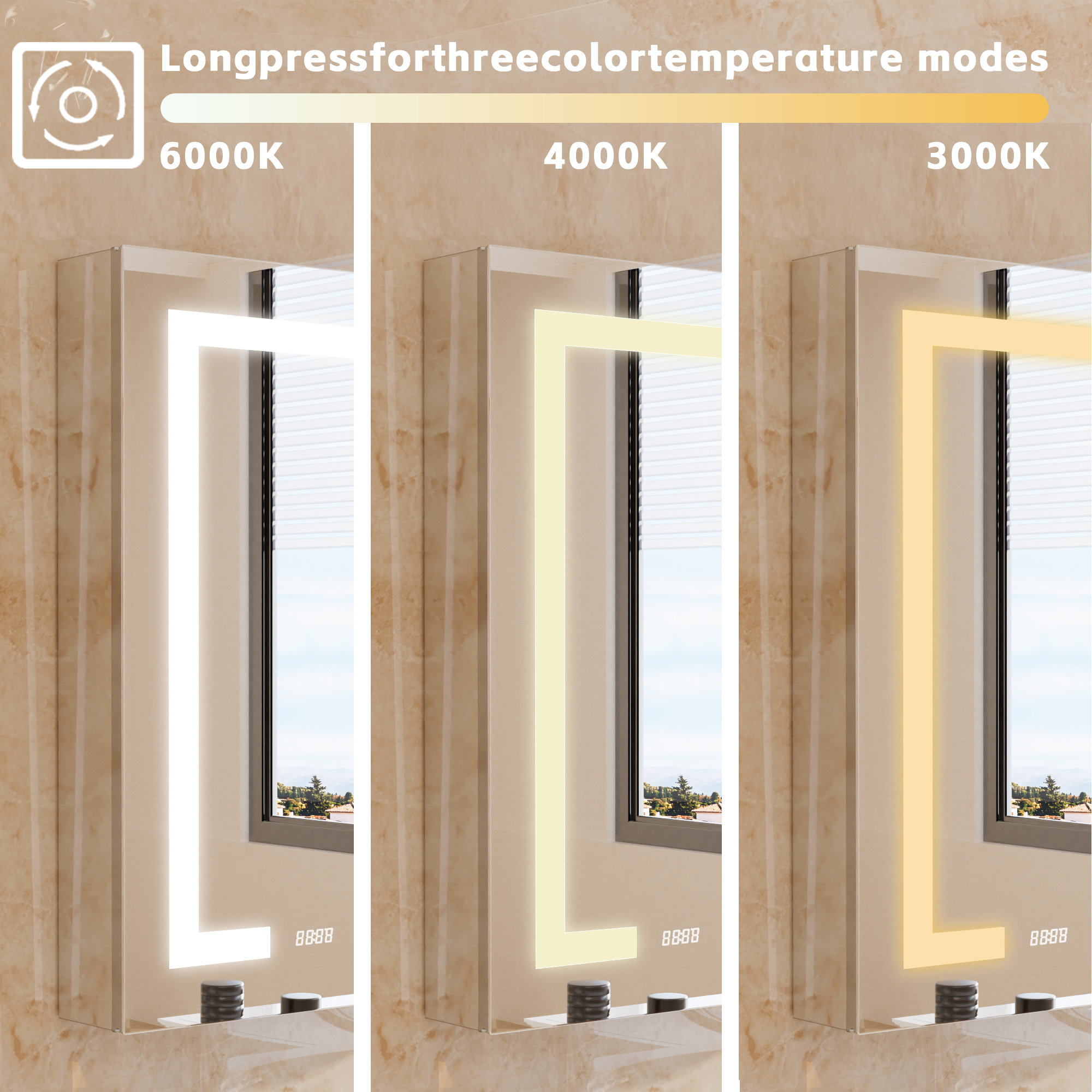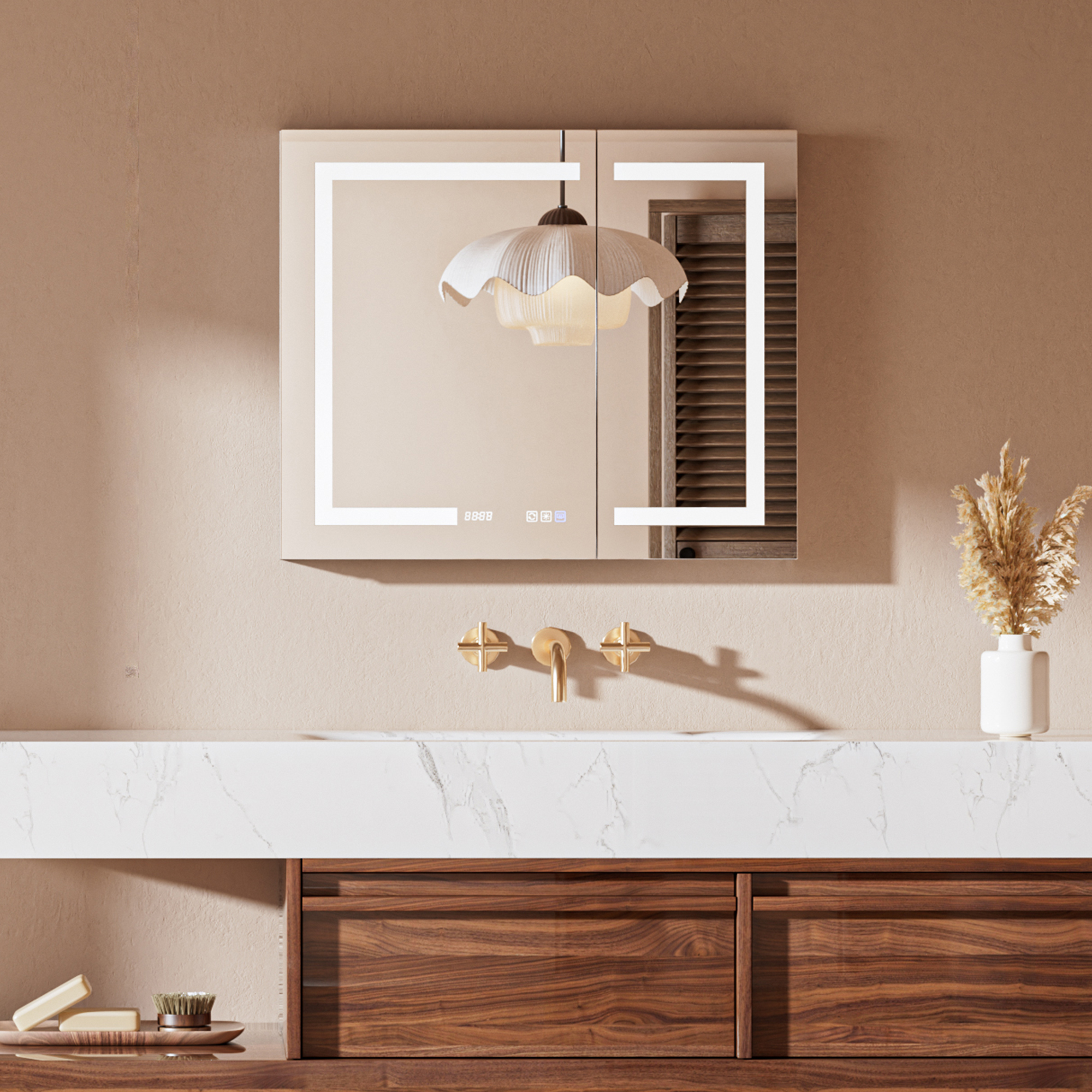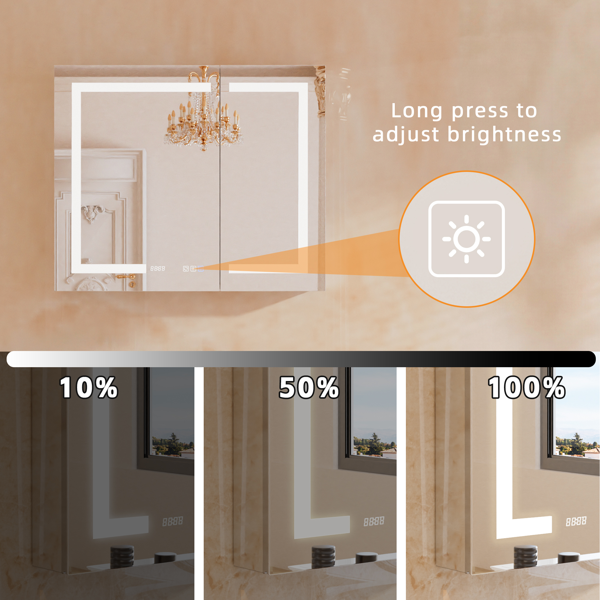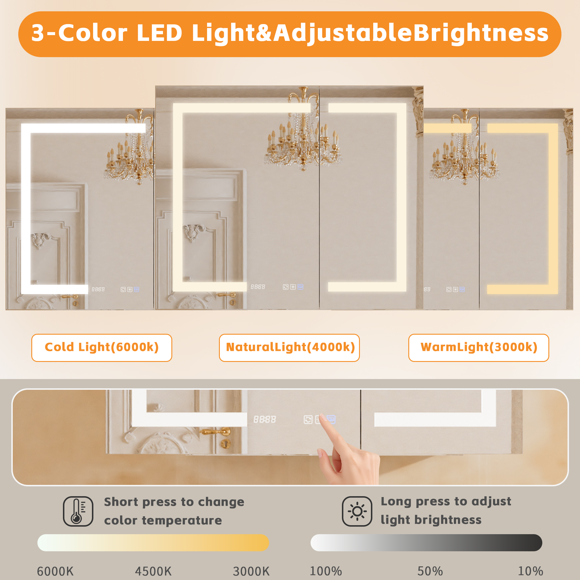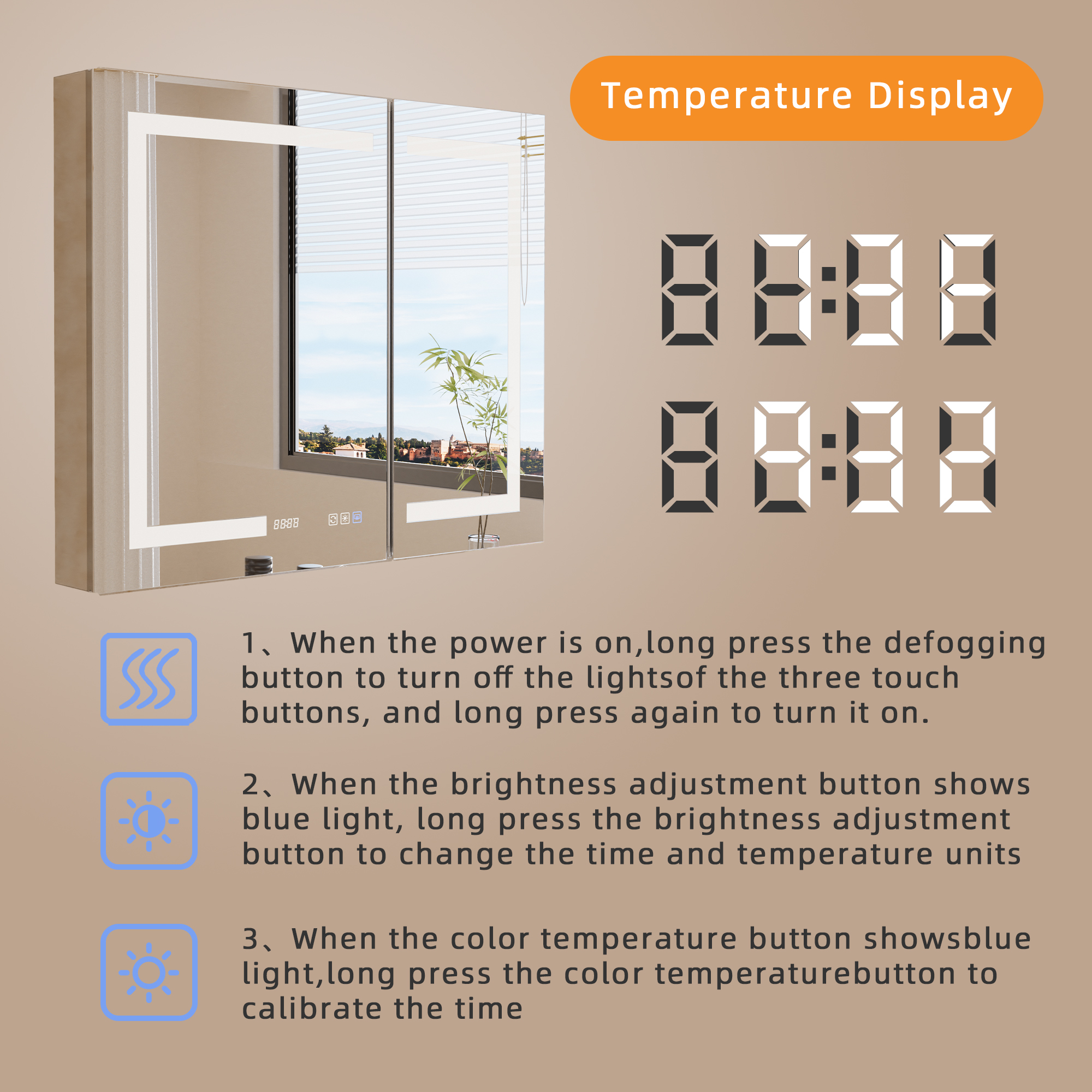 W5609 Lighted Bathroom Medicine Cabinet with Intelligent Mirror, 42" W x 30" H, Dimmable, Time & Temp Display, Anti-Fog, Built-in Outlet & USB, Adustable Shelf. Designed to provide practical task lighting around a vanity or bathroom mirror while supporting everyday grooming routines. Material: Aluminium,Glass. Product dimensions and weight: length 48.43, width 36.22, height 8.66, weight 78.1.