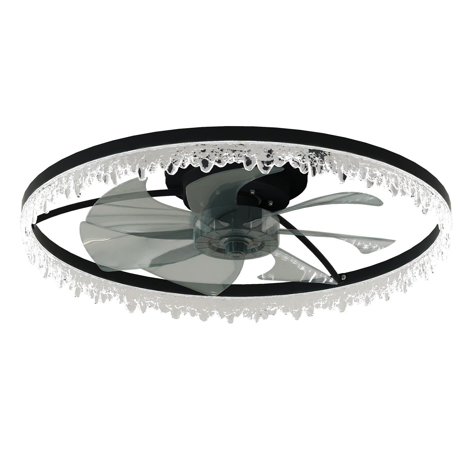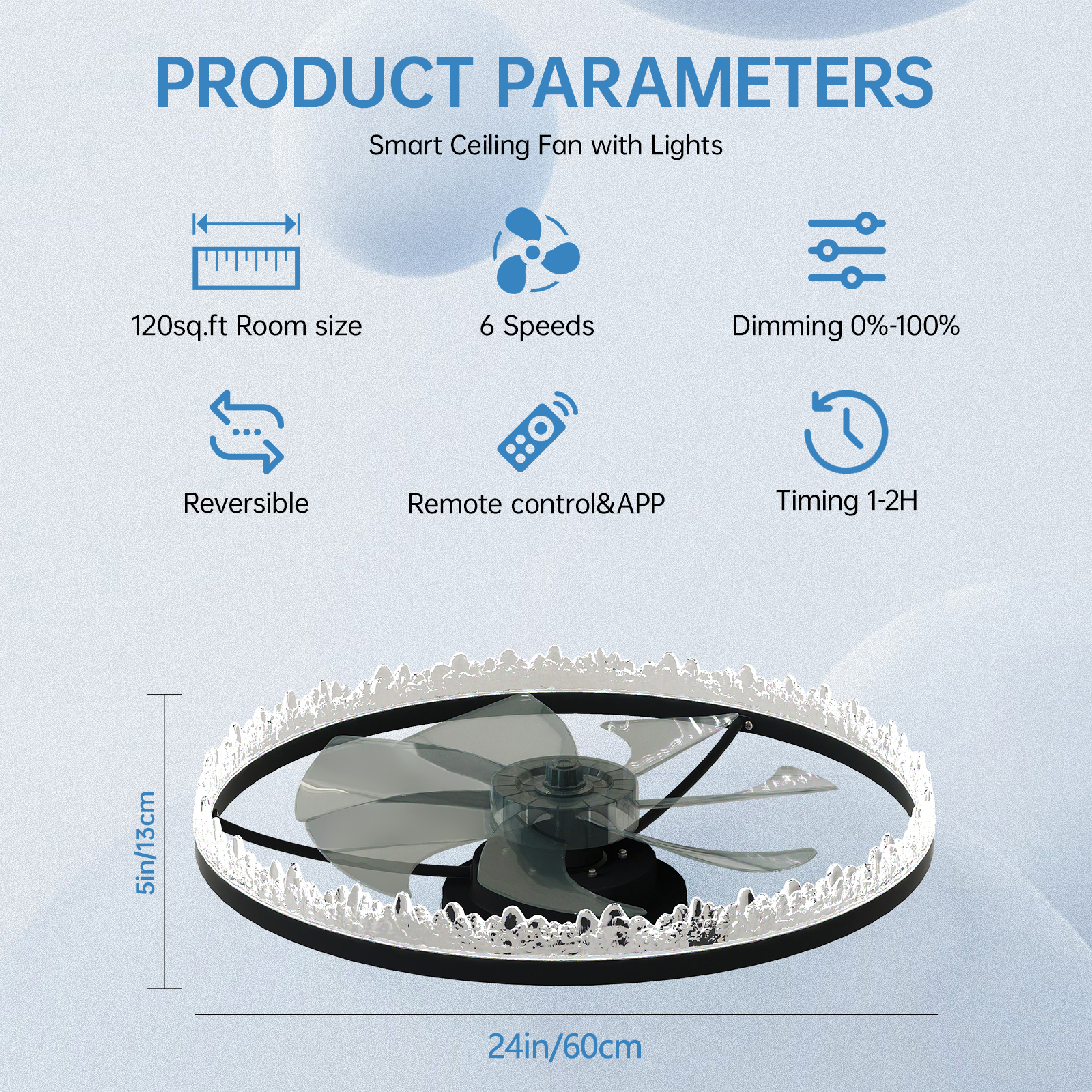 NEOSGO Luxury Crystal Ceiling Fan with Lights – 24'' Flush Mount LED Chandelier Fan with 5 Invisible Blades, Remote & Timer, Bright Dimmable Lighting for Bedroom, Living Room, Dining Room combines ceiling lighting and airflow in one fixture, making it useful for rooms that need everyday comfort as well as a more finished overhead look. The caged or close-to-ceiling style shown in the product presentation helps it work well in spaces where customers want decorative character without the visual bulk of a larger hanging fixture. It is well suited for kitchens, dining rooms, bedrooms, living areas, and similar spaces where air movement, ambient light, and a coordinated design all matter. This is a practical choice for customers who want to save ceiling space while improving comfort and keeping the room visually polished. Overall size is approximately 24.8 x 24.8 x 6.5 inches with a listed weight of 8.6. The current listing includes 8 product images, which help clarify the product shape, proportions, and visual placement in a real room setting.
