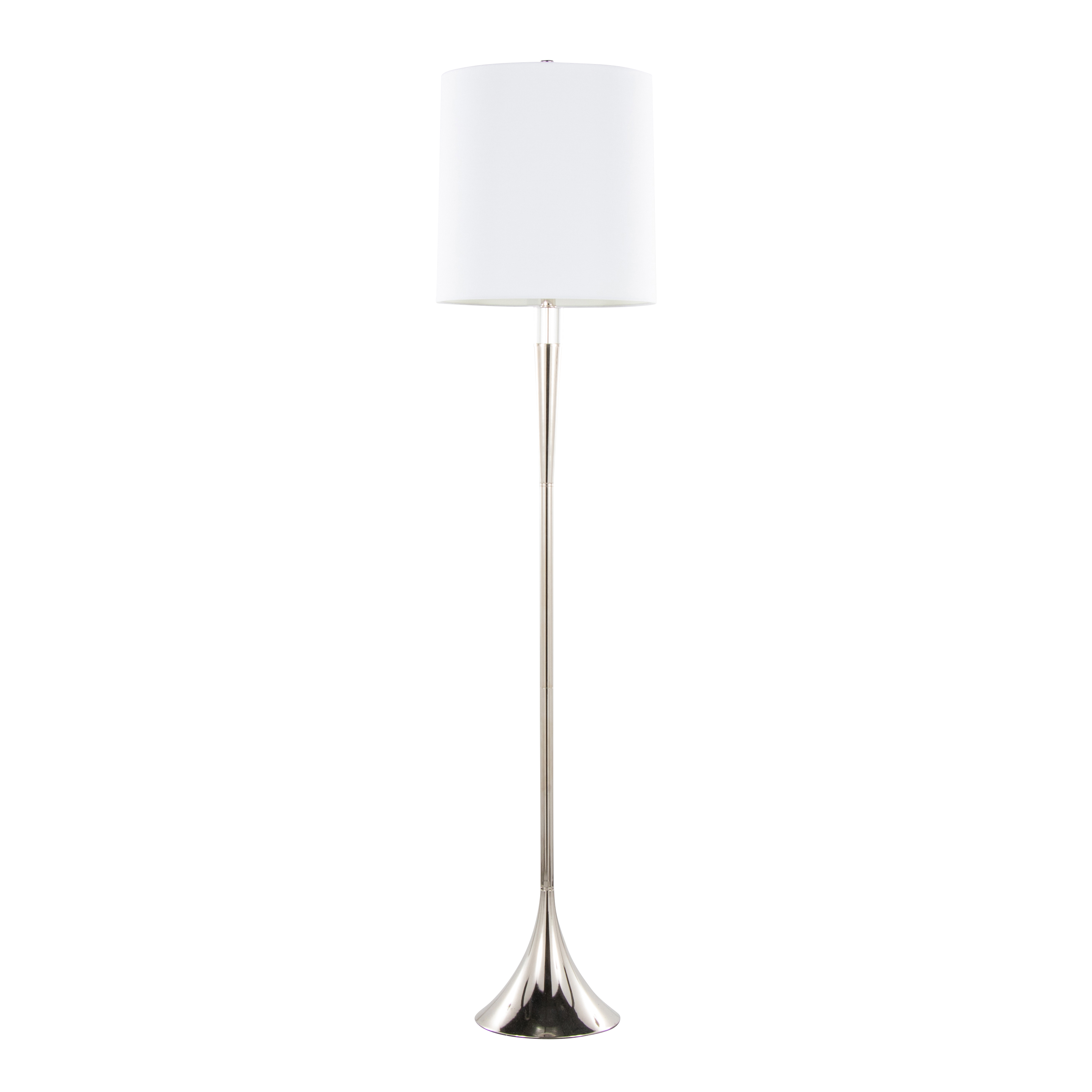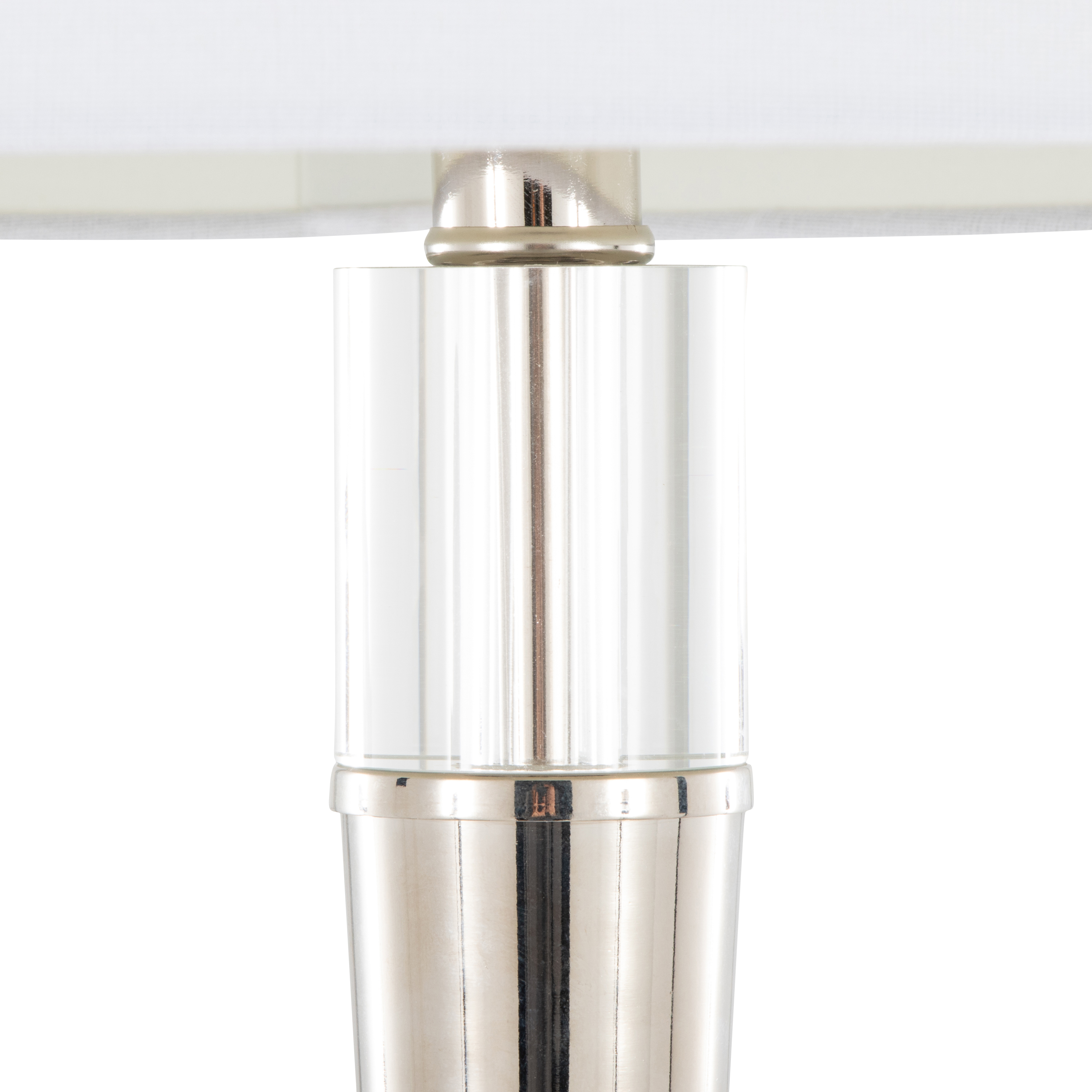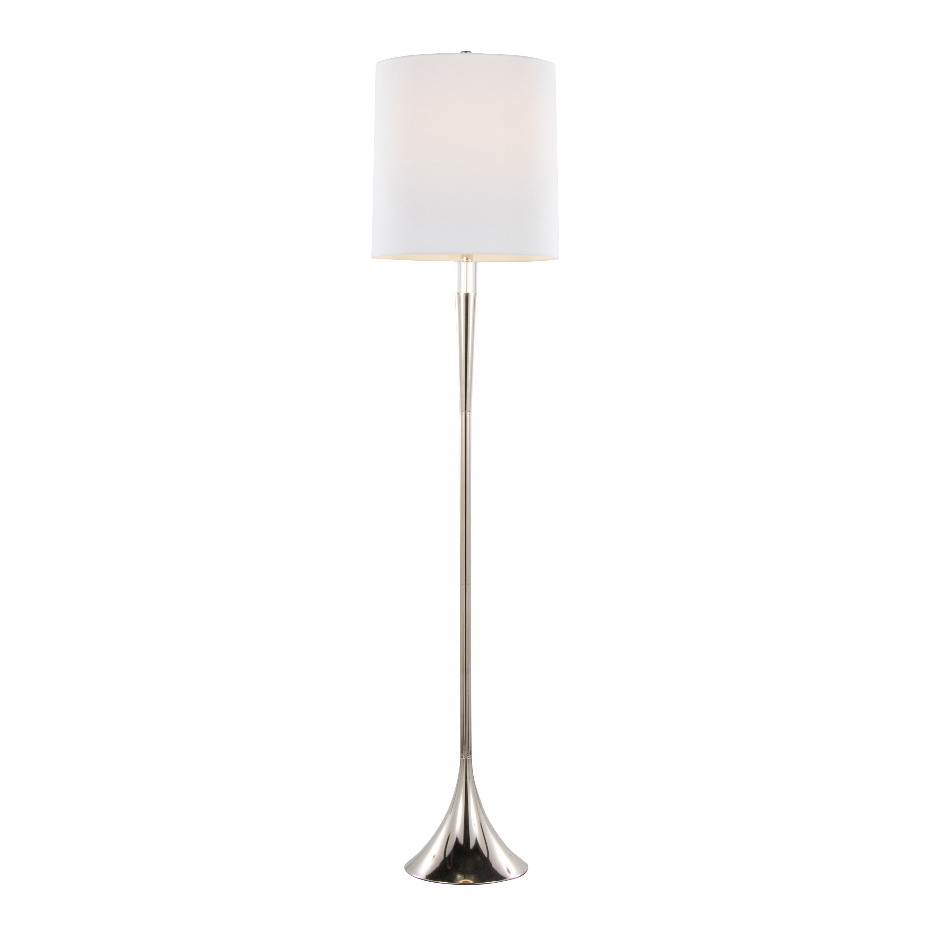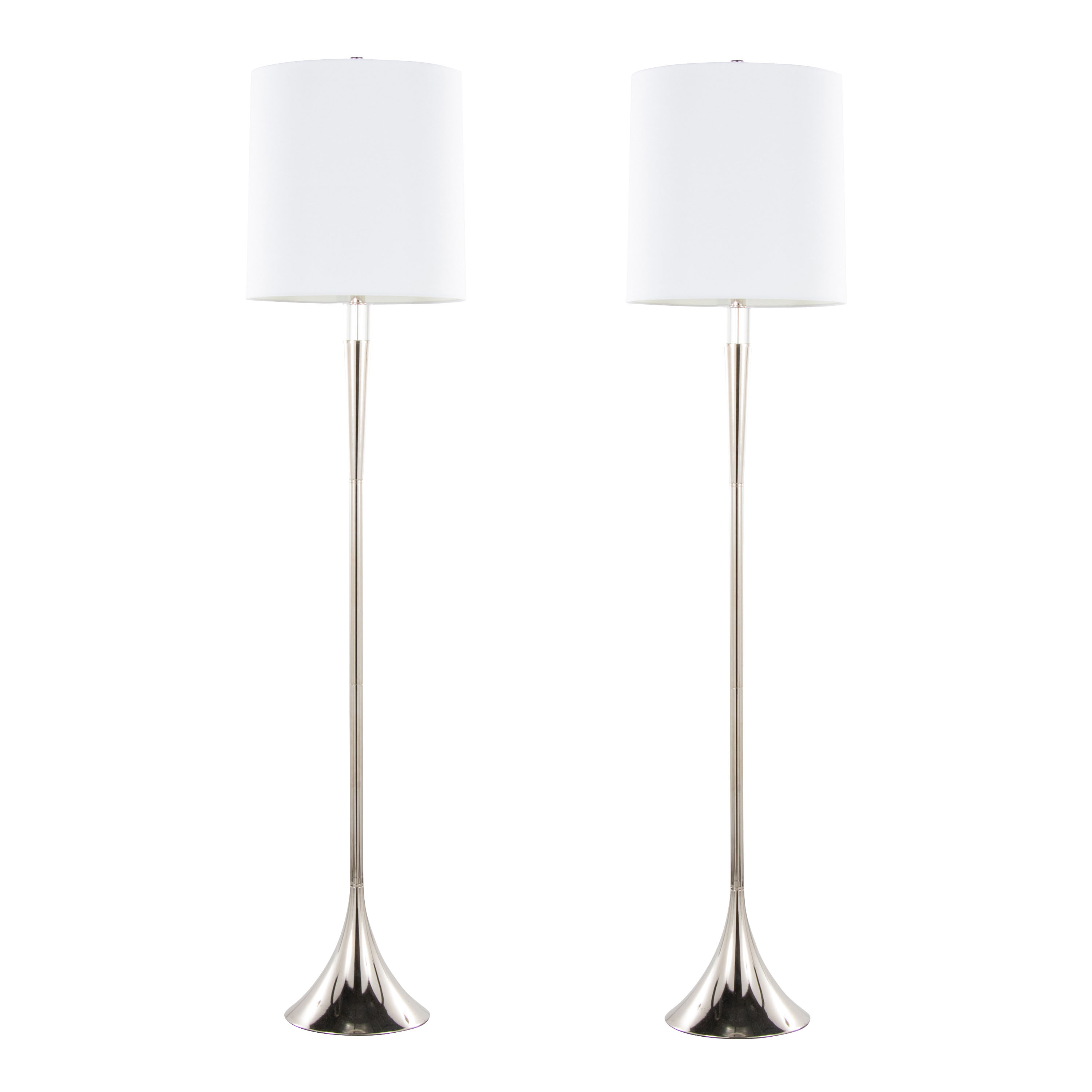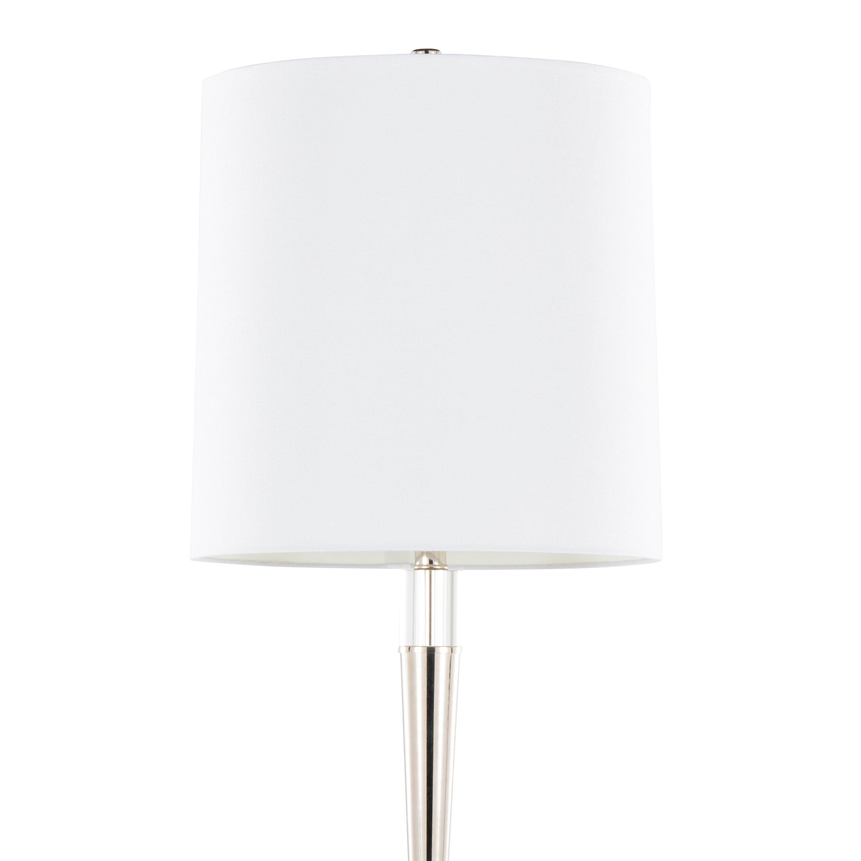 Metal Floor Lamp in Polished Nickel and Clear K9 Crystal with White Linen Shade - Set of 2