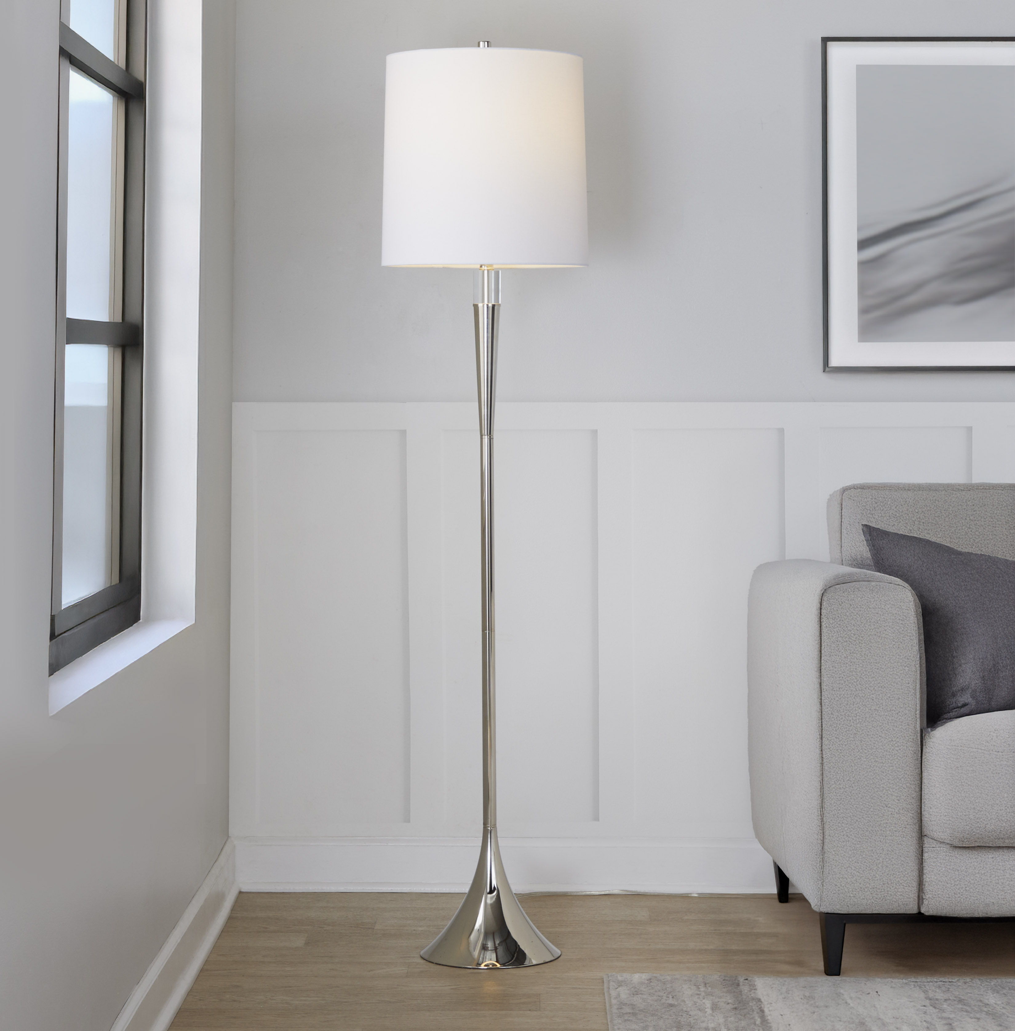 NEOSGO Metal Floor Lamp in Polished Nickel and Clear K9 Crystal with White Linen Shade - Set of 2 adds flexible freestanding lighting for spaces that need more usable light without changing the ceiling layout. This type of lamp is practical for reading corners, sofas, bedrooms, offices, and living rooms where customers want to layer light and create a more comfortable atmosphere. From the product presentation, it appears suitable for adding both functional illumination and a decorative presence that helps complete the room. It works well for shoppers who want a light source that is easy to place, visually useful, and supportive of everyday living. Overall size is approximately 23 x 17 x 28 inches with a listed weight of 23. The current listing includes 10 product images, which help clarify the product shape, proportions, and visual placement in a real room setting.