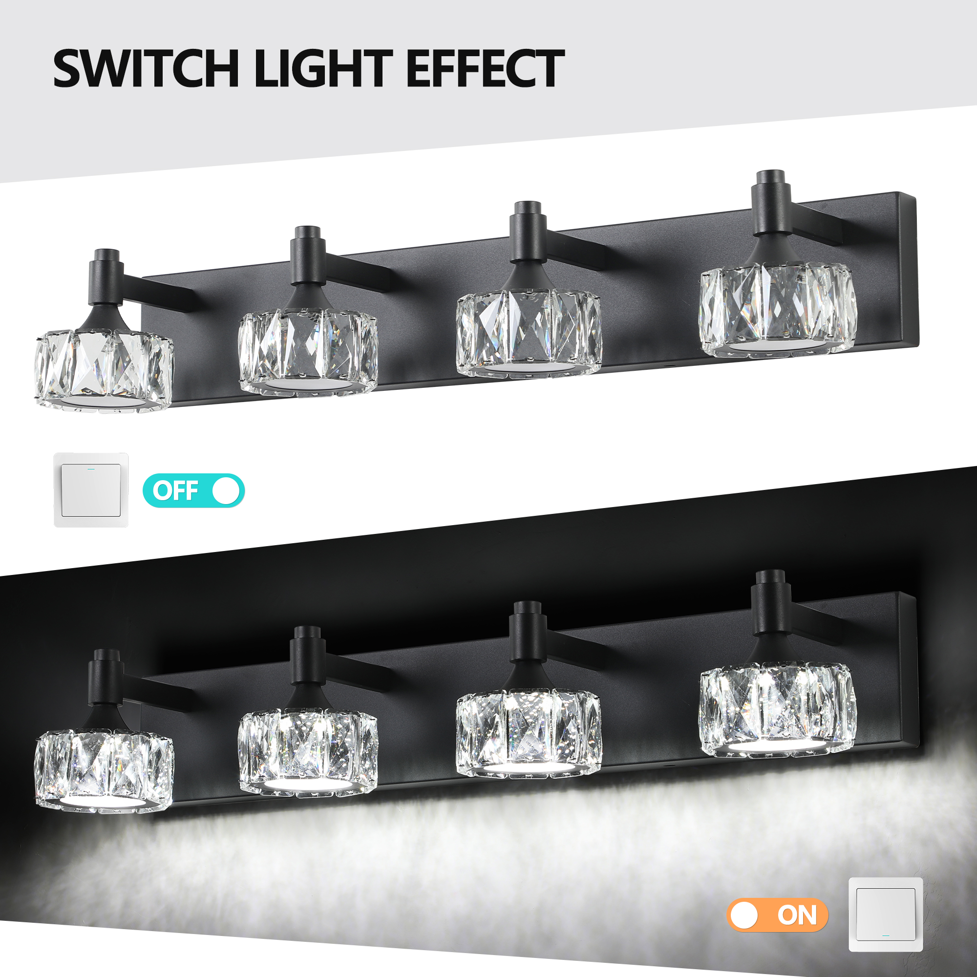 NEOSGO Modern 4-Light Matte Black LED Vanity Light Fixture with Crystal Glass Shades, Bathroom Wall Sconce for Elegant and Contemporary Home Decor is intended to provide focused wall lighting while also adding decorative detail to the surrounding space. This style is especially useful near mirrors, over bathroom vanities, along hallways, in bedrooms, or in accent areas that benefit from directed light rather than relying only on ceiling fixtures. Based on the product presentation, it offers a practical mix of daily illumination and visual styling, which helps the room feel more complete and intentionally designed. It is a good option for customers who want better task lighting together with a more refined finished look on the wall. Overall size is approximately 31.1 x 9.45 x 7.09 inches with a listed weight of 9.8. The current listing includes 9 product images, which help clarify the product shape, proportions, and visual placement in a real room setting.