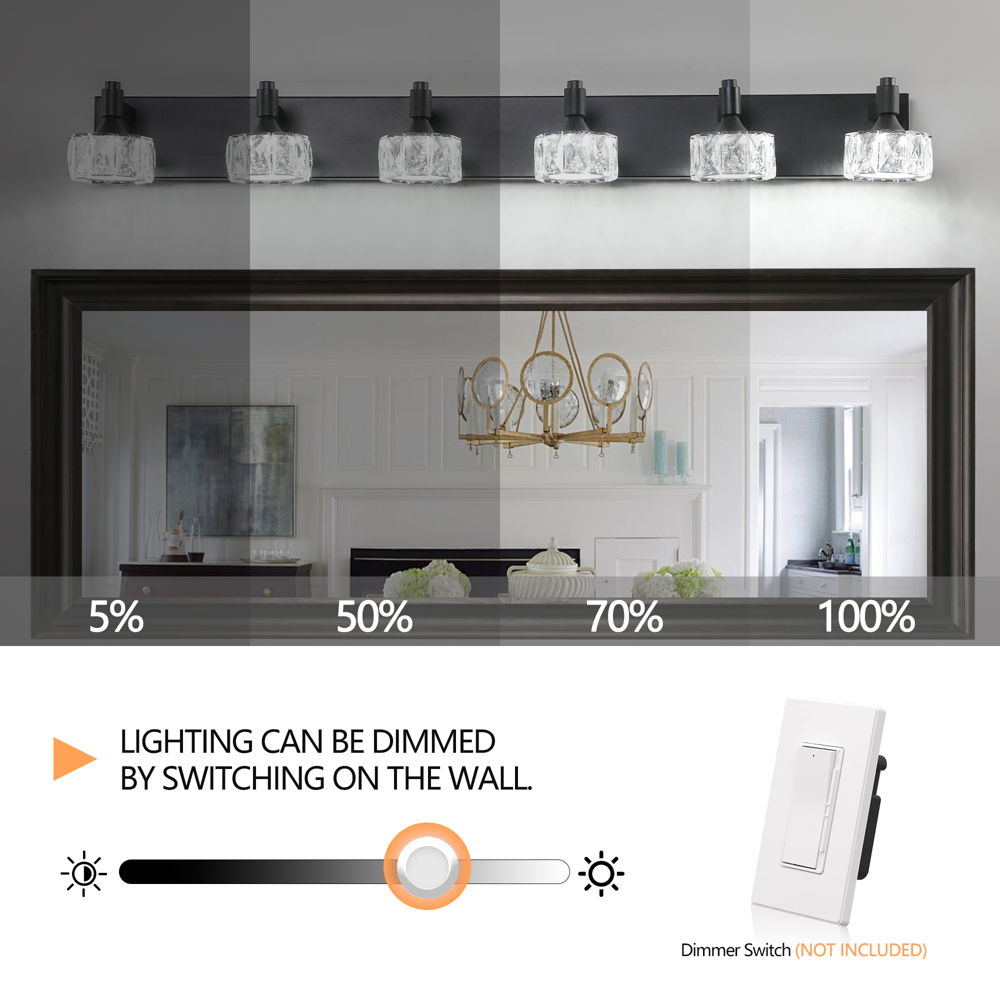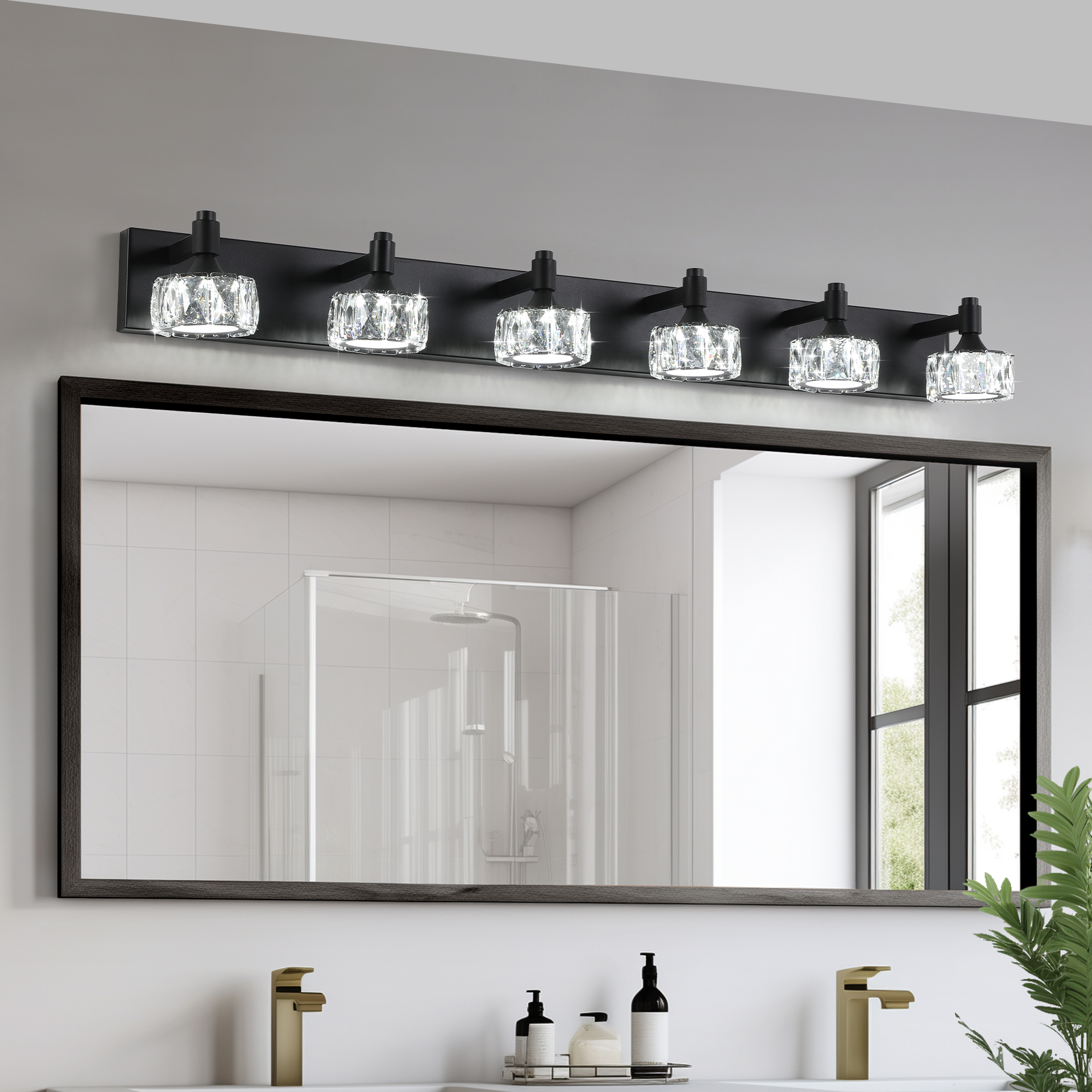 NEOSGO Modern 6-Light Matte Black LED Vanity Light Fixture with Crystal Glass Shades, Bathroom Wall Sconce for Elegant and Contemporary Home Decor is intended to provide focused wall lighting while also adding decorative detail to the surrounding space. This style is especially useful near mirrors, over bathroom vanities, along hallways, in bedrooms, or in accent areas that benefit from directed light rather than relying only on ceiling fixtures. Based on the product presentation, it offers a practical mix of daily illumination and visual styling, which helps the room feel more complete and intentionally designed. It is a good option for customers who want better task lighting together with a more refined finished look on the wall. Overall size is approximately 46.46 x 10.63 x 7.68 inches with a listed weight of 16. The current listing includes 9 product images, which help clarify the product shape, proportions, and visual placement in a real room setting.