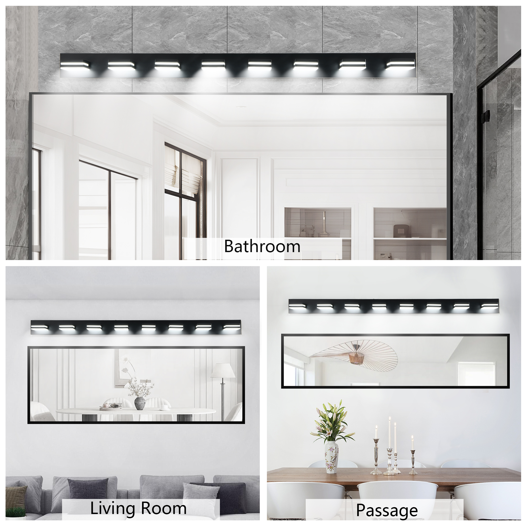 NEOSGO Modern Black LED Vanity Light, 8-Lights Wall Sconce for Bathroom and Mirror, Sleek Minimalist Design, Energy-Efficient, Easy to Install is designed to improve daily bathroom routines with a clearer mirror area and more useful lighting around the vanity space. The product presentation suggests a modern wall-mounted mirror intended for grooming, makeup, skincare, shaving, and other tasks that benefit from more even front-facing light. It works especially well in bathrooms, powder rooms, and remodeled vanity areas where customers want the mirror to provide both practical function and a cleaner visual upgrade. This type of mirror is a strong fit for shoppers looking to make the room feel brighter, more modern, and easier to use every day. Overall size is approximately 65.75 x 7.09 x 5.51 inches with a listed weight of 13.1. The current listing includes 11 product images, which help clarify the product shape, proportions, and visual placement in a real room setting.