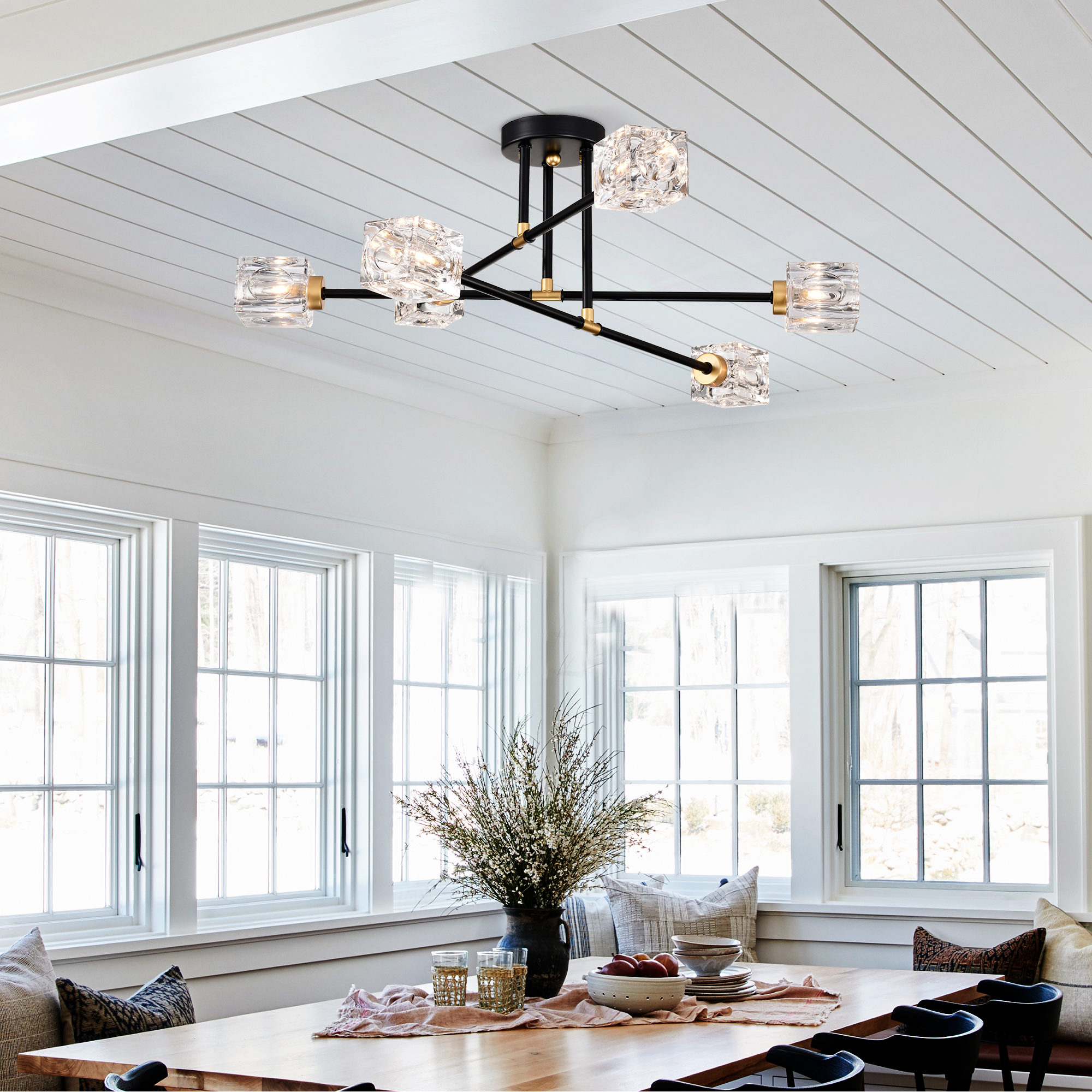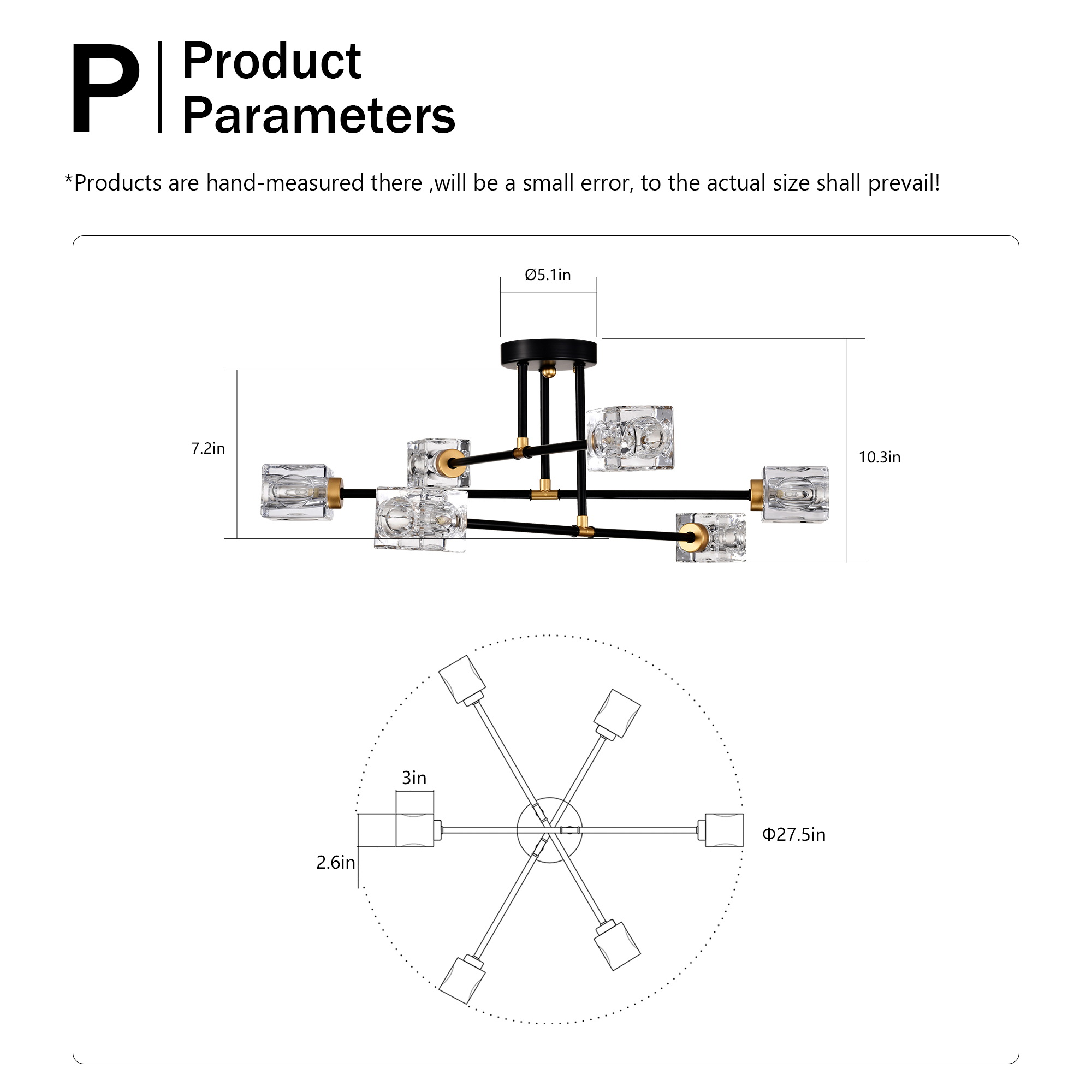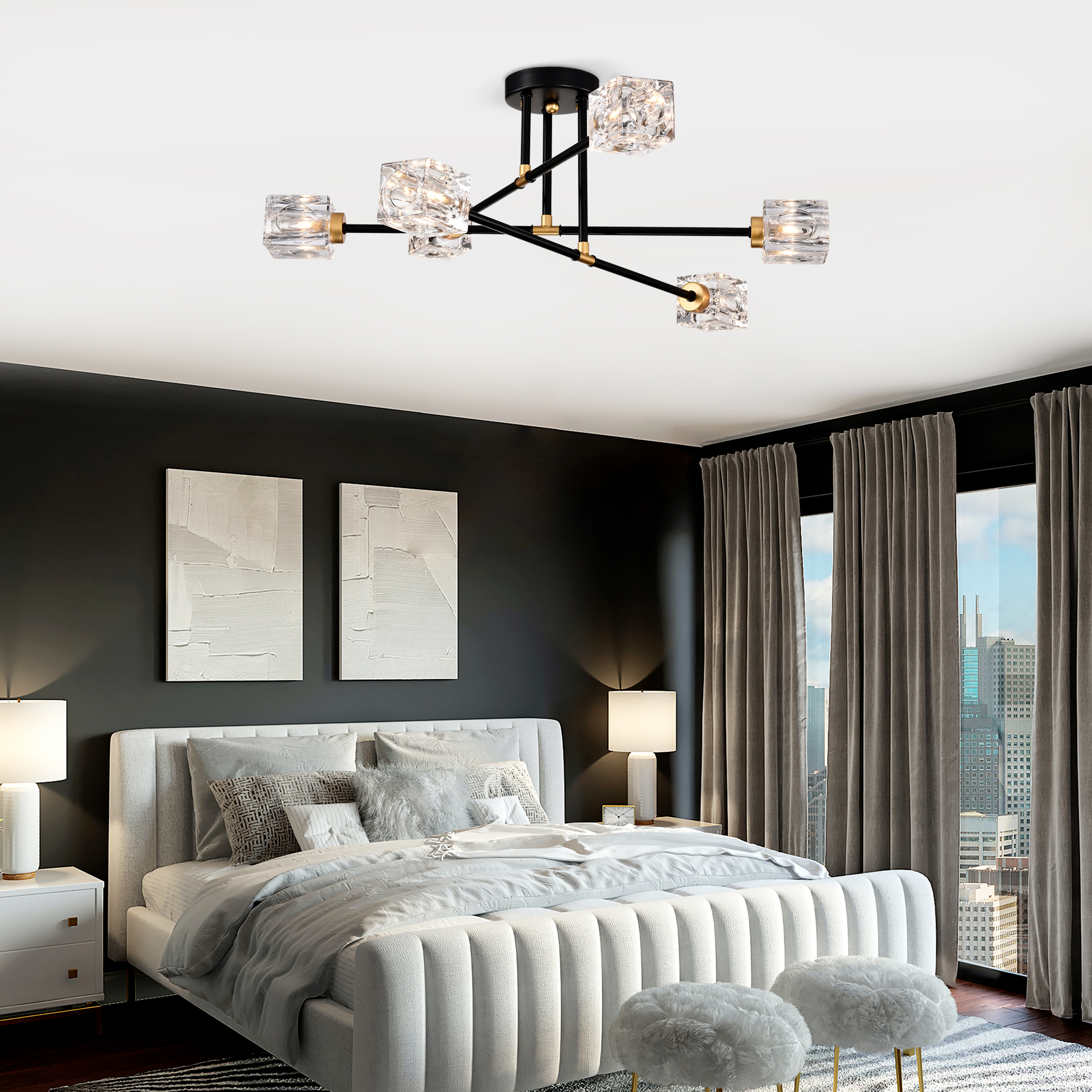 NEOSGO Modern Ceiling Lamp with Light Fixture (6*G9 Bulbs Included),Modern Semi Flush Mount Light Fixture Crystal Chandelier for Dining Room, Bedroom, Living Room--Matte Black +Matte Gold is designed to serve as both a lighting source and a decorative focal point within the room. This type of fixture is especially effective above dining tables, in entryways, and in living spaces where the customer wants overhead light with stronger visual impact. The product presentation suggests a style-driven fixture that helps define the ceiling area and gives the space a more elevated, finished character. It is a strong fit for customers who want lighting that contributes to the overall look of the room rather than functioning as a utility piece alone. Overall size is approximately 25.98 x 7.87 x 4.92 inches with a listed weight of 11.22. The current listing includes 12 product images, which help clarify the product shape, proportions, and visual placement in a real room setting.