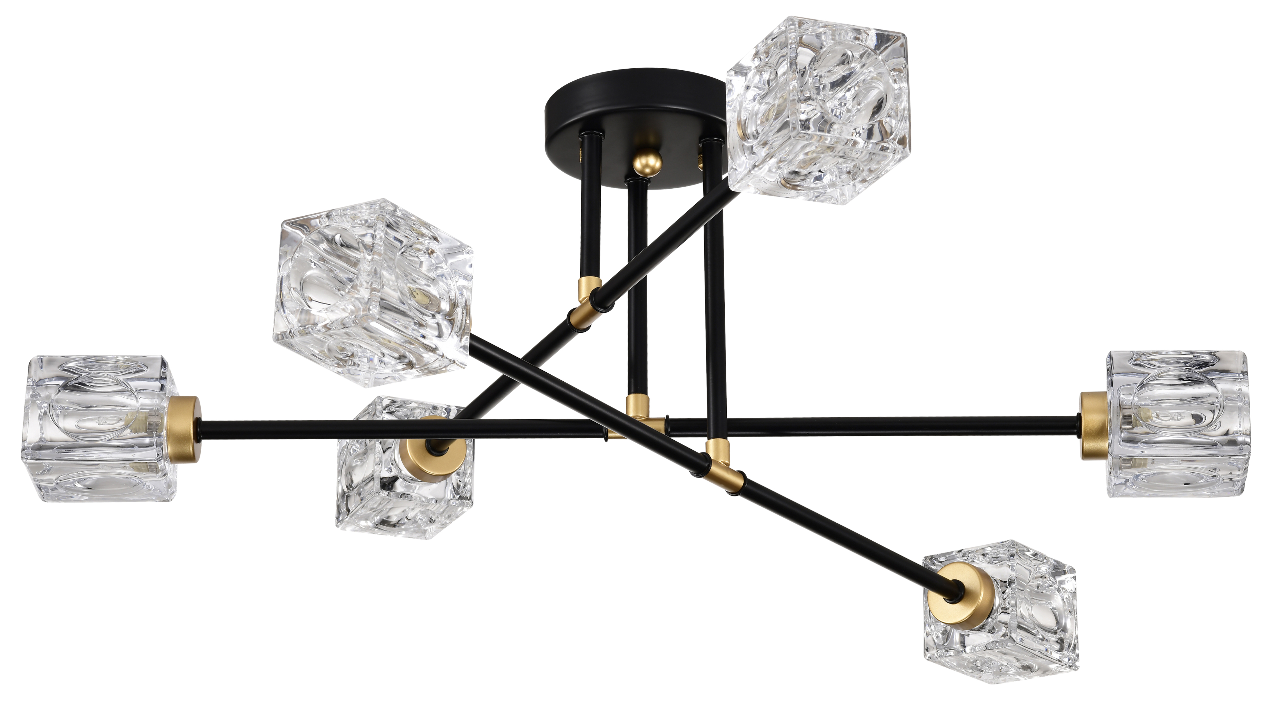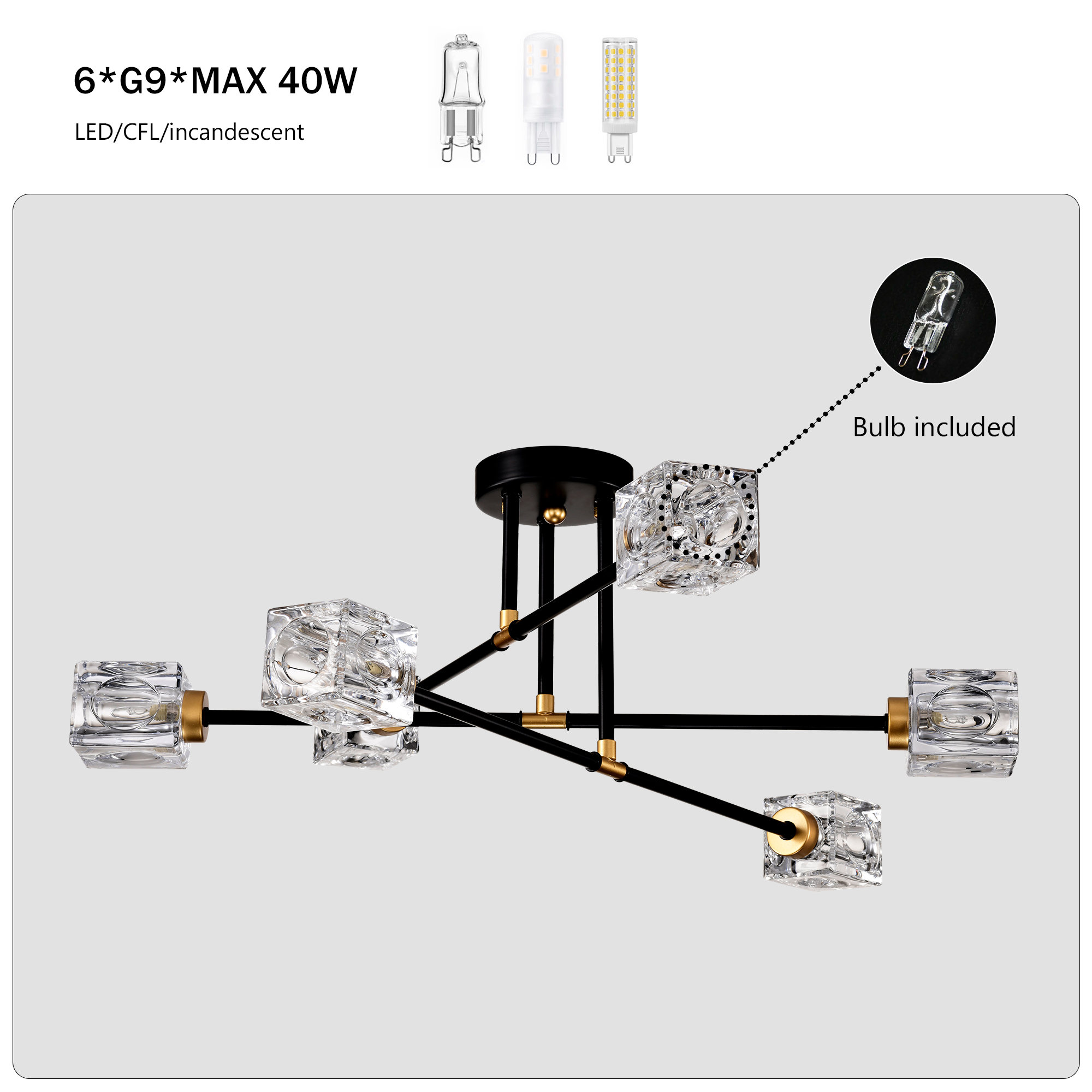 Modern Ceiling Lamp with Light Fixture (6*G9 Bulbs Included),Modern Semi Flush Mount Light Fixture Crystal Chandelier for Dining Room, Bedroom, Living Room--Matte Black +Matte Gold