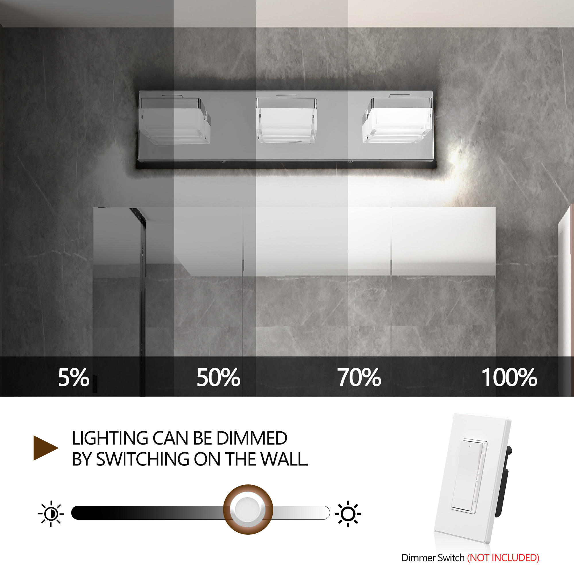 Modern Chrome LED Vanity Light, 3-Lights Wall Sconce for Bathroom and Mirror, Sleek Minimalist Design, Energy-Efficient, Easy to Install