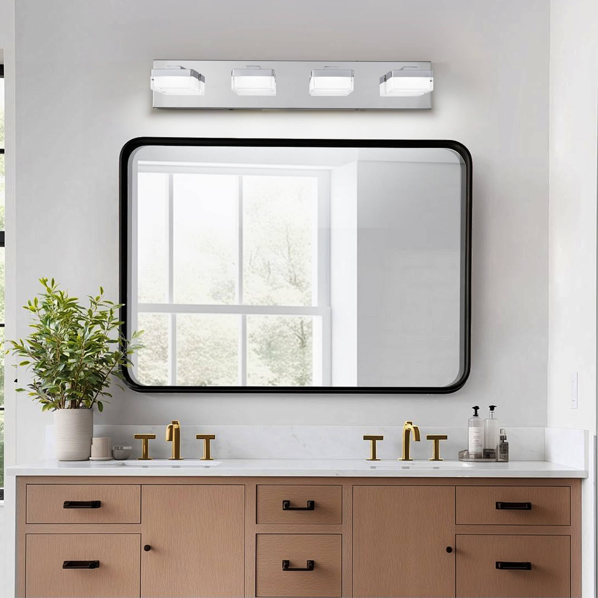 NEOSGO Modern Chrome LED Vanity Light, 4-Lights Wall Sconce for Bathroom and Mirror, Sleek Minimalist Design, Energy-Efficient, Easy to Install is designed to improve daily bathroom routines with a clearer mirror area and more useful lighting around the vanity space. The product presentation suggests a modern wall-mounted mirror intended for grooming, makeup, skincare, shaving, and other tasks that benefit from more even front-facing light. It works especially well in bathrooms, powder rooms, and remodeled vanity areas where customers want the mirror to provide both practical function and a cleaner visual upgrade. This type of mirror is a strong fit for shoppers looking to make the room feel brighter, more modern, and easier to use every day. Overall size is approximately 26.77 x 6.69 x 6.3 inches with a listed weight of 14. The current listing includes 11 product images, which help clarify the product shape, proportions, and visual placement in a real room setting.