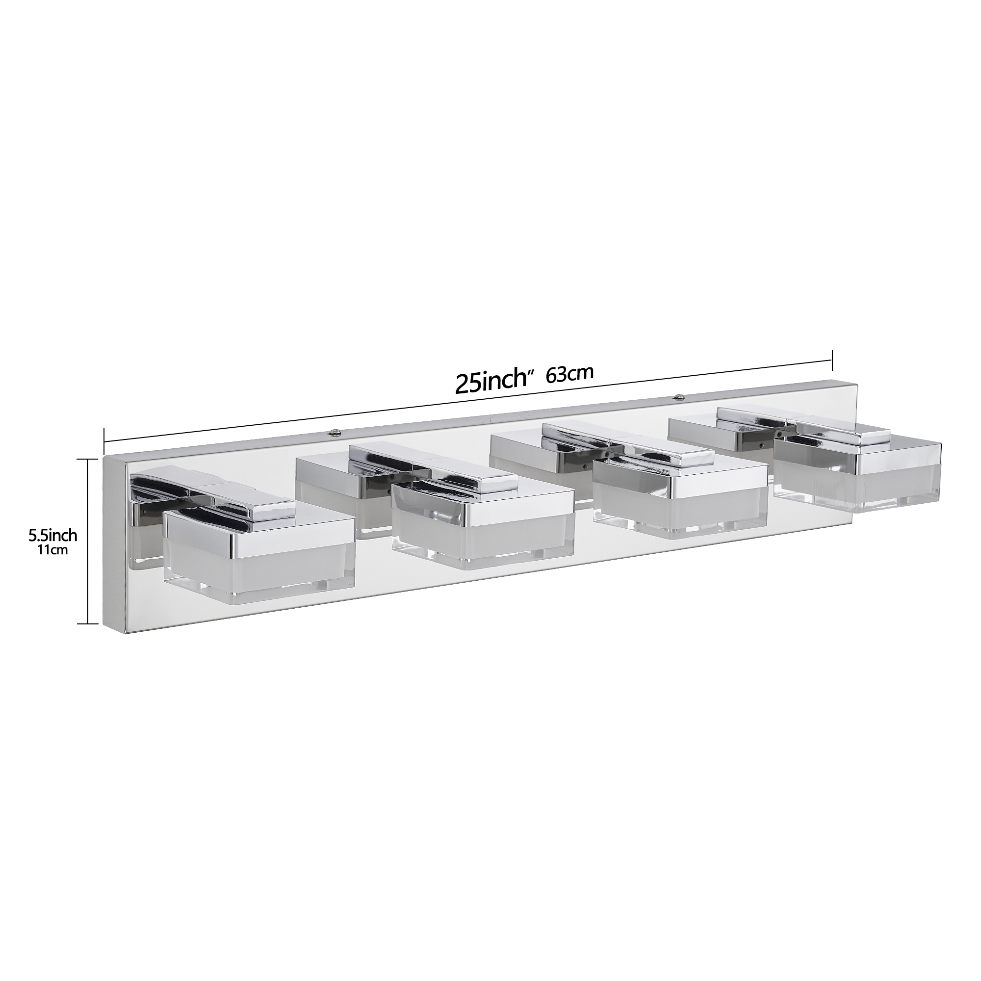 Modern Chrome LED Vanity Light, 4-Lights Wall Sconce for Bathroom and Mirror, Sleek Minimalist Design, Energy-Efficient, Easy to Install