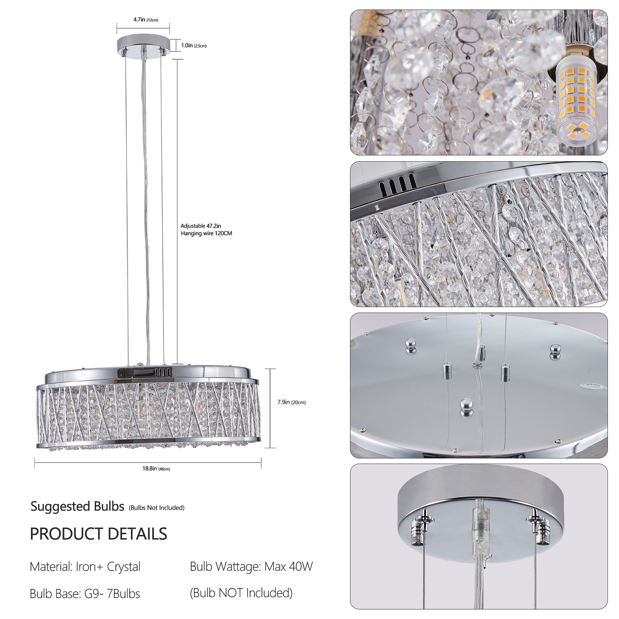 NEOSGO Modern Crystal Chandelier 19 Inches Aluminum+Iron Round Ceiling Light Flush Mount Ceiling Light Fixture for kitchen Island Dinning Bedrooms and Hallway (Bulb Not Included) is designed to serve as both a lighting source and a decorative focal point within the room. This type of fixture is especially effective above dining tables, in entryways, and in living spaces where the customer wants overhead light with stronger visual impact. The product presentation suggests a style-driven fixture that helps define the ceiling area and gives the space a more elevated, finished character. It is a strong fit for customers who want lighting that contributes to the overall look of the room rather than functioning as a utility piece alone. Overall size is approximately 20.9 x 20.9 x 8.7 inches with a listed weight of 13.6. The current listing includes 10 product images, which help clarify the product shape, proportions, and visual placement in a real room setting.