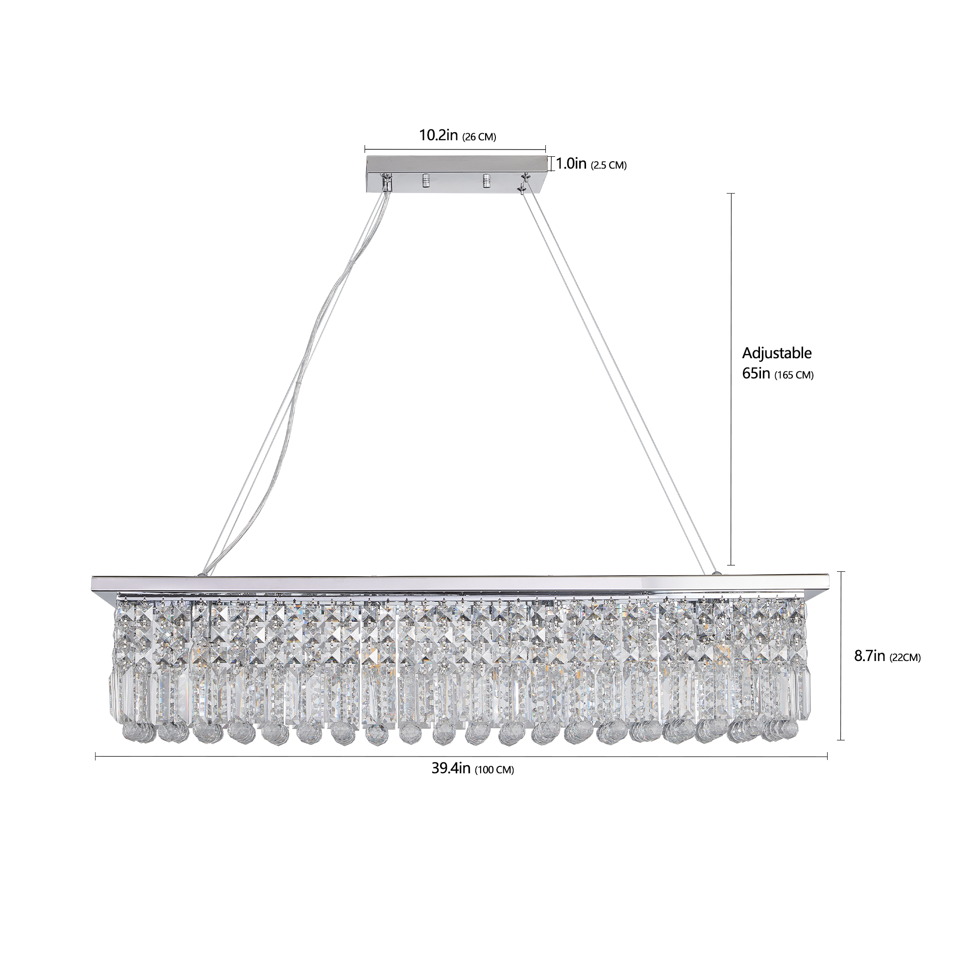 NEOSGO Modern Crystal Chandelier for Dining Room 8-Light White Rectangle Raindrop Chandelier Contemporary Rectangular Pendant Light Fixture for Kitchen Island Bar L39.4'' x W9.8'' x H8.7'(Bulb Not Included) is designed to serve as both a lighting source and a decorative focal point within the room. This type of fixture is especially effective above dining tables, in entryways, and in living spaces where the customer wants overhead light with stronger visual impact. The product presentation suggests a style-driven fixture that helps define the ceiling area and gives the space a more elevated, finished character. It is a strong fit for customers who want lighting that contributes to the overall look of the room rather than functioning as a utility piece alone. Overall size is approximately 42.1 x 12.2 x 4.7 inches with a listed weight of 29.7. The current listing includes 10 product images, which help clarify the product shape, proportions, and visual placement in a real room setting.