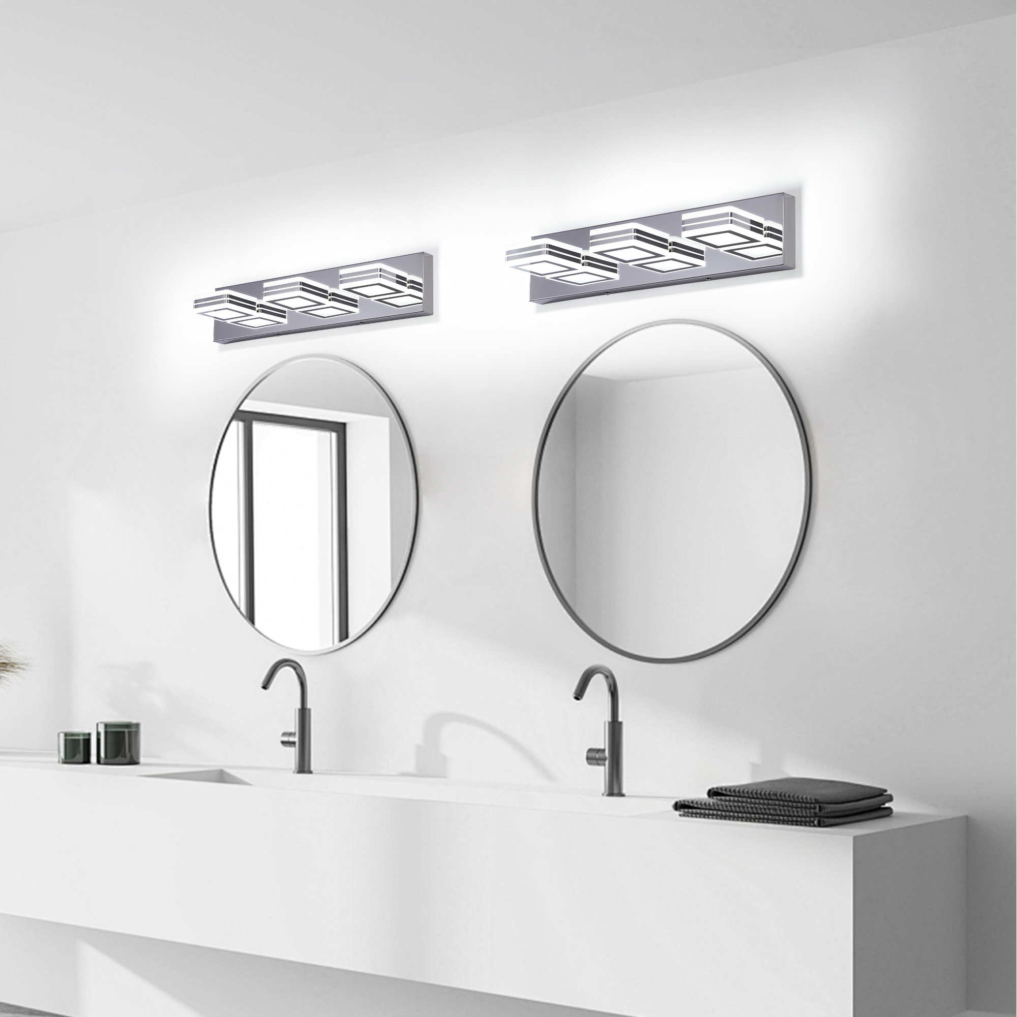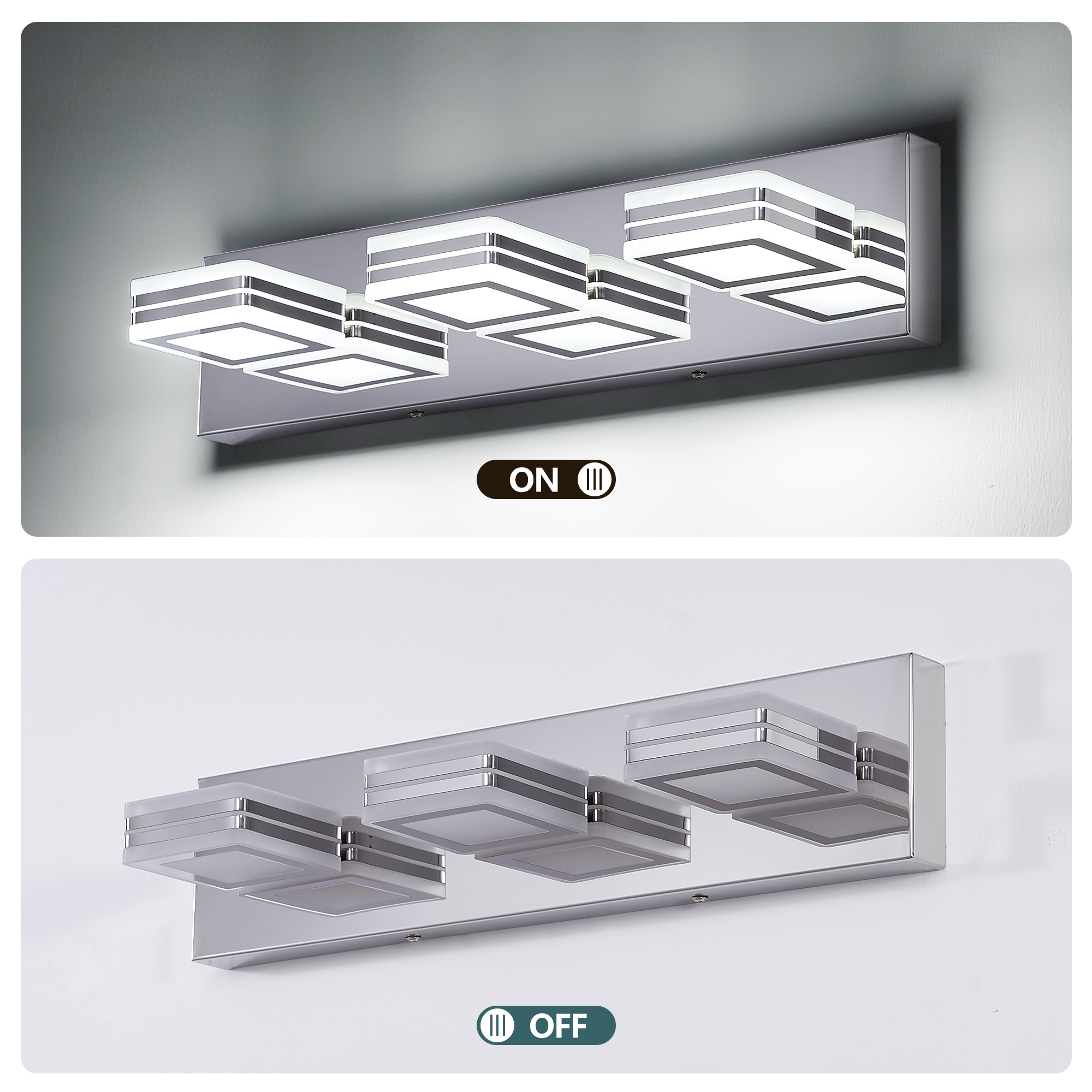 NEOSGO Modern Dimmable Vanity Lights for Bathroom LED 3 Light Bathroom Lights Over Mirror Chrome Bath Wall Lighting is designed to improve daily bathroom routines with a clearer mirror area and more useful lighting around the vanity space. The product presentation suggests a modern wall-mounted mirror intended for grooming, makeup, skincare, shaving, and other tasks that benefit from more even front-facing light. It works especially well in bathrooms, powder rooms, and remodeled vanity areas where customers want the mirror to provide both practical function and a cleaner visual upgrade. This type of mirror is a strong fit for shoppers looking to make the room feel brighter, more modern, and easier to use every day. Overall size is approximately 21.06 x 5.91 x 5.91 inches with a listed weight of 4.2. The current listing includes 10 product images, which help clarify the product shape, proportions, and visual placement in a real room setting.